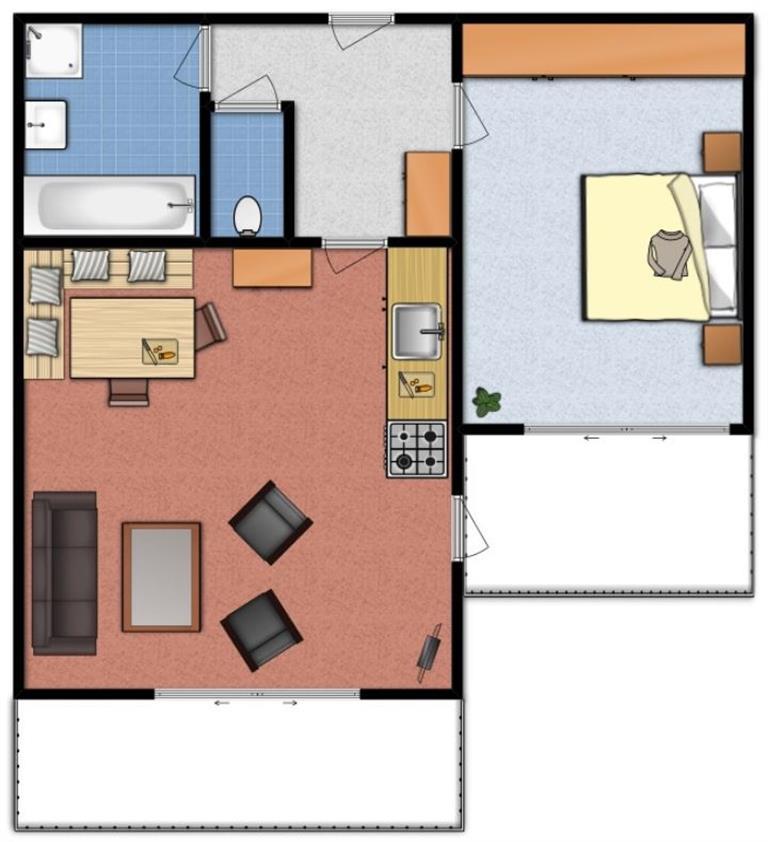 Das Barierrefreie Appartement 3 XL mit ca. 56 m² besteht aus: 1 Vorraum mit Garderobe, 1 Schlafzimmer mit Doppelbett, 1 Badezimmer (Badewanne und Dusche), 1 seperates WC, 1 Wohnküche, auch komplett ausgestattet mit Spülmachine, Mikrowelle, Kühlschrank mit Gefrierfach, mit Essecke und Schlafsofa, Flat-TV und eigener, teilweise überdachter Terrasse. Mit Gartenmöbel und schöne aussicht.