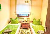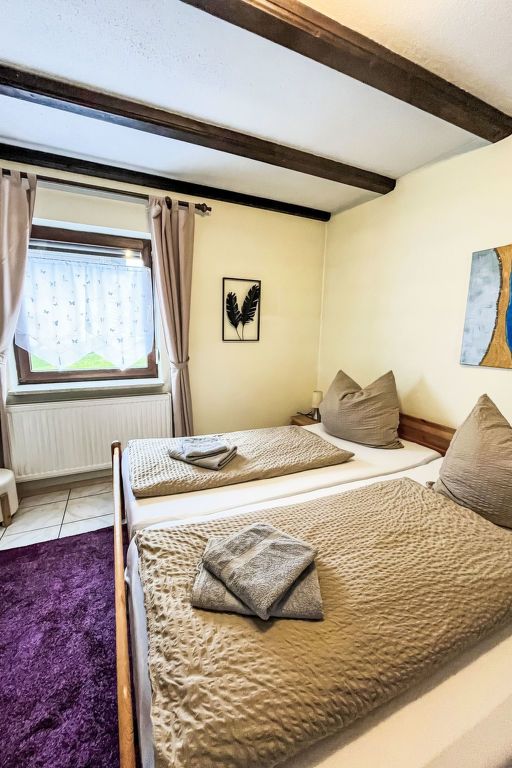3-Zimmer-Wohnung 75 m2, im Erdgeschoss. Gemütlich eingerichtet: Wohnzimmer mit Sat-TV (Flachbildschirm), CD, Stereoanlage und DVD. Ausgang zum Garten, zur Terrasse. 1 Zimmer 11 m2 mit 1 Doppelbett (200 cm, Länge 200 cm). 1 Zimmer 7 m2 mit 2 Betten (90 cm, Länge 200 cm), Sat-TV (Flachbildschirm). Offene Küche (Backofen, Geschirrspüler, 4 Glaskeramikplatten, Toaster, Wasserkocher, Mikrowelle, elektrische Kaffeemaschine) mit Essecke. Dusche/WC. Grosse Terrasse 20 m2 teilweise überdacht, Garten 250 m2, Rasen 150 m2. Terrassenmöbel, Gartengrill (mobil), Liegestühle (2). Schöne Sicht auf die Berge. Zur Verfügung: Waschmaschine, Bügeleisen, Haartrockner. Internet (WLAN, gratis). Bitte beachten: Nichtraucher-Unterkunft. Eigener Eingang, Rauchmelder. See 150 m.