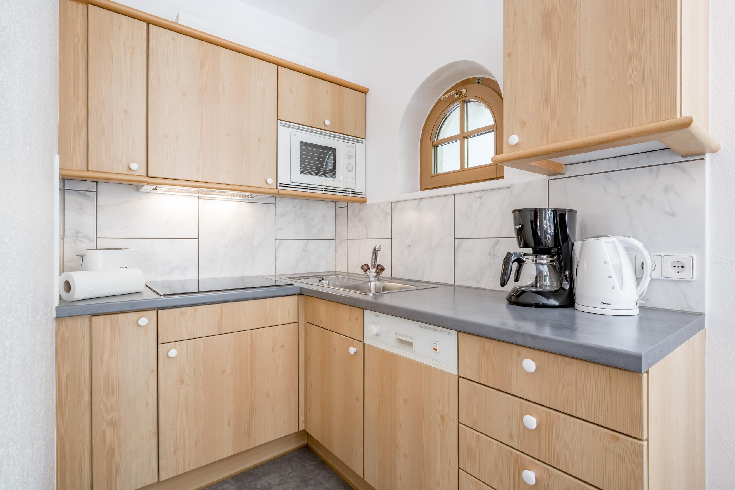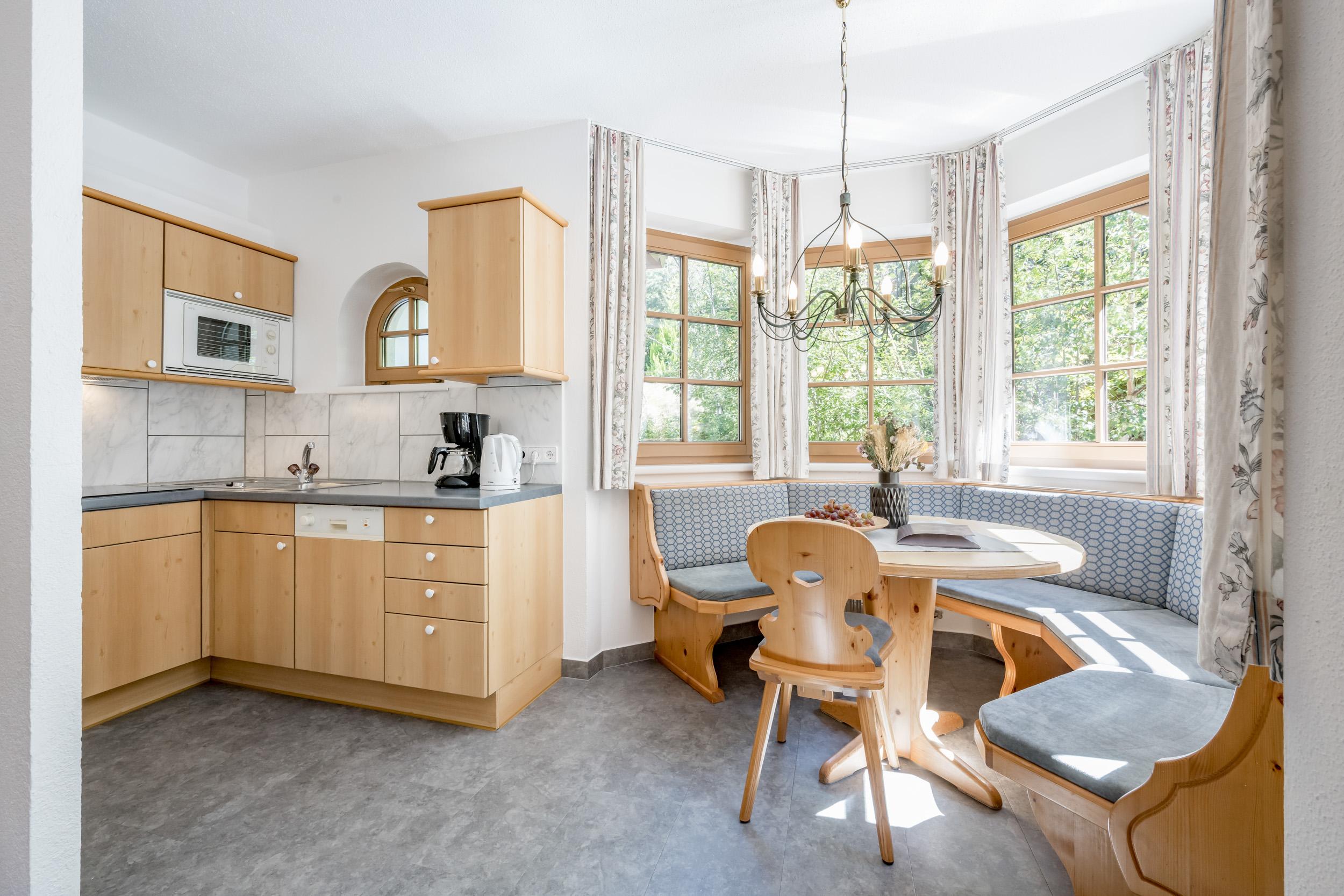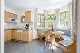 Großzügiges Appartement Nr. 1 (ca. 49 m²) im 1. OG mit Balkon, gemütlichem Wohnraum mit offener, voll ausgestatteter Kochecke (Cerankochfeld, Mikrowelle, Geschirrspüler, Kaffeemaschine und Wasserkocher uvm.) und Essecke im Erker, 1 großes Doppelzimmer, 1 Badezimmer mit Dusche/WC und Föhn, Kabel-TV.