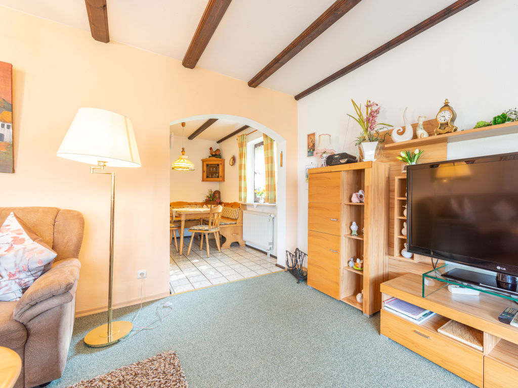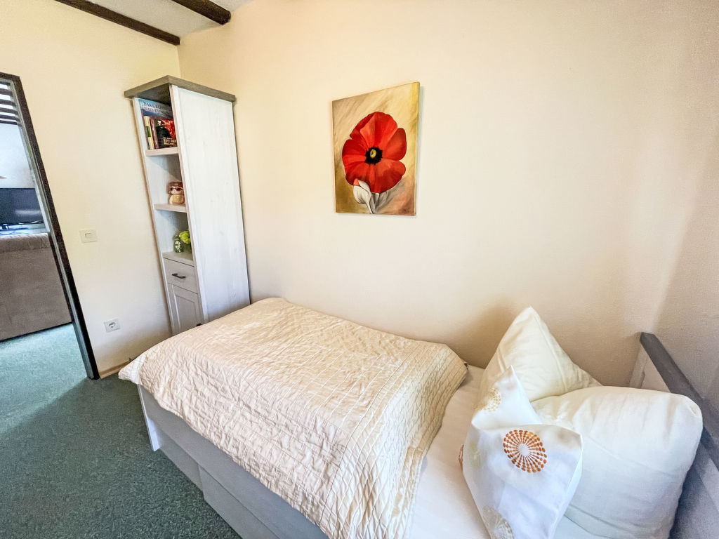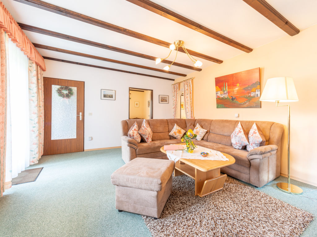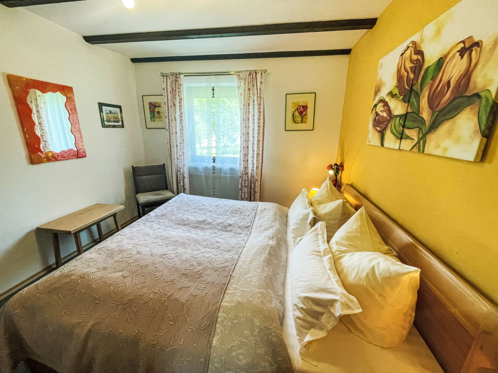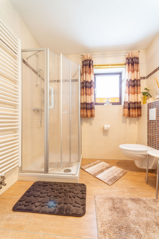 3-Zimmer-Wohnung 75 m2, im Erdgeschoss. Gemütlich eingerichtet: Wohnzimmer 35 m2 mit Sat-TV (Flachbildschirm), Stereoanlage. Ausgang zum Garten, zur Terrasse. 1 Zimmer 13 m2 mit 1 Doppelbett (180 cm, Länge 200 cm). 1 Zimmer 9 m2 mit 2 Betten (90 cm, Länge 200 cm). Offene Küche 9 m2 (4 Kochplatten, Backofen, Geschirrspüler, Toaster, Wasserkocher, Mikrowelle, elektrische Kaffeemaschine) mit Essecke. Dusche/WC. G-Heizung. Grosse Terrasse 20 m2 teilweise überdacht, Garten 250 m2. Terrassenmöbel, Gartengrill (mobil), Sitzplatz. Schöne Sicht auf die Berge. Zur Verfügung: Waschmaschine, Bügeleisen, Haartrockner. Internet (Wireless LAN, gratis). Bitte beachten: Nichtraucher-Unterkunft. Eigener Eingang, Rauchmelder. See 150 m.
