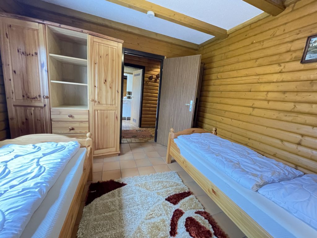 3-Zimmer-Wohnung 75 m2, im Obergeschoss. Gemütlich und mit viel Holz eingerichtet: Wohnzimmer 35 m2 mit Sat-TV (Flachbildschirm). Ausgang zum Balkon. 1 Zimmer 13 m2 mit 1 Doppelbett (180 cm, Länge 200 cm). 1 Zimmer 9 m2 mit 2 Betten (90 cm, Länge 200 cm). Offene Küche 9 m2 (4 Kochplatten, Backofen, Toaster, Wasserkocher, Mikrowelle, elektrische Kaffeemaschine) mit Essecke. Dusche/WC. G-Heizung. Grosser Balkon 15 m2, Gartensitzplatz. Balkonmöbel, Gartengrill, Liegestühle. Schöne Sicht auf die Berge. Zur Verfügung: Internet (Wireless LAN, gratis). Bitte beachten: Nichtraucher-Unterkunft. Maximal 1 kleines Haustier/Hund erlaubt. Eigener Eingang, Rauchmelder. Balkon teilweise überdacht. See 100 m. Gartenhaus (abschließbar) mit Fahrradabstellmöglichkeit und Stromanschluß. Buchungen sind nur zu touristischen Zwecken erlaubt.