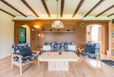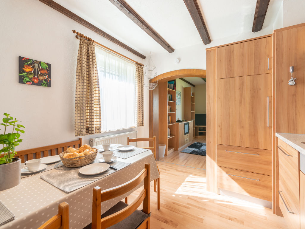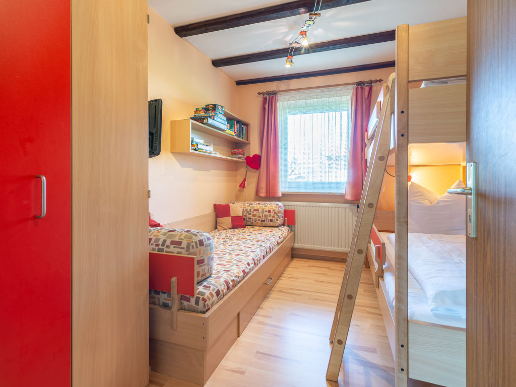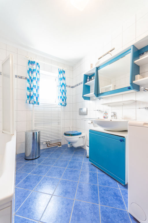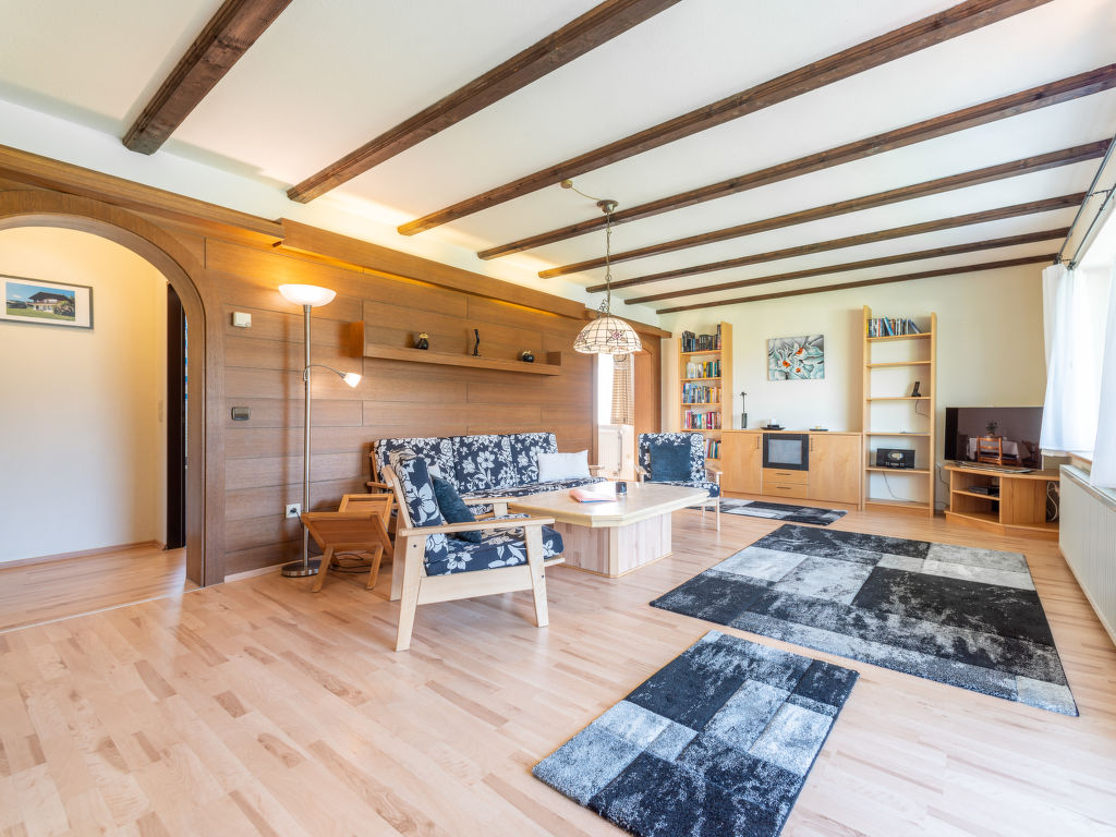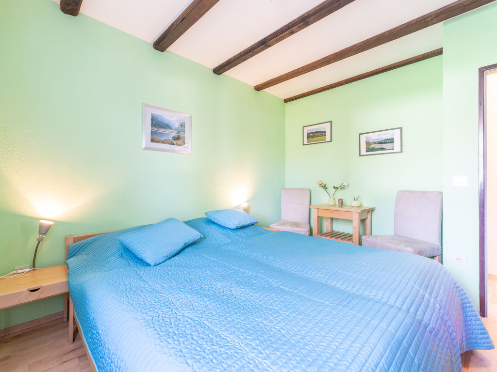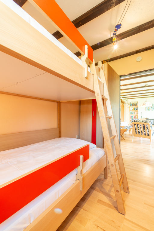 3-Zimmer-Wohnung 75 m2, im Erdgeschoss. Gemütlich eingerichtet: Wohn-/Esszimmer 35 m2 mit Sat-TV (Flachbildschirm), Video, CD, DVD und DVD Sammlung vorhanden. Ausgang zum Garten, zur Terrasse. 1 Zimmer 13 m2 mit 1 Doppelbett (190 cm, Länge 200 cm). 1 Zimmer 9 m2 mit 1 Bett (80 cm, Länge 190 cm), 1 x 2 Etagenbetten (90 cm, Länge 190 cm), Sat-TV (Flachbildschirm), Video, CD und DVD. Offene Küche 9 m2 (Backofen, Geschirrspüler, 4 Glaskeramikplatten, Toaster, Wasserkocher, Mikrowelle, elektrische Kaffeemaschine) mit Esstisch. Bad/Dusche/WC. G-Heizung. Grosse Terrasse 30 m2 teilweise überdacht, Garten 250 m2, Rasen 150 m2. Terrassenmöbel, Gartengrill (mobil), Liegestühle (2), Sitzplatz. Schöne Sicht auf die Berge. Zur Verfügung: Waschmaschine, Safe, Bügeleisen, Kinderhochstuhl, Haartrockner. Internet (Wireless LAN, gratis). Blu-Ray Player. Bitte beachten: Nichtraucher-Unterkunft. Eigener Eingang, Allergikergeeignet, Rauchmelder. Das kostenlos buchbare Zusatzbett befindet sich im 9 m2 grossen Schlafzimmer. Bücher- und Spielesammlung vorhanden. See 150 m.
