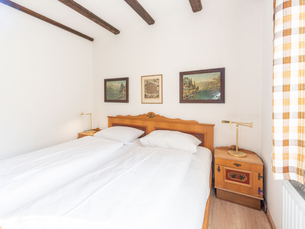2-Zimmer-Wohnung 38 m2, im Erdgeschoss. Gemütlich eingerichtet: Wohn-/Esszimmer 18 m2 mit 1 Diwanbett (80 cm, Länge 200 cm), Sat-TV (Flachbildschirm), Video, CD, Stereoanlage und DVD. 1 Zimmer 12 m2 mit 1 Doppelbett (180 cm, Länge 190 cm). Kochnische (2 Kochplatten, Mini-Backofen, Geschirrspüler, Mikrowelle, elektrische Kaffeemaschine). Dusche/WC. G-Heizung. Kleine Terrasse 15 m2 teilweise überdacht. Terrassenmöbel. Schöne Sicht auf die Berge. Zur Verfügung: Haartrockner. Internet (Wireless LAN, gratis). IPod docking station. Bitte beachten: Nichtraucher-Unterkunft. Maximal 1 Haustier/Hund erlaubt. Rauchmelder. See 150 m. Bei Reservierung des Zusatzbettes steht Ihnen das Diwanbett im Wohn-/Esszimmer zur Verfügung.