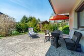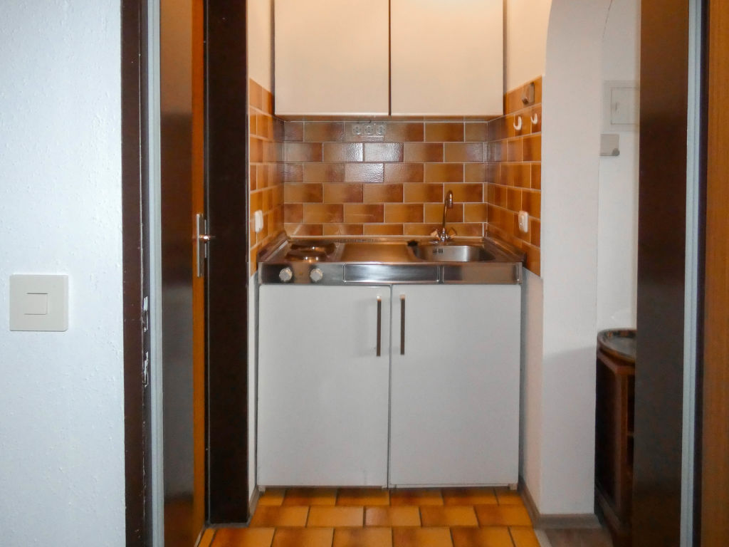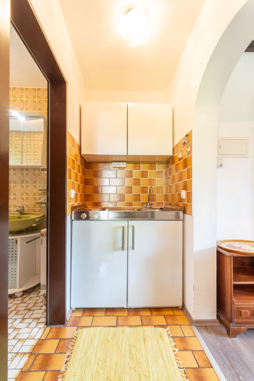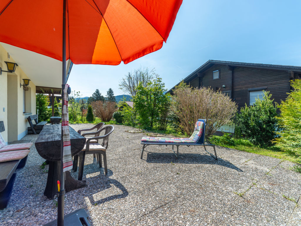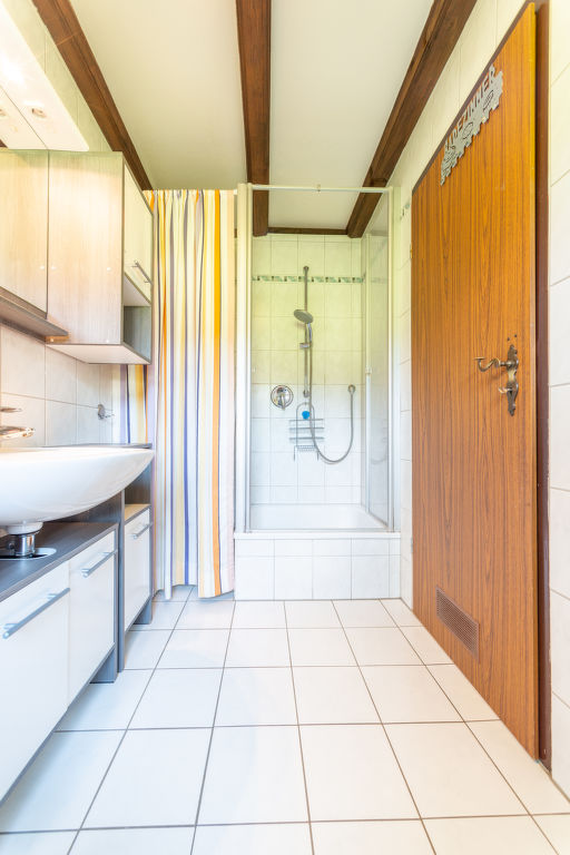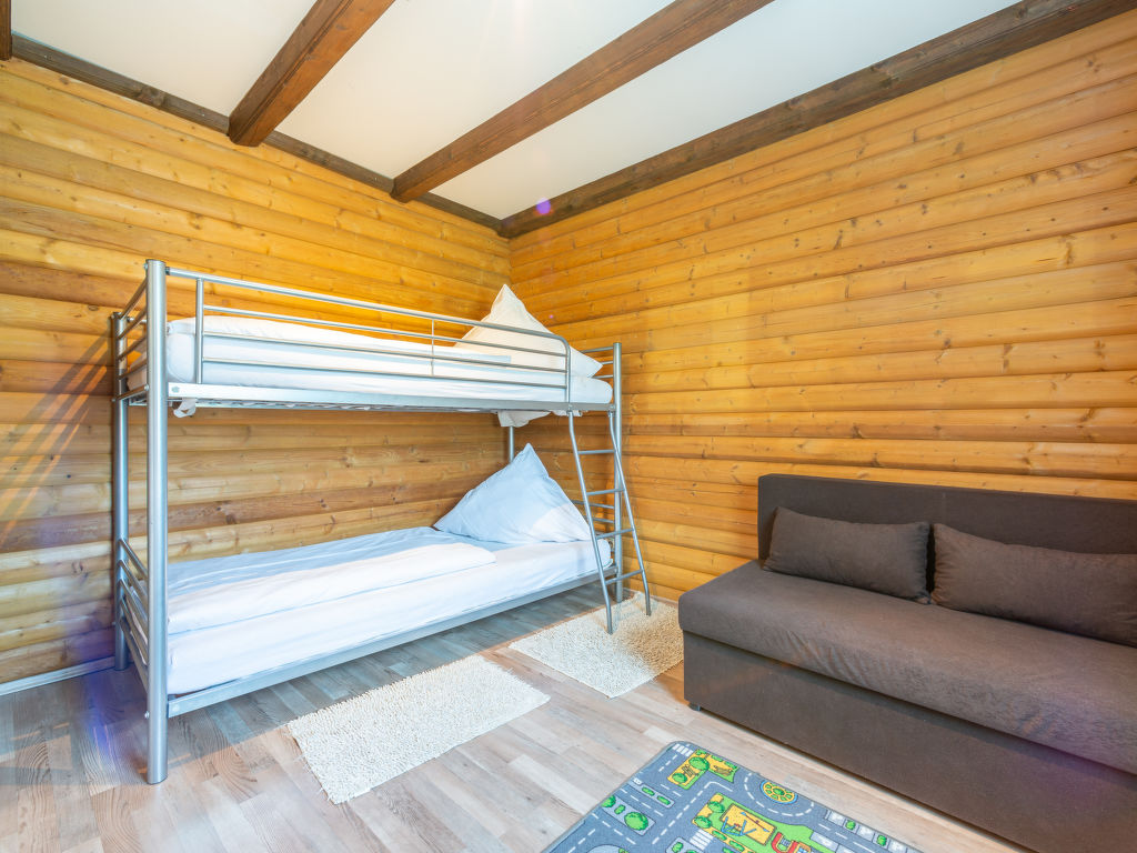 6-Zimmer-Wohnung 128 m2 auf 3 Stockwerken, im Erdgeschoss. Gemütlich und mit viel Holz eingerichtet: Wohn-/Esszimmer 18 m2 mit 1 Diwanbett (80 cm, Länge 200 cm), Sat-TV (Flachbildschirm). 1 Zimmer 12 m2 mit 1 Doppelbett (180 cm, Länge 190 cm). Kochnische (2 Kochplatten, Wasserkocher, elektrische Kaffeemaschine). Dusche/WC. Obergeschoss: Wohnzimmer 35 m2 mit Sat-TV (Flachbildschirm). Ausgang zum Balkon. 1 Zimmer 13 m2 mit 1 Doppelbett (180 cm, Länge 200 cm). 1 Zimmer 9 m2 mit 1 x 2 Etagenbetten (90 cm, Länge 190 cm). Offene Küche 9 m2 (Backofen, Geschirrspüler, 4 Glaskeramikplatten, Wasserkocher, Mikrowelle, elektrische Kaffeemaschine) mit Esstisch. Dusche/WC. Dachgeschoss: 1 abgeschrägtes Zimmer 15 m2 mit 1 Doppelbett (180 cm, Länge 190 cm). G-Heizung. Grosser Balkon 20 m2, kleine Terrasse 10 m2 teilweise überdacht. Terrassenmöbel, Balkonmöbel, Liegestühle (1). Schöne Sicht auf die Berge. Zur Verfügung: Waschmaschine. Internet (Wireless LAN, gratis). Bitte beachten: Nichtraucher-Unterkunft. Maximal 2 Haustiere/Hunde erlaubt. Rauchmelder. Keine interne Verbindung zwischen den separaten Wohneinheiten. Bei Reservierung des Zusatzbettes steht Ihnen das Diwanbett im Wohn-/Esszimmer (Erdgeschoss) zur Verfügung. Die Ferienwohnung ist die Kombination der beiden Wohnungen DE8491.200.26 und DE8491.200.27 (das Obergeschoss ist nur über eine Aussentreppe erreichbar, der Balkon ist teilweise überdacht). See 150 m.