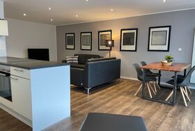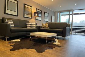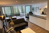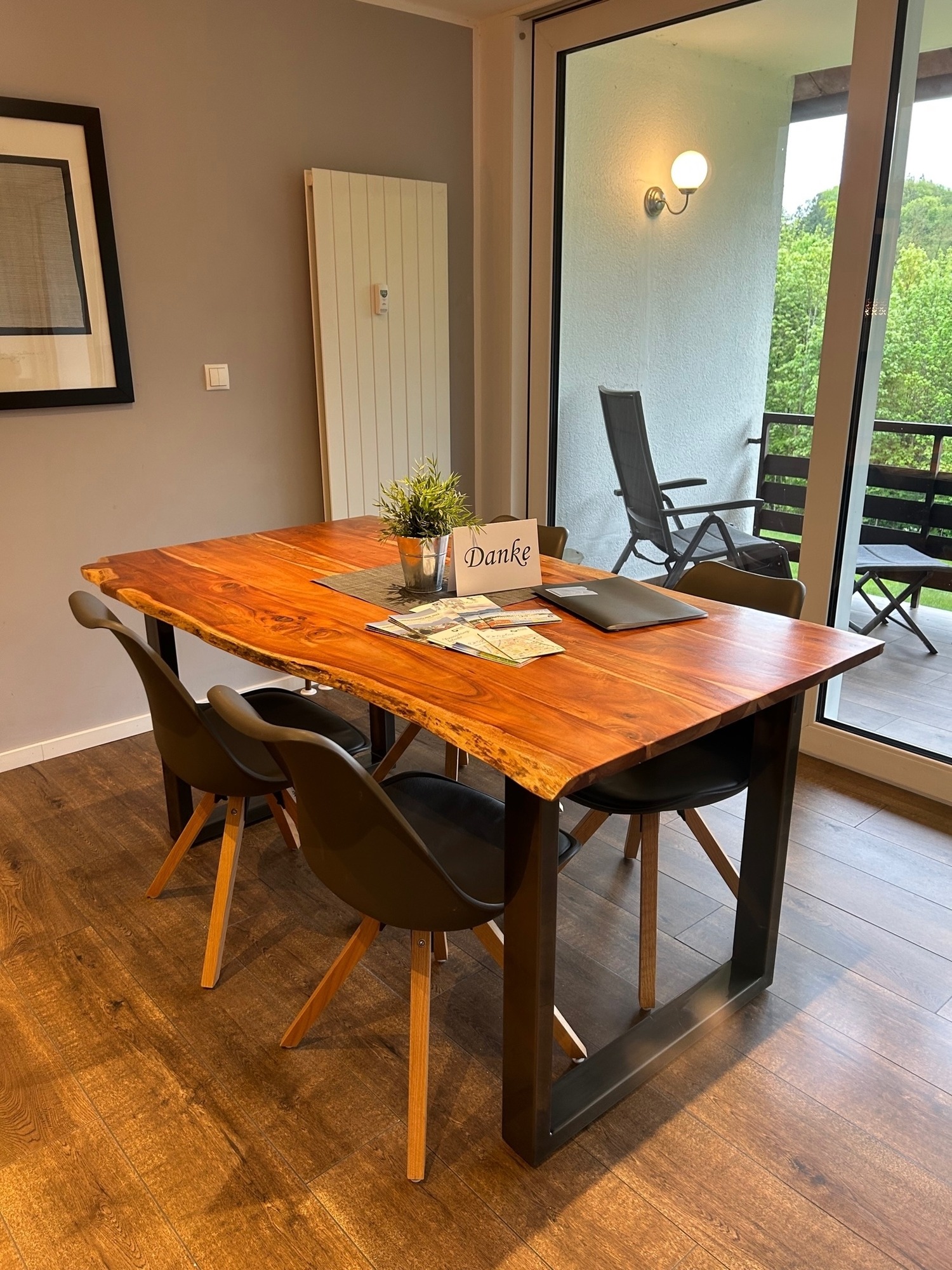 90 qm. TOP modern eingerichtete, großzügige Ferienwohnung mit großem, überdachten Süd-Balkon, offener Wohn/Essbereich mit voll eingerichteter Küche (Geschirrspüler, Herd, Kühlschrank).