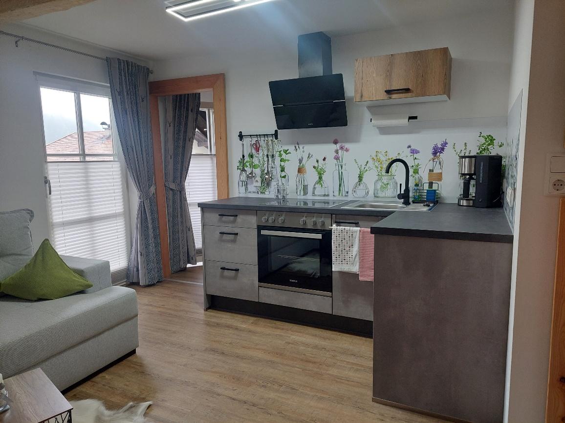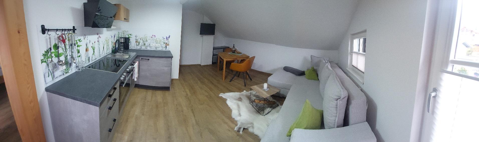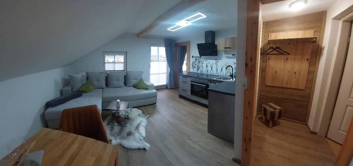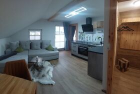Unser Appartement Enzian mit ca. 40 m² besteht aus 1 Doppelzimmer; 1 Wohnküche komplett ausgestattet mit Küchenzeile inkl. Cerankochfeld, Backofen, Kühlschrank uvm., Essbereich, großes Wohnsofa mit Sat-TV; 1 Badezimmer mit Dusche und WC; großer, möblierter Balkon