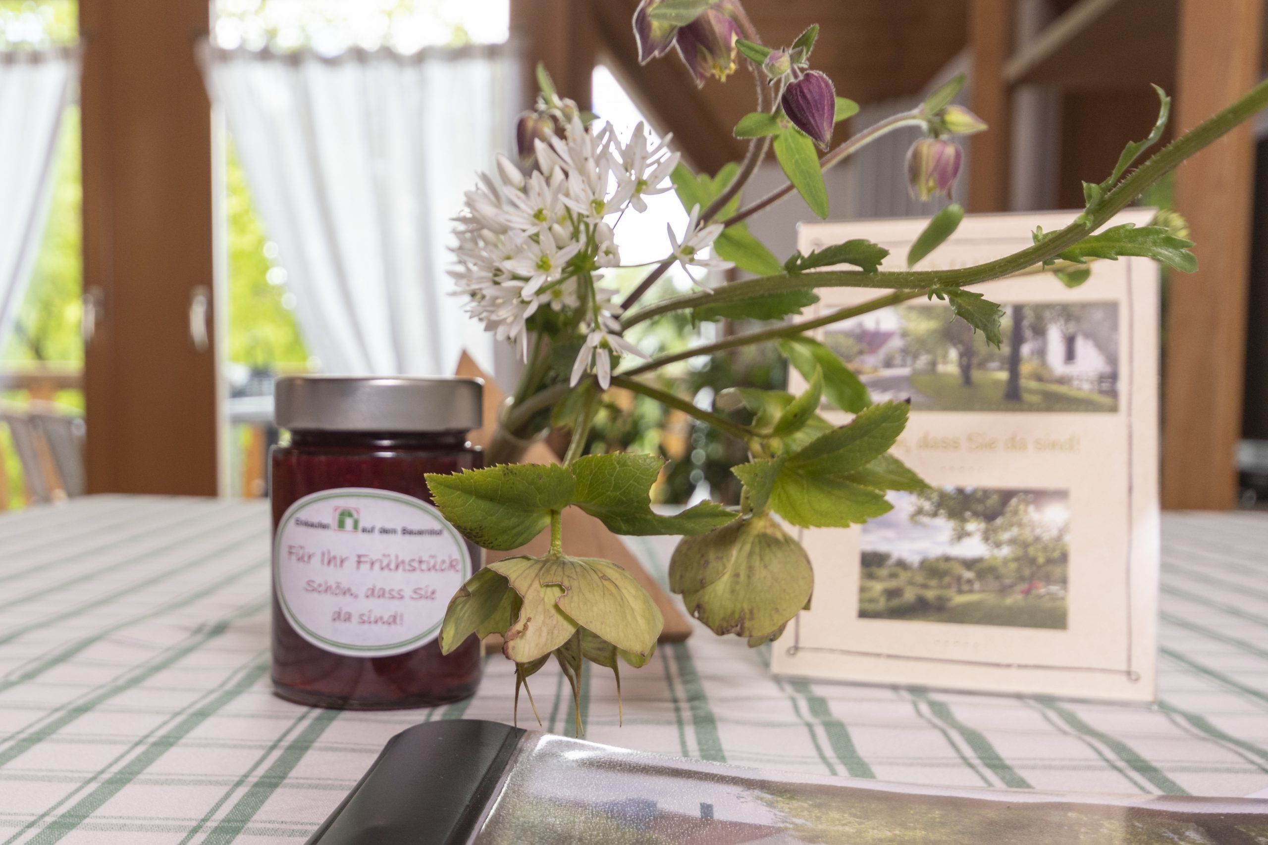 Unsere Ferienwohnung Lindentraum befindet sich im ersten Stock des Gästehauses und umfasst 55m². Sie hat 2 Schlafzimmer (Elternschlafzimmer, Kinderzimmer) und einen Südbalkon mit traumhaftem Blick über unseren Obstgarten.