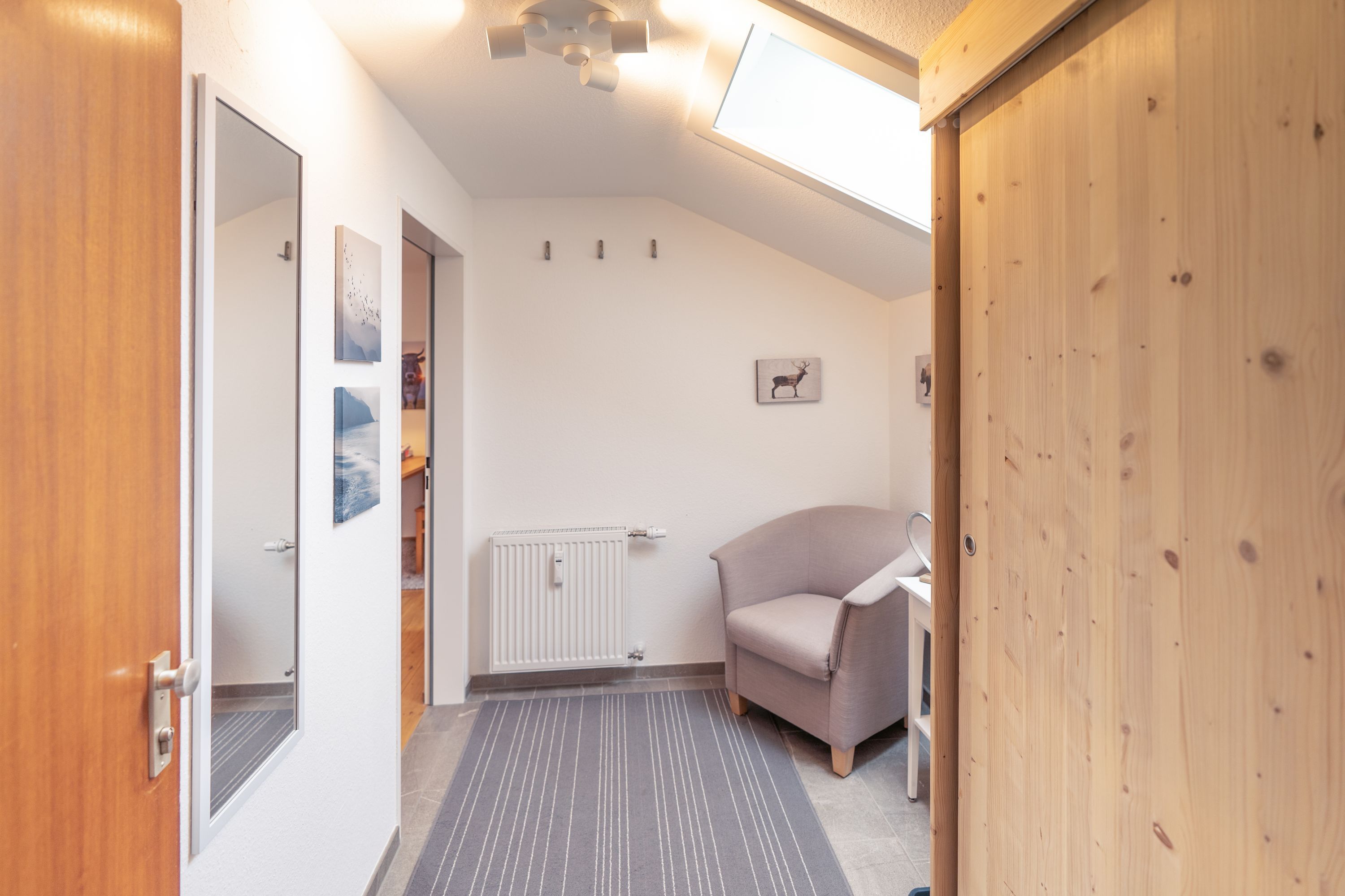 Beim betreten der Ferienwohnung werden Sie gleich auf Ihren Urlaub eingestimmt. Diese helle und freundliche Ferienwohnung ist sehr behaglich und ganz im Naturstil mit Echtholz in Eiche und Fichte ausgestattet. Der Wohnbereich mit seinem Panoramafenster und dem traumhaften Blick auf die Stillachauen und die umliegenden Hu?gel und Berge, bietet Ihnen eine angenehme Atmosphäre, die zur Entspannung und Erholung einlädt. Aus dem Dachfenster im Su?den haben Sie einen wunderscho?nen Blick auf die Oberstdorfer Bergwelt und die Skisprungschanze.