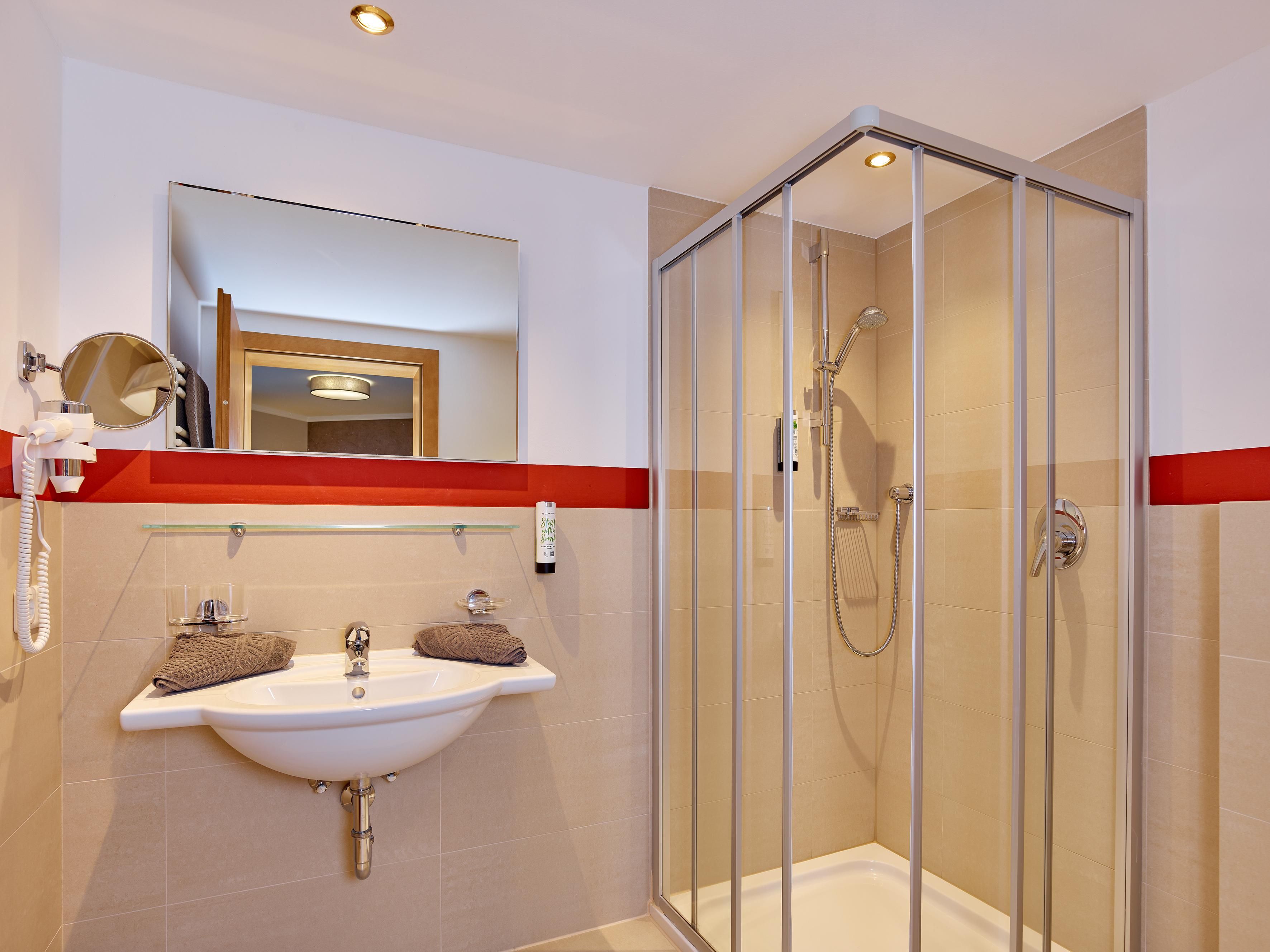 Luxuriöses Appartement im Parterre mit Terrasse - mit Blick ins Tal Diele, 1 Schlafzimmer mit Dusche/ WC, Wohnzimmer mit Schlafcouch, Wohnküche mit allen Elektro-Geräten, Flat TV, Internetanschluss und Terrasse (Südlich)Größe: ca. 41m²