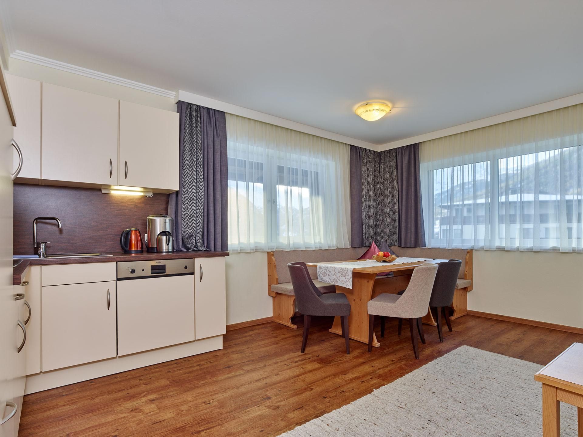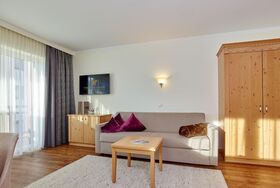 App. für 4 - 6 Pers.: 2 Schlafzimmer mit 3x Du/Wc, Wohnzimmer mit ausziehbarer Couch, Küche, 3x Flat Tv, Internetzugang Diele, Südbalkon, App. Gr. 78m² herrlicher Blick ins Tal rustikale im Landhausstil eingerichtetes Appartement