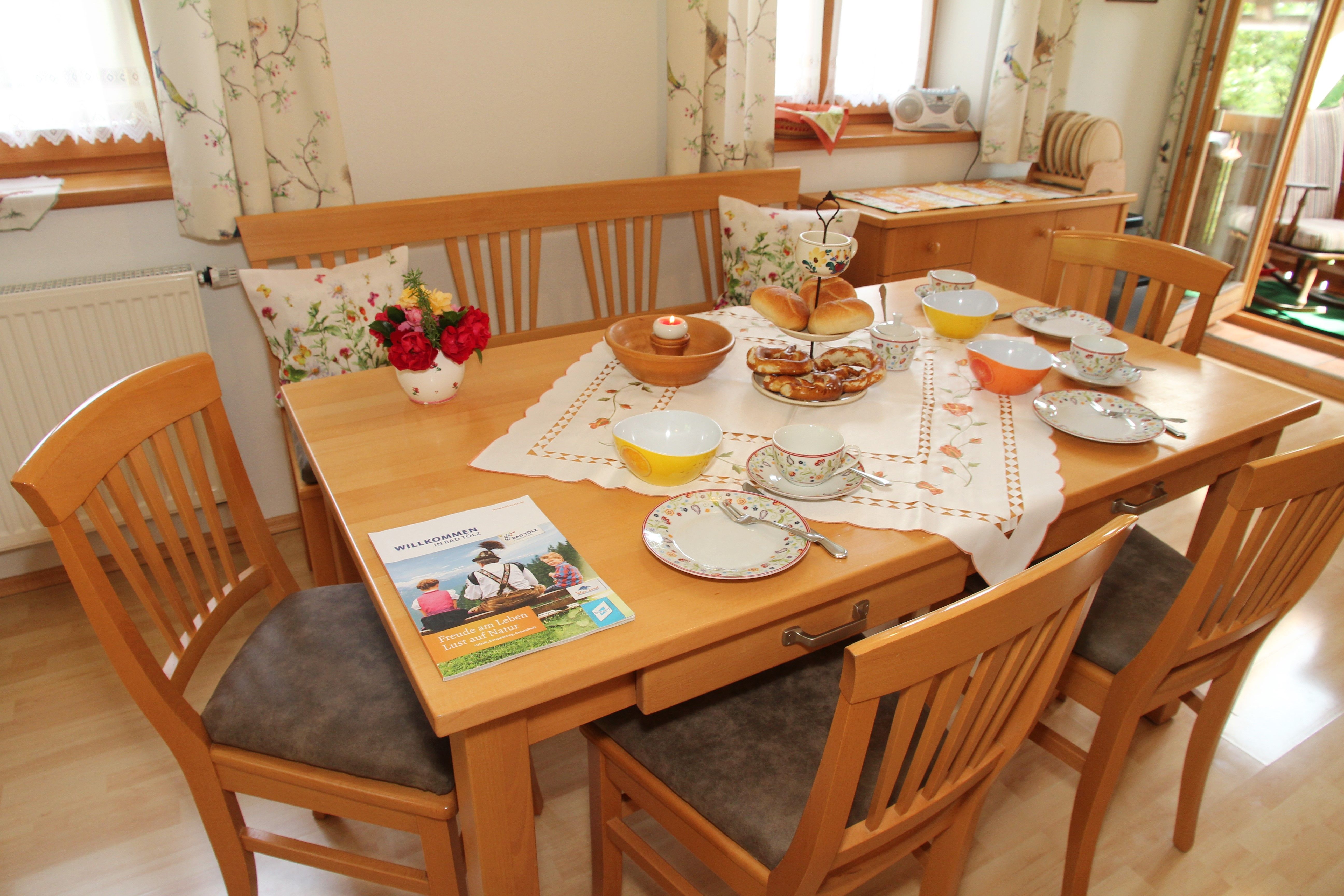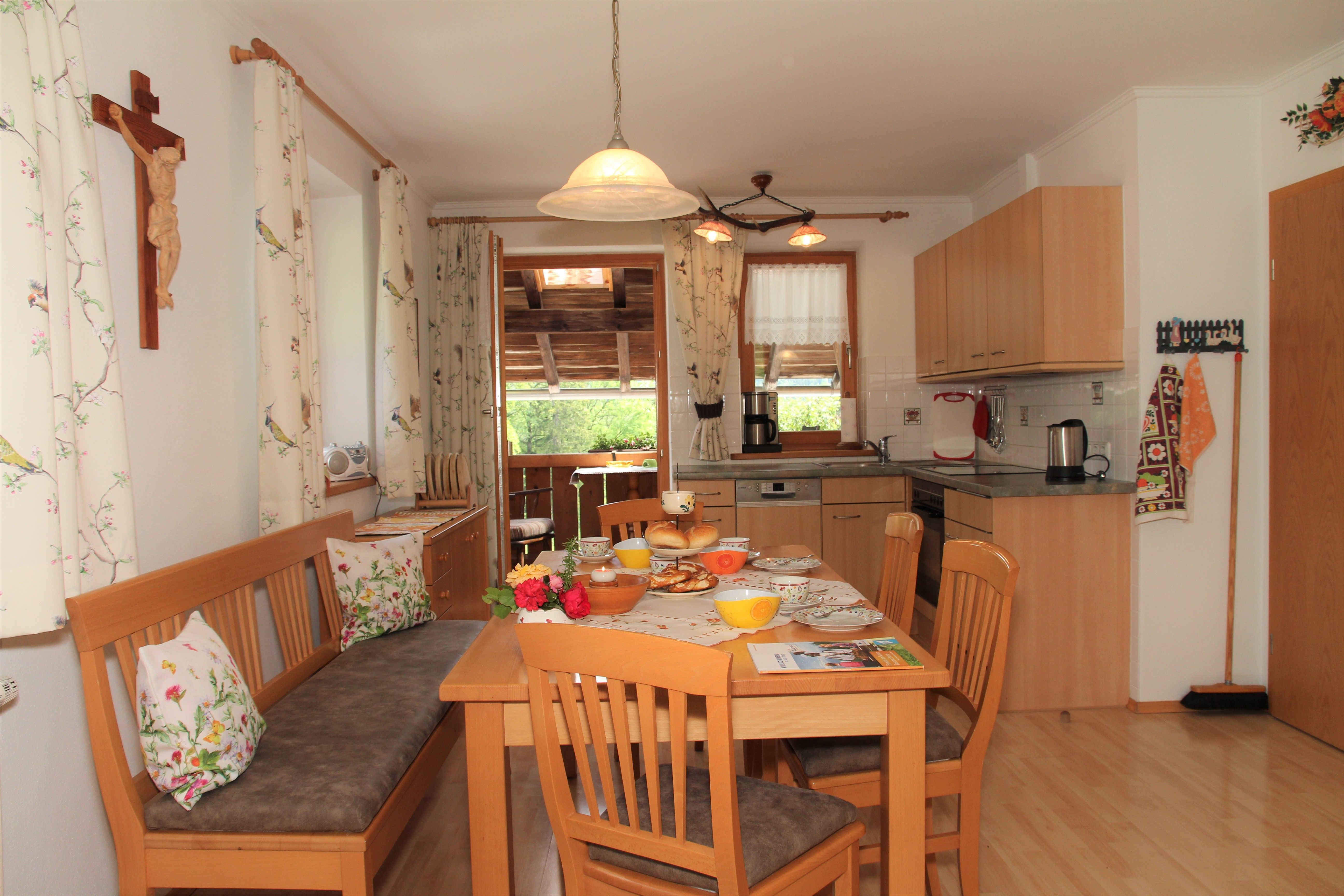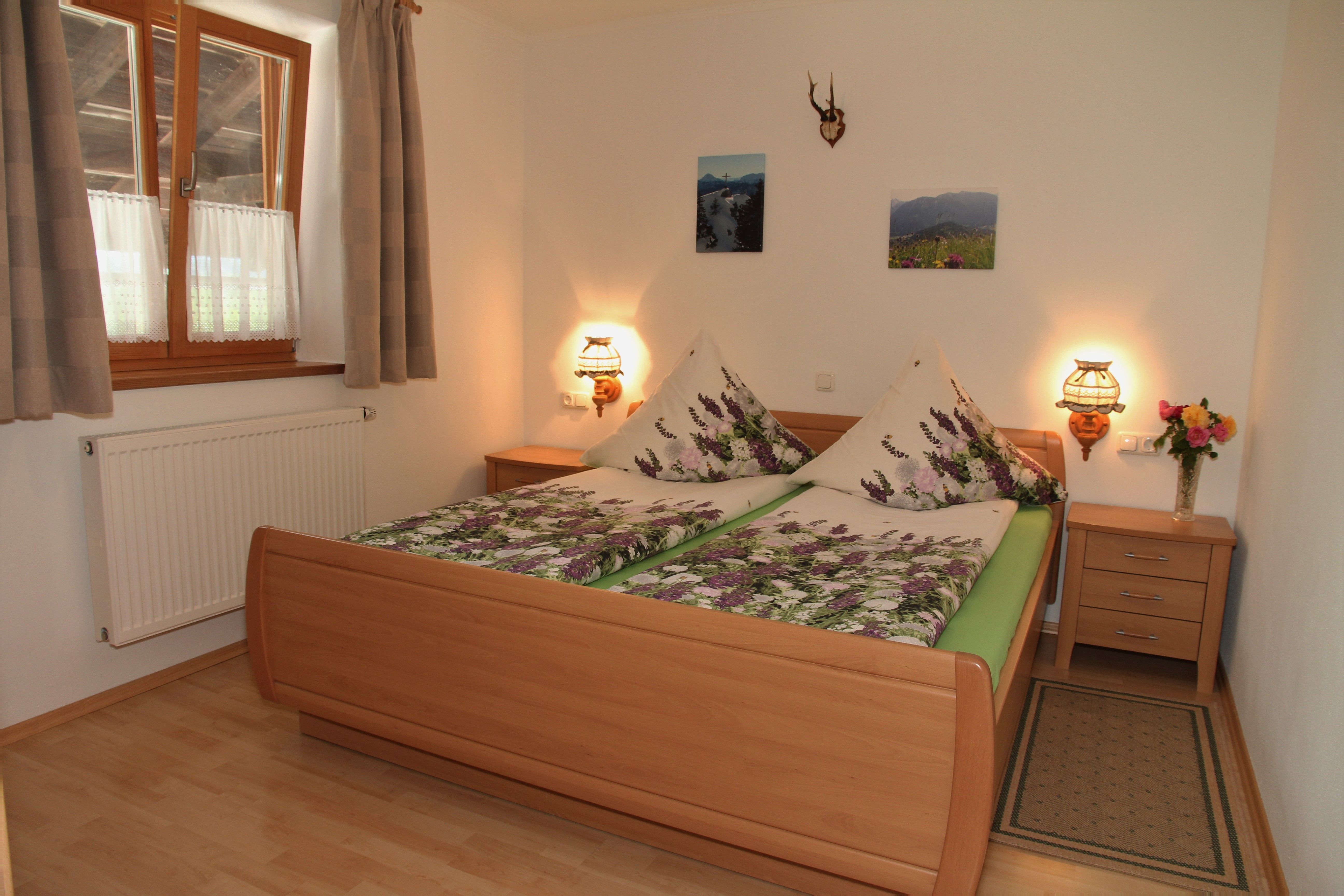 Die ruhige Ferienwohnung befindet sich im Nebengebäude, Hochparterre mit Parkplatz vor der Wohnungseingangstür möglich, mit Terrasse und Balkon. Geschmackvoll eingerichtete Räume in gemütlicher Atmosphäre in alpenländlichem Design. Die Wohnküche ist komplett ausgestattet, mit Zugang zum Balkon. Zwei Schlafzimmer mit guten Komfortmatratzen, geräumiges Bad mit reichlich Handtüchern zur freien Verfügung, großer Flur.