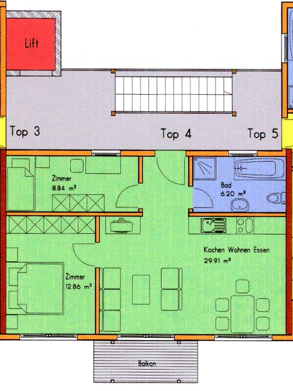 Die Wohnung ist modern eingerichtet mit Südbalkon und Gartenpark, Personenlift.