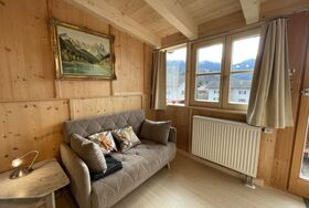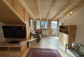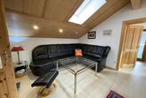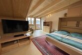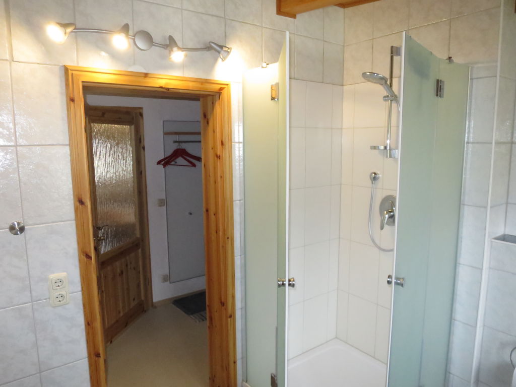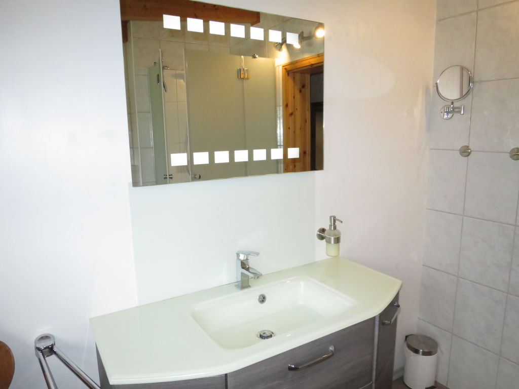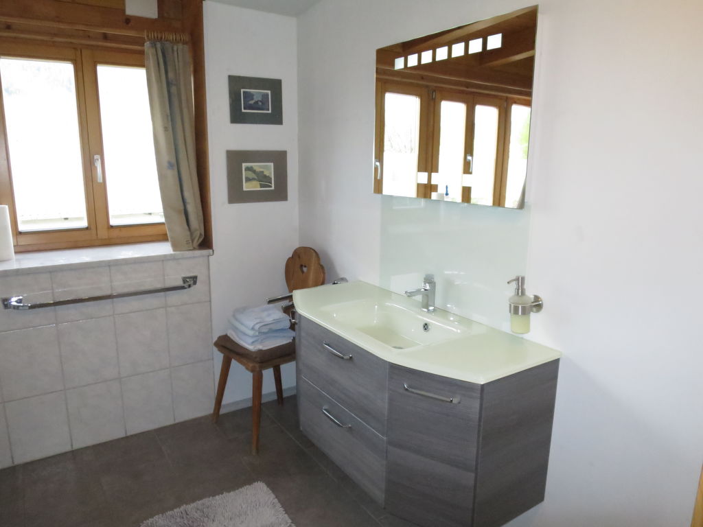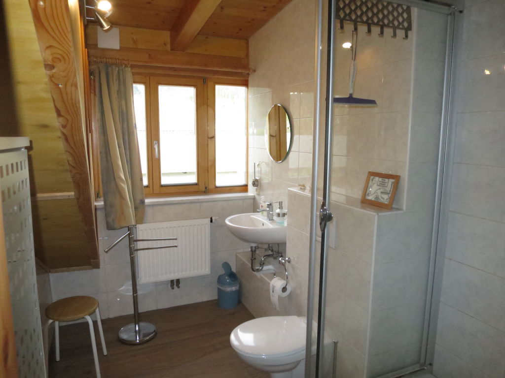 Eberhorn, 3-Zimmer-Wohnung 75 m2 im 2. Stock. Teilweise abgeschrägt, gemütlich eingerichtet: Wohn-/Schlafzimmer mit 1 Doppelwandschrankbett (160 cm, Länge 190 cm), Sat-TV, CD und DVD. 1 Zimmer mit 1 Doppelbett (180 cm, Länge 200 cm). Ausgang zum Balkon, Richtung Nordwesten. 1 Zimmer mit 2 Betten (90 cm, Länge 200 cm). Ausgang zum Balkon, Richtung Südosten. Küche (Backofen, Geschirrspüler, 4 Glaskeramikplatten, Toaster, Wasserkocher, Mikrowelle, elektrische Kaffeemaschine) mit Esstisch. 2 Duschen/WC. G-Heizung, Solarheizung. Grosser Balkon, kleiner Balkon. Balkonmöbel. Zur Verfügung: Kinderhochstuhl, Babybett. Internet (Wireless LAN, gratis). Bitte beachten: Nichtraucher-Unterkunft. Rauchmelder. Löschdecke.