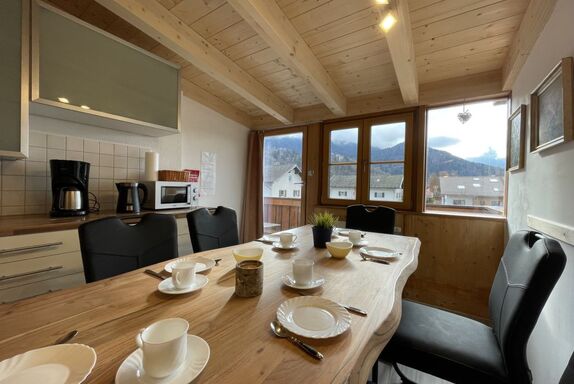 Dreifamilienhaus Eberhorn, auf 3 Stockwerken. Im Ortsteil Partenkirchen, 500 m vom Zentrum von Partenkirchen, 90 km vom Zentrum von München, in einem Wohnquartier. Zur Verfügung: Schlitten. Öffentliche Parkplätze. Supermarkt 200 m, Bushaltestelle 300 m, Bahnstation Garmisch-Partenkirchen 1 km, Freibad 1.5 km, Hallenbad 1.5 km, See Riessersee 4 km. Golfplatz (18 Loch) 8.5 km, Bergeisenbahn 1 km, Skilift 3 km, Langlaufloipe 1 km. Bitte beachten: Der Besitzer wohnt im selben Haus.