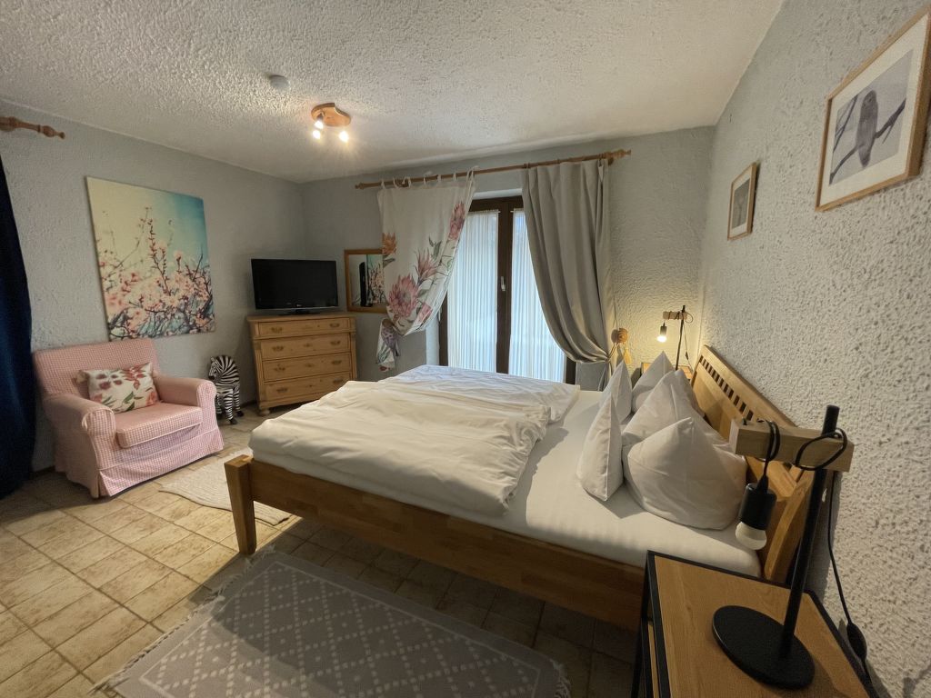 Wohnung Achental, 3-Zimmer-Wohnung 120 m2, im Erdgeschoss. Geräumig, komfortabel eingerichtet: grosses Wohn-/Esszimmer mit Sat-TV. Ausgang zum Garten, zur Terrasse. 2 Doppelzimmer. Ausgang zur Terrasse. Küche (Backofen, Geschirrspüler, 4 Glaskeramikplatten, Toaster, Wasserkocher, Mikrowelle, elektrische Kaffeemaschine). 2 Duschen/WC. Terrasse. Terrassenmöbel. Sicht auf die Berge. Zur Verfügung: Internet (WLAN, gratis). Bitte beachten: Nichtraucher-Unterkunft. Maximal 1 Haustier/Hund erlaubt. Eigener Eingang, Rauchmelder, Feuerlöscher.