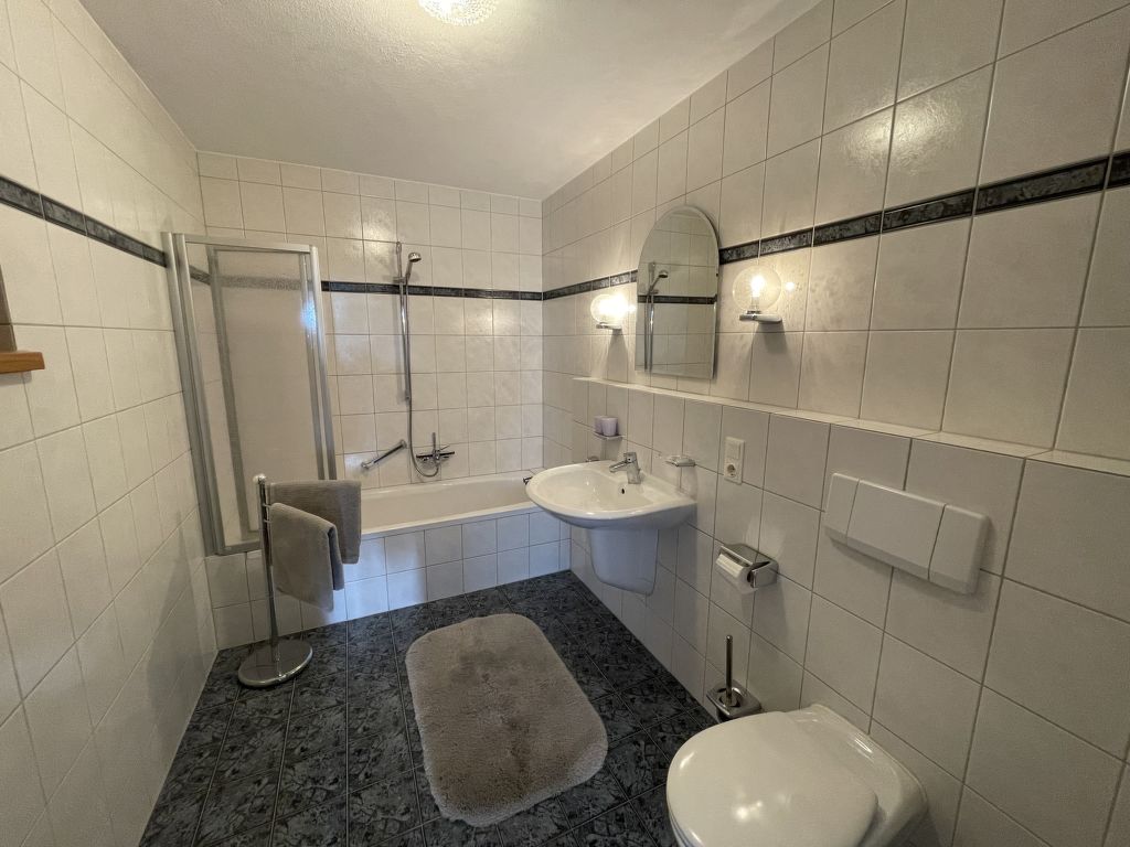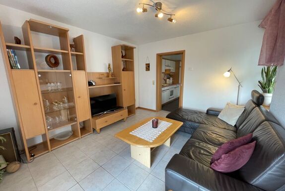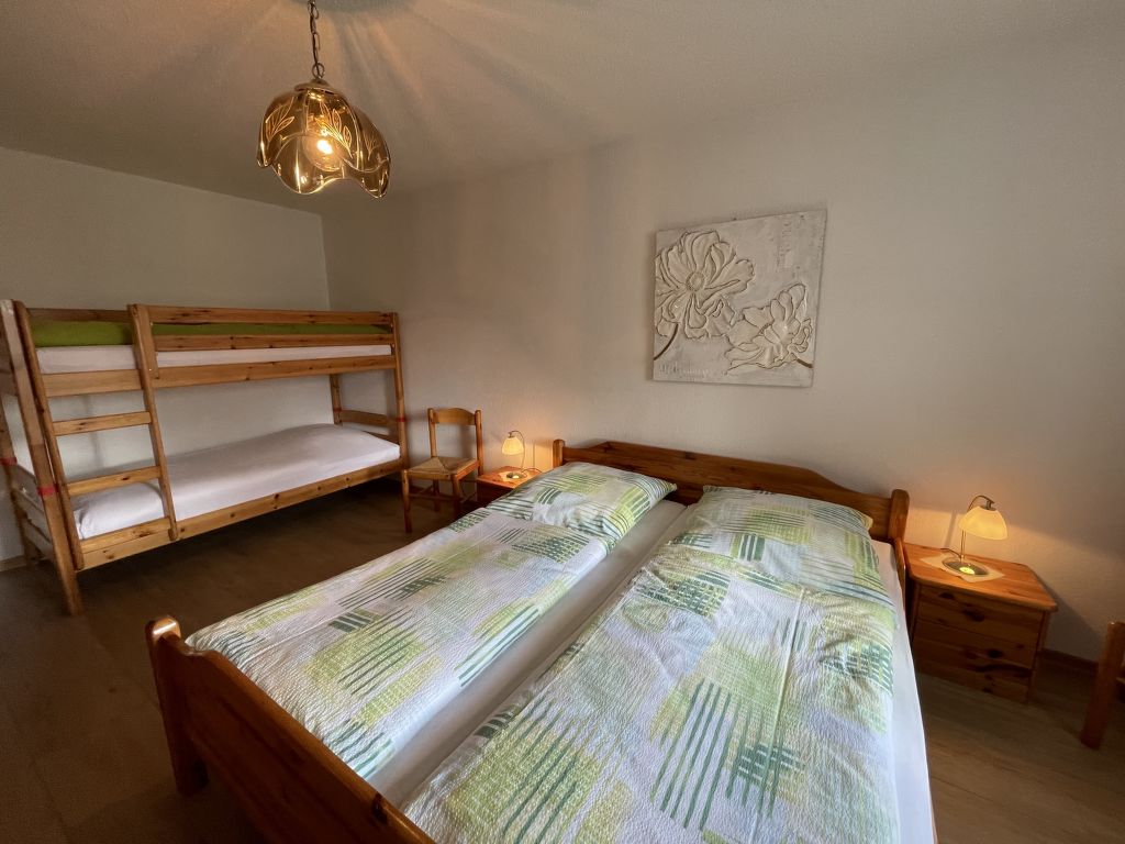 2-Zimmer-Wohnung 65 m2, im Erdgeschoss. Objekt geeignet für 2 Erwachsene + 2 Kinder. Zweckmässig und mit viel Holz eingerichtet: Wohnzimmer mit Sat-TV, CD, Stereoanlage und DVD. Ausgang zur Terrasse. 1 Zimmer mit 1 x 2 Etagenbetten (80 cm, Länge 180 cm), 1 Doppelbett (200 cm, Länge 200 cm). Küche (4 Kochplatten, Backofen, Toaster, Wasserkocher, elektrische Kaffeemaschine) mit Esstisch. Bad/WC. Fussbodenheizung. Terrasse teilweise überdacht, Rasen 100 m2. Terrassenmöbel, Gartengrill. Zur Verfügung: Kinderhochstuhl, Babybett. Internet (WLAN, gratis). Parkplatz (1 Auto) beim Haus. Bitte beachten: Nichtraucher-Unterkunft. Maximal 1 Haustier/Hund erlaubt. Eigener Eingang, Rauchmelder, Feuerlöscher. Buchungen sind nur zu touristischen Zwecken erlaubt.