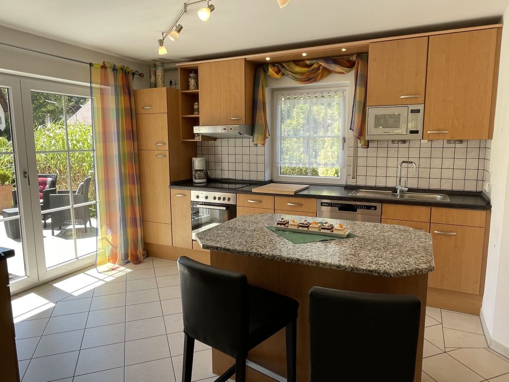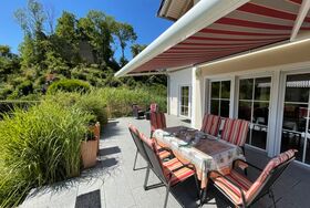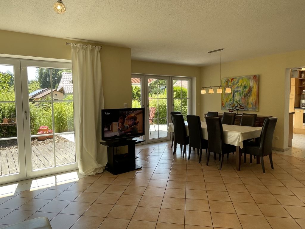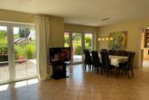 5-Zimmer-Haus 240 m2 auf 2 Stockwerken. Komfortabel und geschmackvoll eingerichtet: Wohn-/Esszimmer mit Schwedenofen, Esstisch und Sat-TV. Ausgang zur Terrasse. 1 Kinderzimmer mit 1 x 2 Etagenbetten. Offene Küche (Backofen, Geschirrspüler, 4 Glaskeramikplatten, Toaster, Wasserkocher, Mikrowelle, Tiefkühler, elektrische Kaffeemaschine). Dusche/WC. Obergeschoss: 3 Doppelzimmer. Sep. WC, Bad/Dusche/WC, Doppelwaschbecken. Fussbodenheizung. Natursteinboden. Terrasse, Gartensitzplatz. Terrassenmöbel, Gartengrill (mobil). Zur Verfügung: Kinderhochstuhl, Babybett. Internet (Wireless LAN, gratis). Bitte beachten: Nichtraucher-Haus. Rauchmelder, Feuerlöscher.