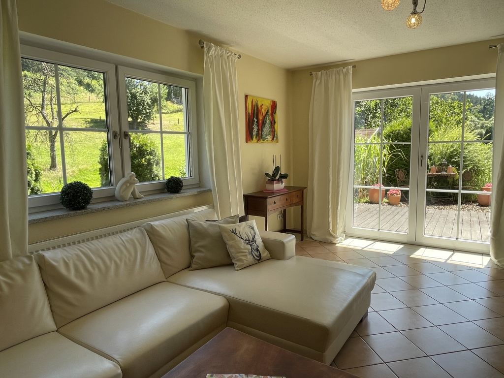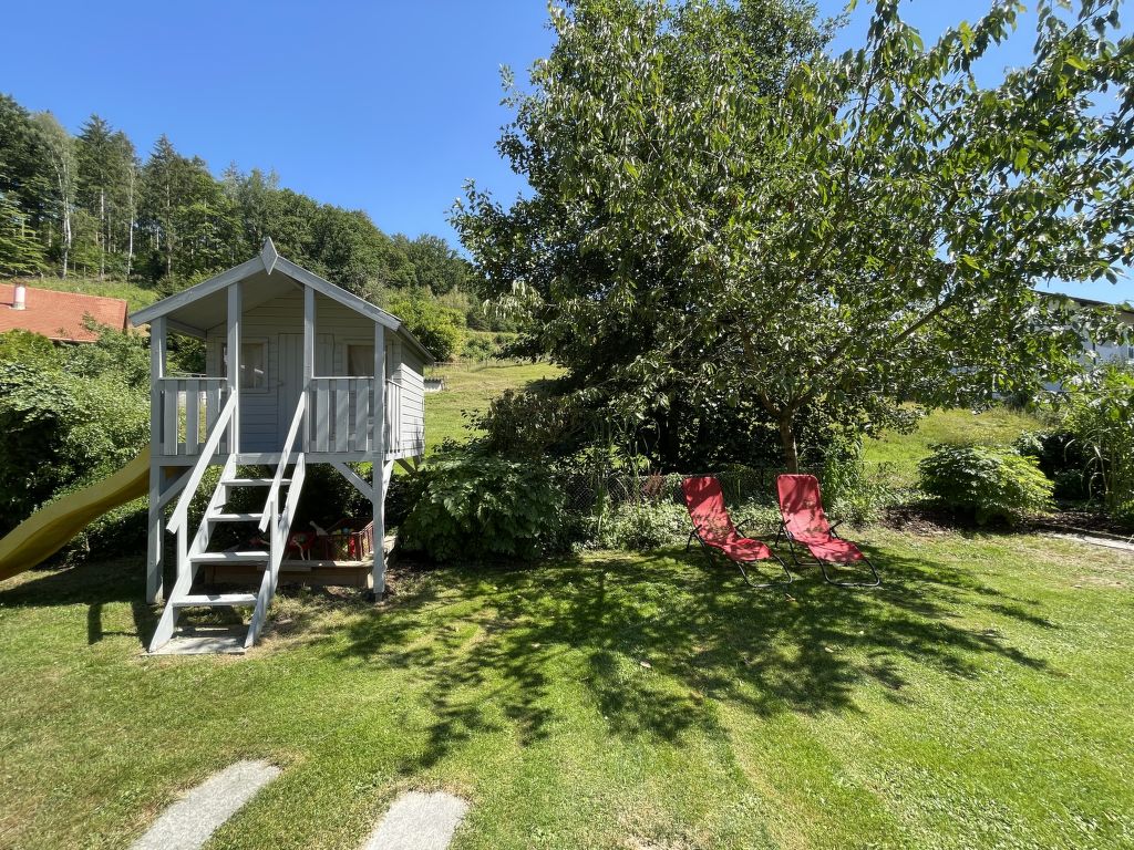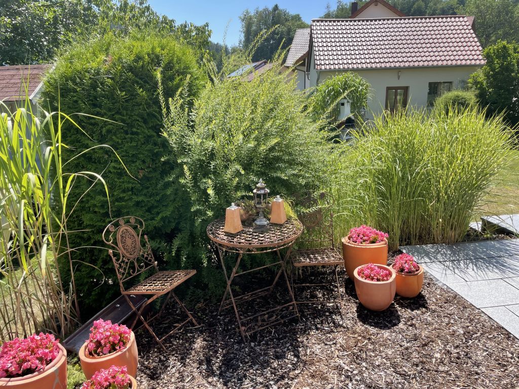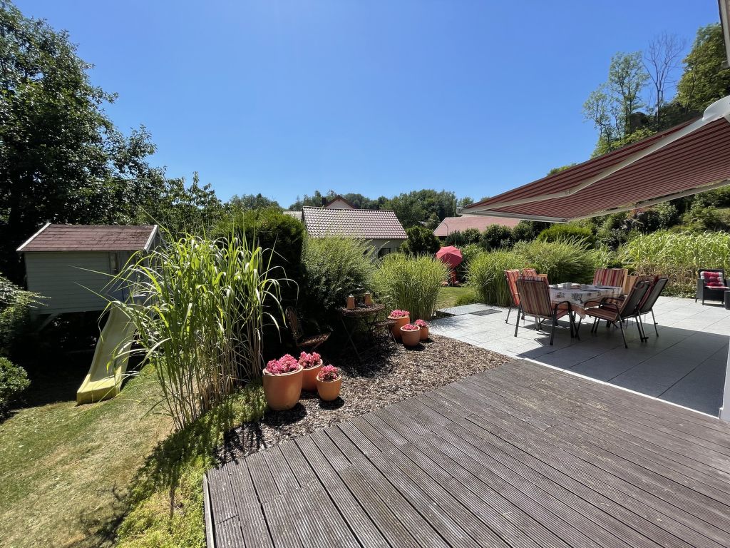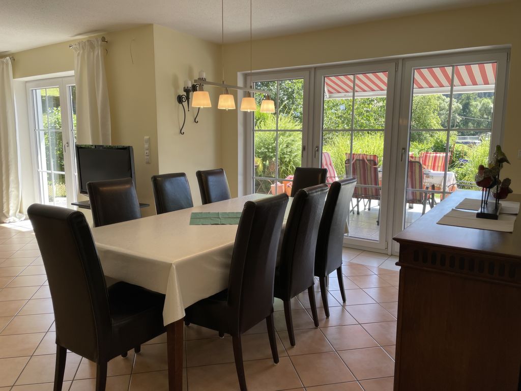 Haus Ederer, einseitig angebaut. Im Ortsteil Neuhaus, 3 km vom Zentrum von Schorndorf, 11 km vom Zentrum von Cham, 50 km vom Zentrum von Regensburg, 100 m vom Waldrand, im Grünen. Zur Alleinbenutzung: Grundstück 1'000 m2, gepflegter Garten (nicht eingezäunt) mit Pflanzen, Liegewiese. Kinderspielplatz (Schaukel, Sandkasten), Parkplatz auf dem Grundstück, Einzelgarage. Einkaufsgeschäft 3 km, Supermarkt 11 km, Bushaltestelle Obergoßzell, Traitsching 2.4 km, Freibad 3.7 km. Eine separate Wohnung im Anbau ist zeitweise dauervermietet.