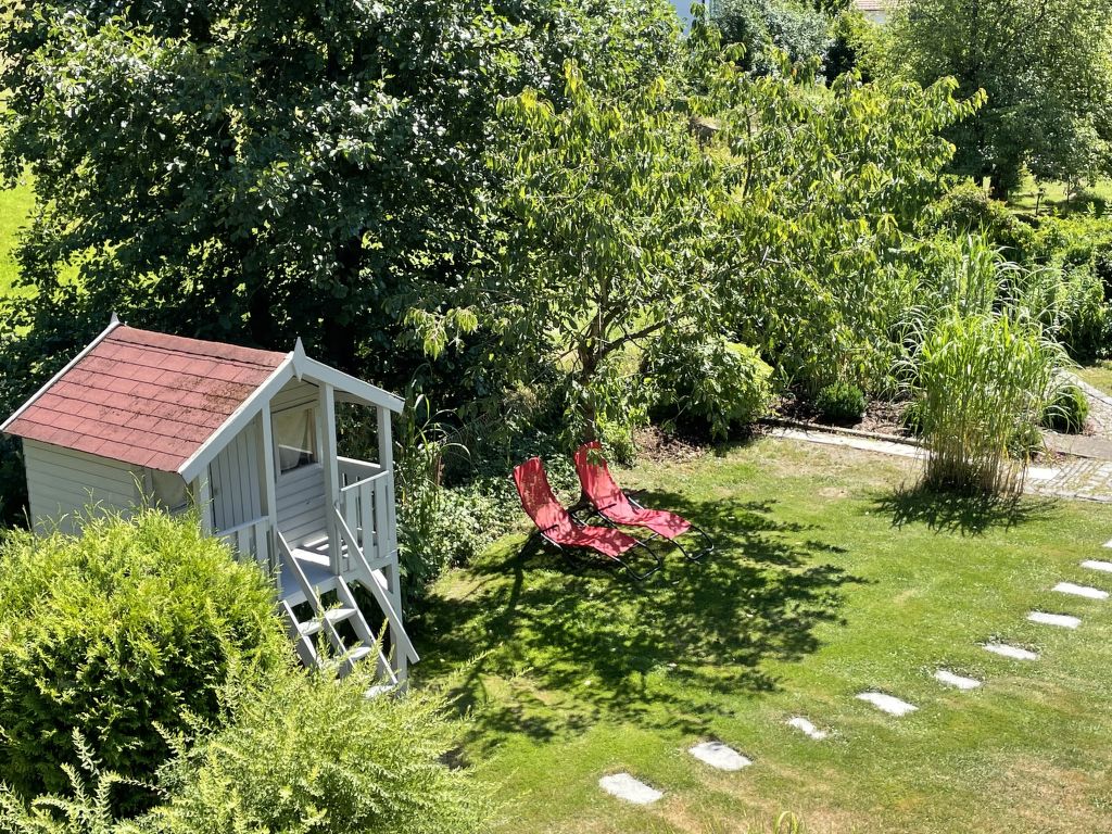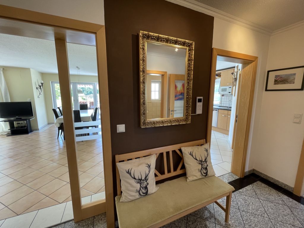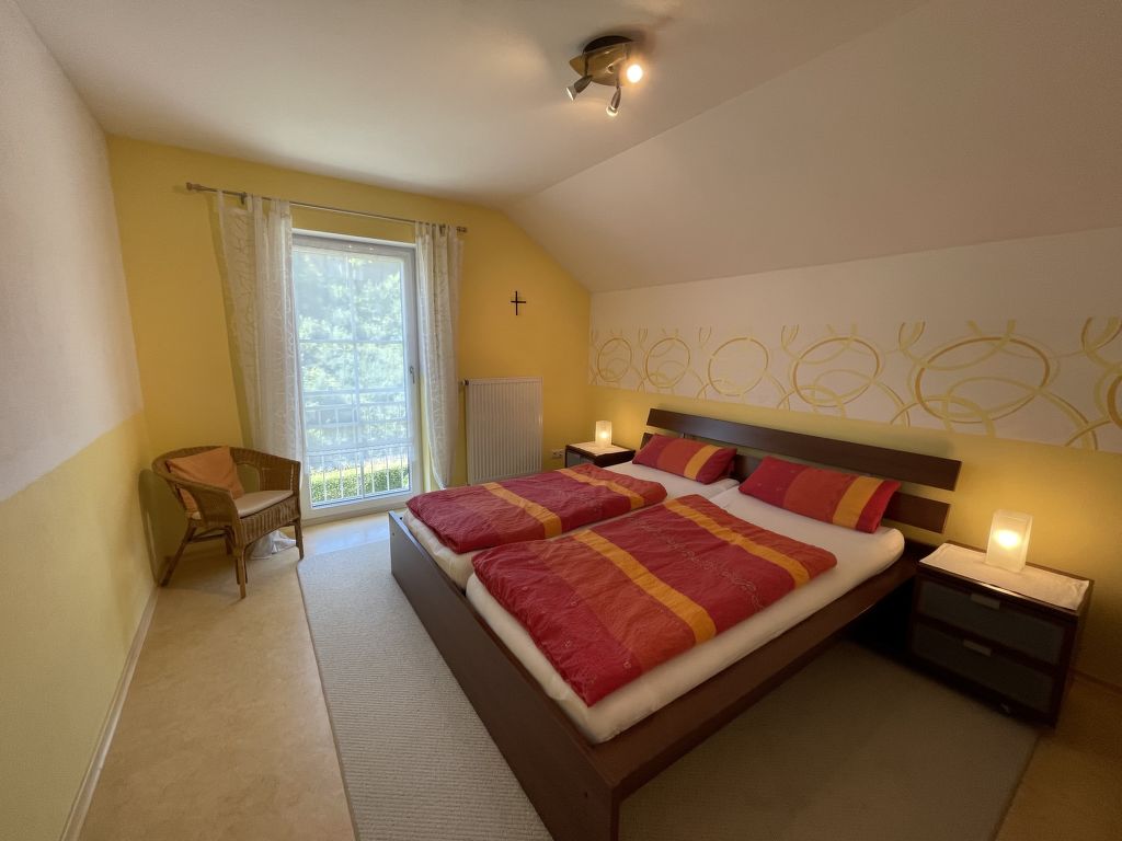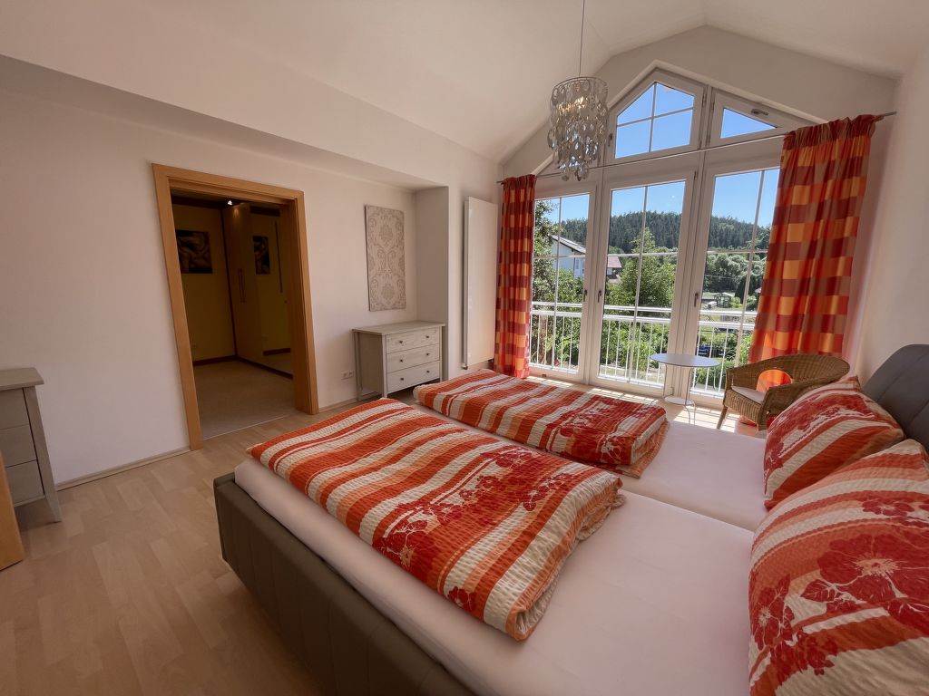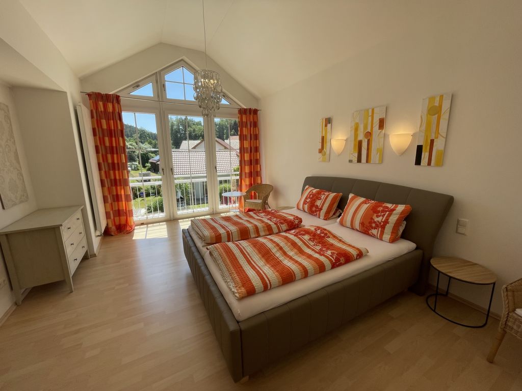 Haus Ederer, einseitig angebaut. Im Ortsteil Neuhaus, 3 km vom Zentrum von Schorndorf, 11 km vom Zentrum von Cham, 50 km vom Zentrum von Regensburg, 100 m vom Waldrand, im Grünen. Zur Alleinbenutzung: Grundstück 1'000 m2, gepflegter Garten (nicht eingezäunt) mit Pflanzen, Liegewiese. Kinderspielplatz (Schaukel, Sandkasten), Parkplatz auf dem Grundstück, Einzelgarage. Einkaufsgeschäft 3 km, Supermarkt 11 km, Bushaltestelle Obergoßzell, Traitsching 2.4 km, Freibad 3.7 km. Eine separate Wohnung im Anbau ist zeitweise dauervermietet.