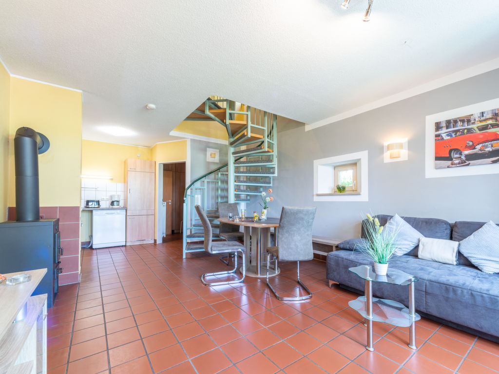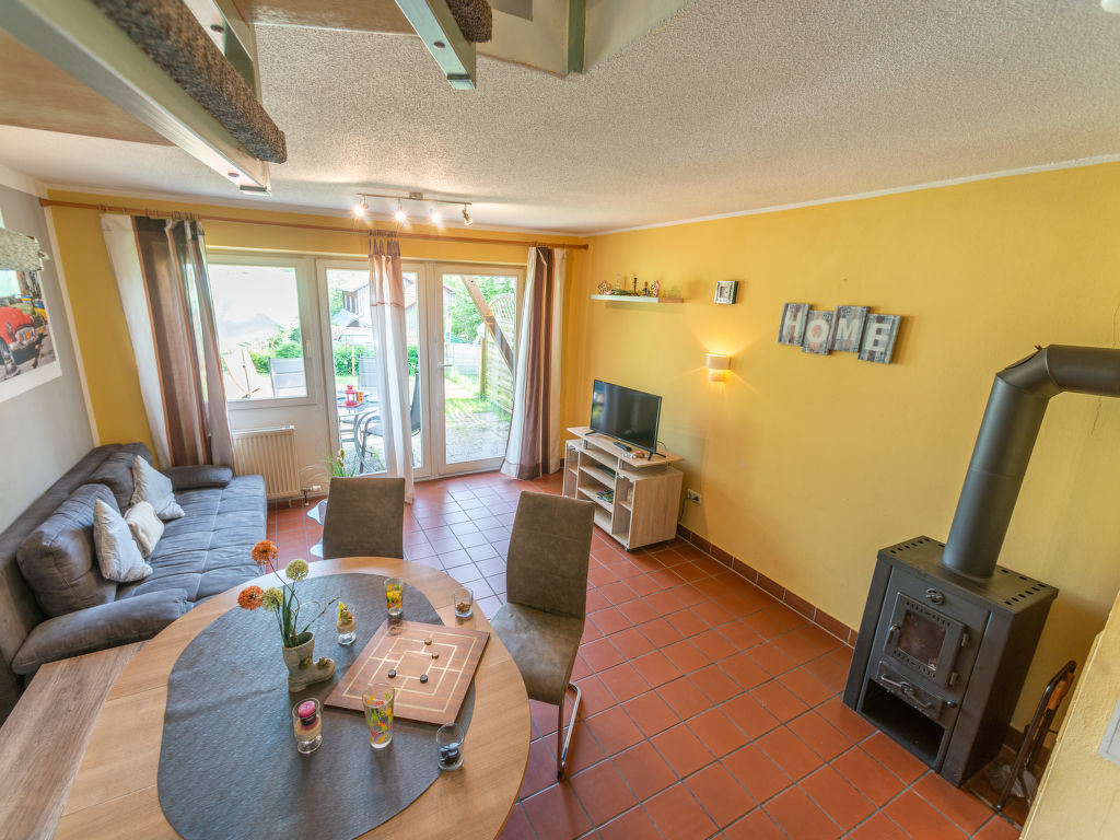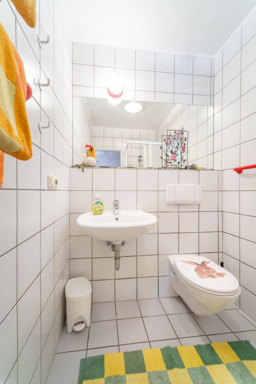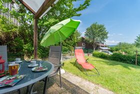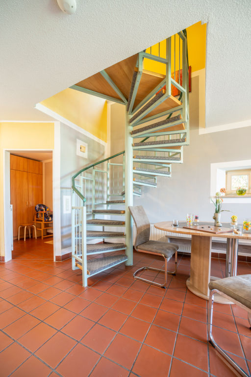 3-Zimmer-Doppelhaushälfte 73 m2 auf 2 Stockwerken. Objekt geeignet für 4 Erwachsene + 2 Kinder. Wohn-/Schlafzimmer mit 2 Schlafmöglichkeiten, Schwedenofen, Esstisch und Sat-TV. Offene Küche (4 Kochplatten, Backofen, Mikrowelle, elektrische Kaffeemaschine). Dusche/WC. Obergeschoss: (Wendeltreppe) 1 abgeschrägtes Zimmer mit 1 Doppelbett und sep. WC. 1 Zimmer mit 2 Betten und sep. WC. G-Heizung. Terrasse. Terrassenmöbel, Liegestühle (2). Panoramasicht. Zur Verfügung: Internet (WLAN, gratis). Parkplatz (1 Auto). Bitte beachten: Nichtraucher-Unterkunft. Maximal 2 Haustiere/Hunde erlaubt. Rauchmelder, Feuerlöscher. Buchungen sind nur zu touristischen Zwecken erlaubt.