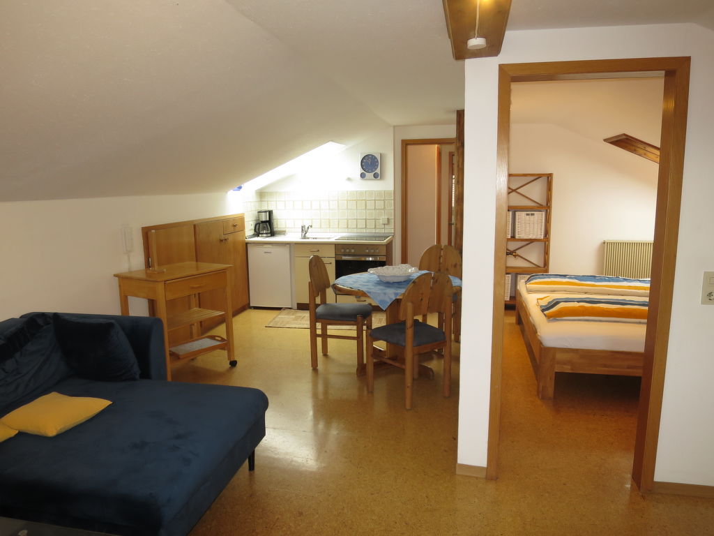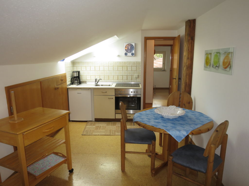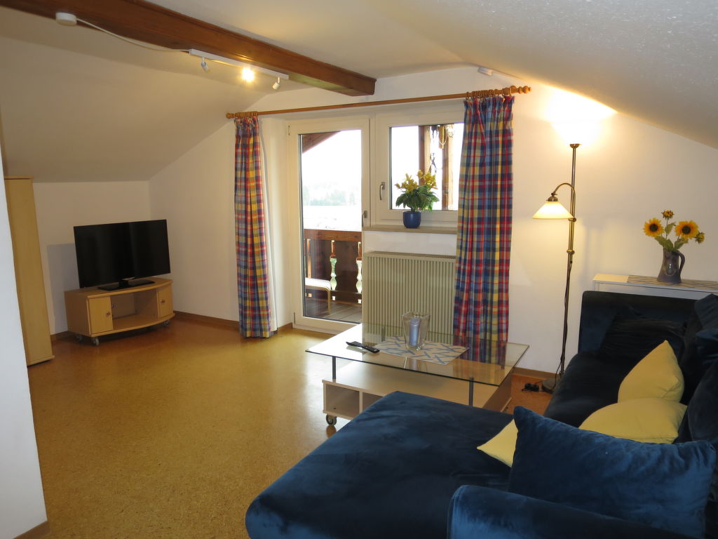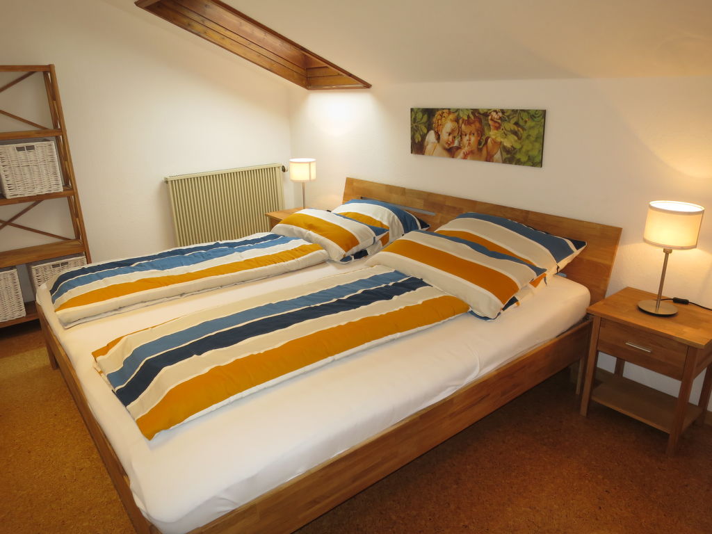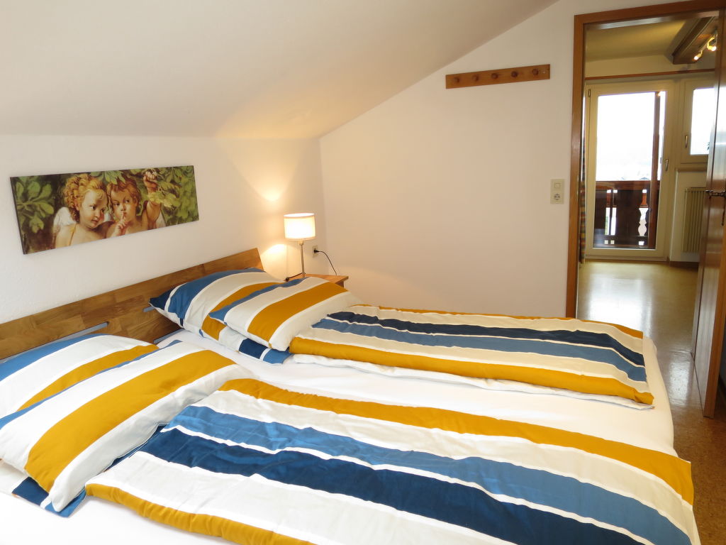 Ferienwohnung Fischer, 3-Zimmer-Wohnung 52 m2, im Dachgeschoss. Abgeschrägt, gemütlich eingerichtet: Wohn-/Esszimmer mit Esstisch und Sat-TV. Ausgang zum Balkon. 1 Zimmer mit Dachfenster mit 1 Doppelbett. 1 Zimmer mit Dachfenster mit 1 Bett. Offene Küche (Backofen, 4 Glaskeramikplatten, Toaster, Wasserkocher, elektrische Kaffeemaschine). Dusche/WC. Heizung. Balkonmöbel. Panoramasicht auf den See und die Berge. Zur Verfügung: Internet (Wireless LAN, gratis). Parkplatz. Bitte beachten: Nichtraucher-Unterkunft. Rauchmelder.