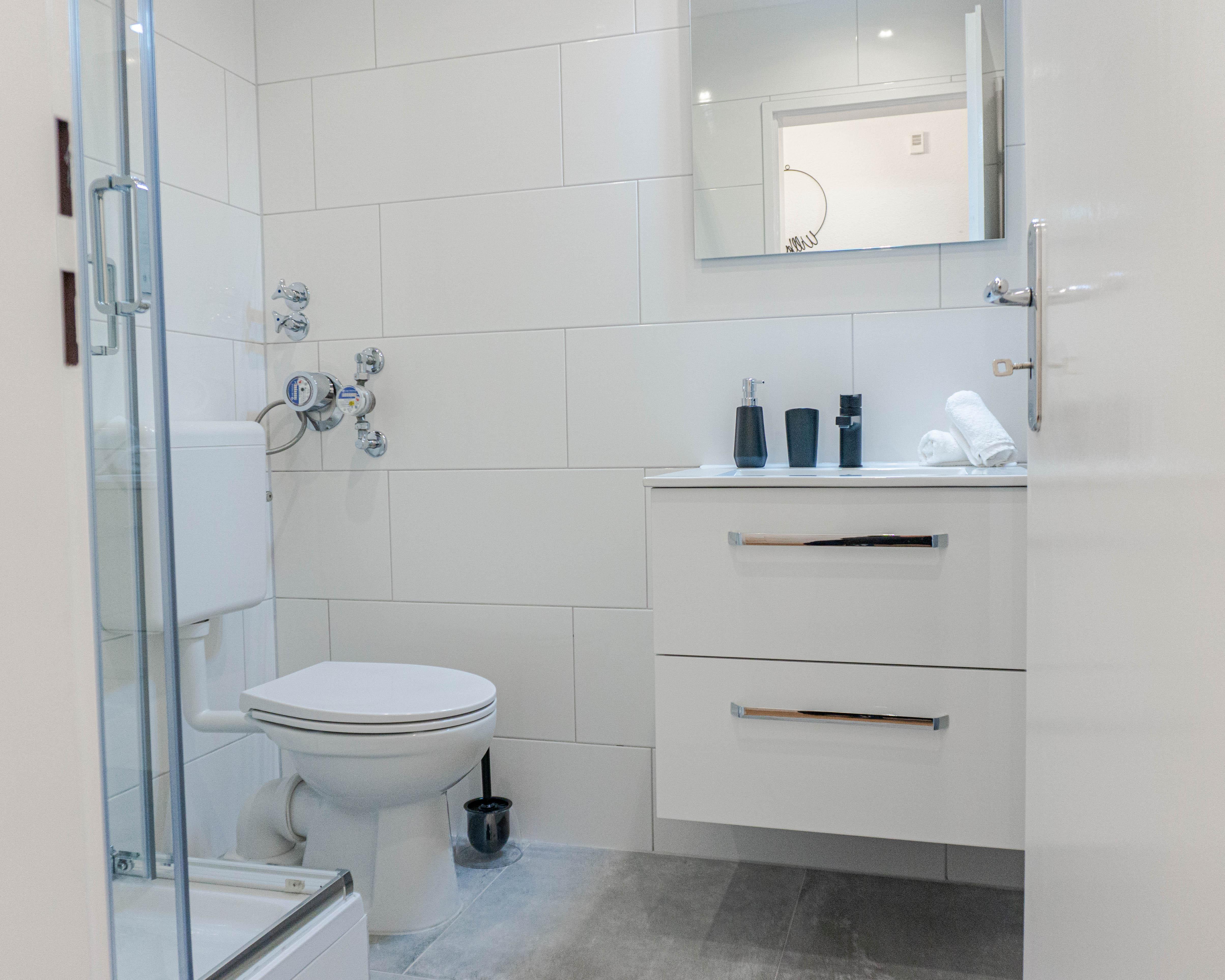 Sie parken direkt vor dem Eingang und gelangen über die Treppe zur Erdgeschoß Wohnung. Wie bieten flexiblen Selbst-Chek-In mittels Schlüsselbox.