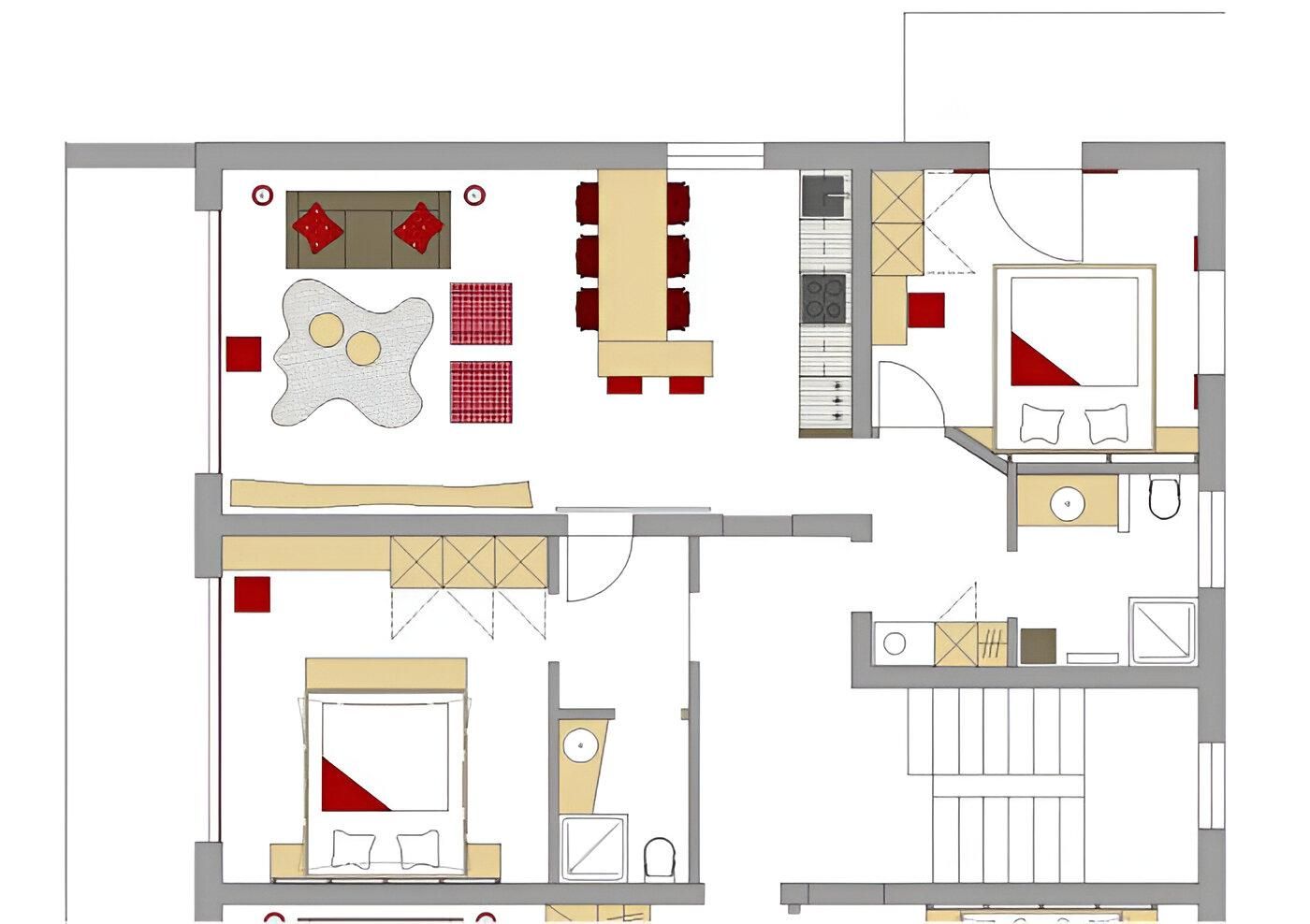 2 separate Schlafzimmer, 2 Bäder mit Dusche, WC, Handtuchwärmer, Fußbodenheizung und Fön, Wohnküche komplett ausgestattet mit Ceranfeld, Backofen und Geschirrspülmaschine, Wasserkocher, Senseo-Kaffeepadmaschine und Toaster, Wohnraum mit Couch, Smart-TV, Stereoanlage mit CD und USB, Safe, kostenloser WLAN-Zugang.
