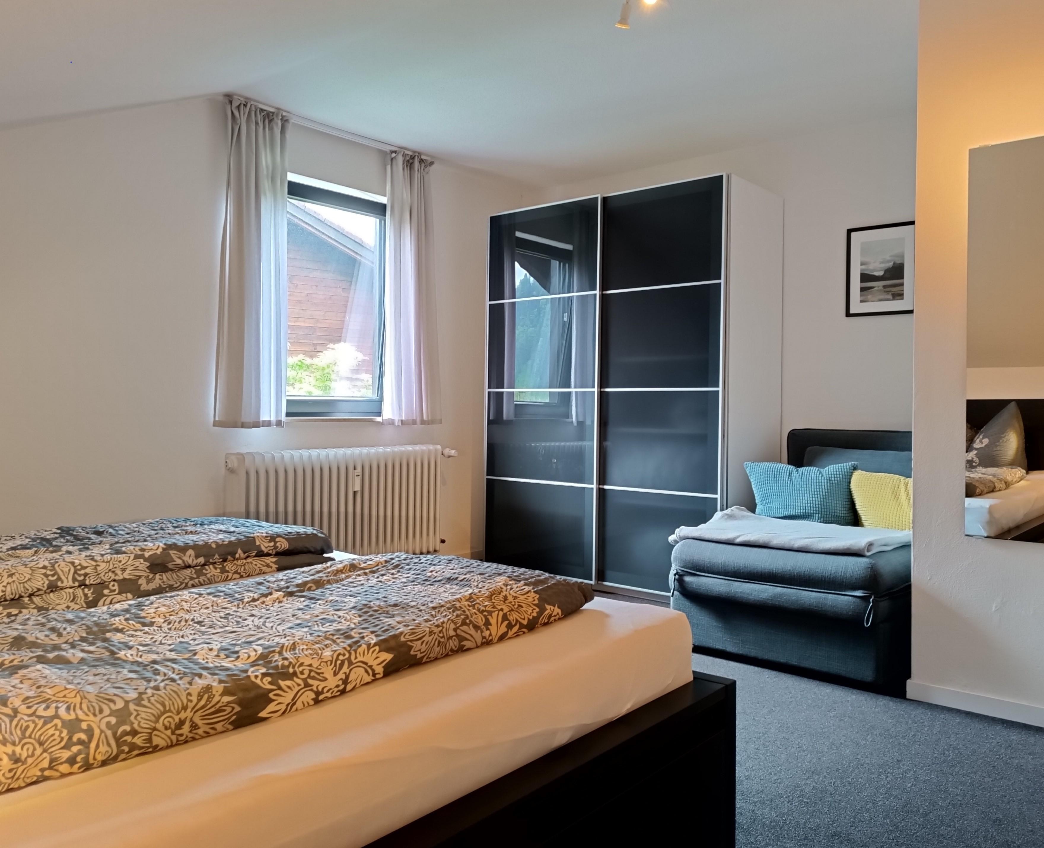 Die Wohnung befindet sich ca. 15 Minuten vom Ortskern entfernt. Kleinere Einkaufsmöglichkeiten wie der Dorfbäcker und Restaurants sind nur wenige Meter entfernt. Auch begeisterte Skifahrer haben hier im Winter die Möglichkeit den Skibus zum Skigebiet Grasgehren kostenlos zu nutzen. Die Bushaltestelle ist nur wenige Meter vom Haus entfernt.