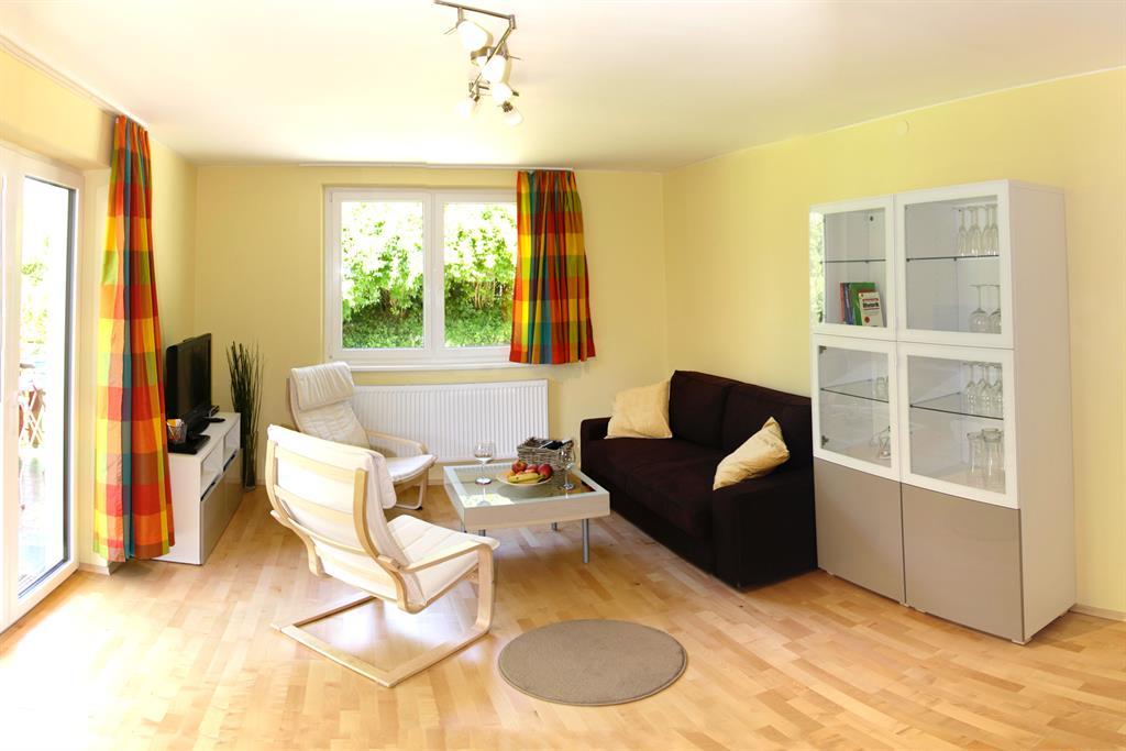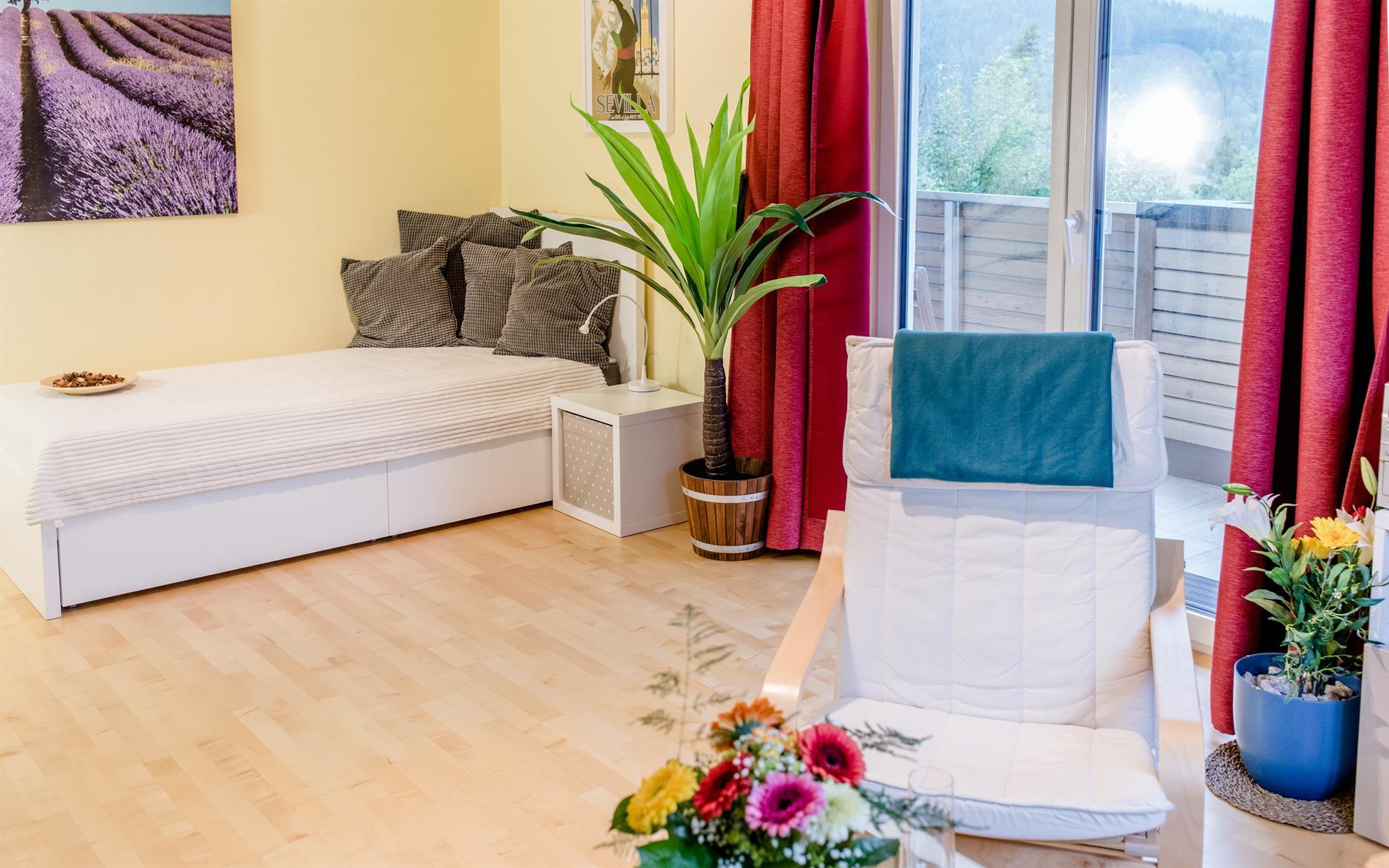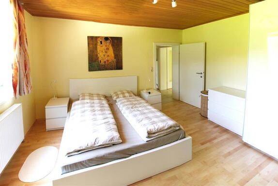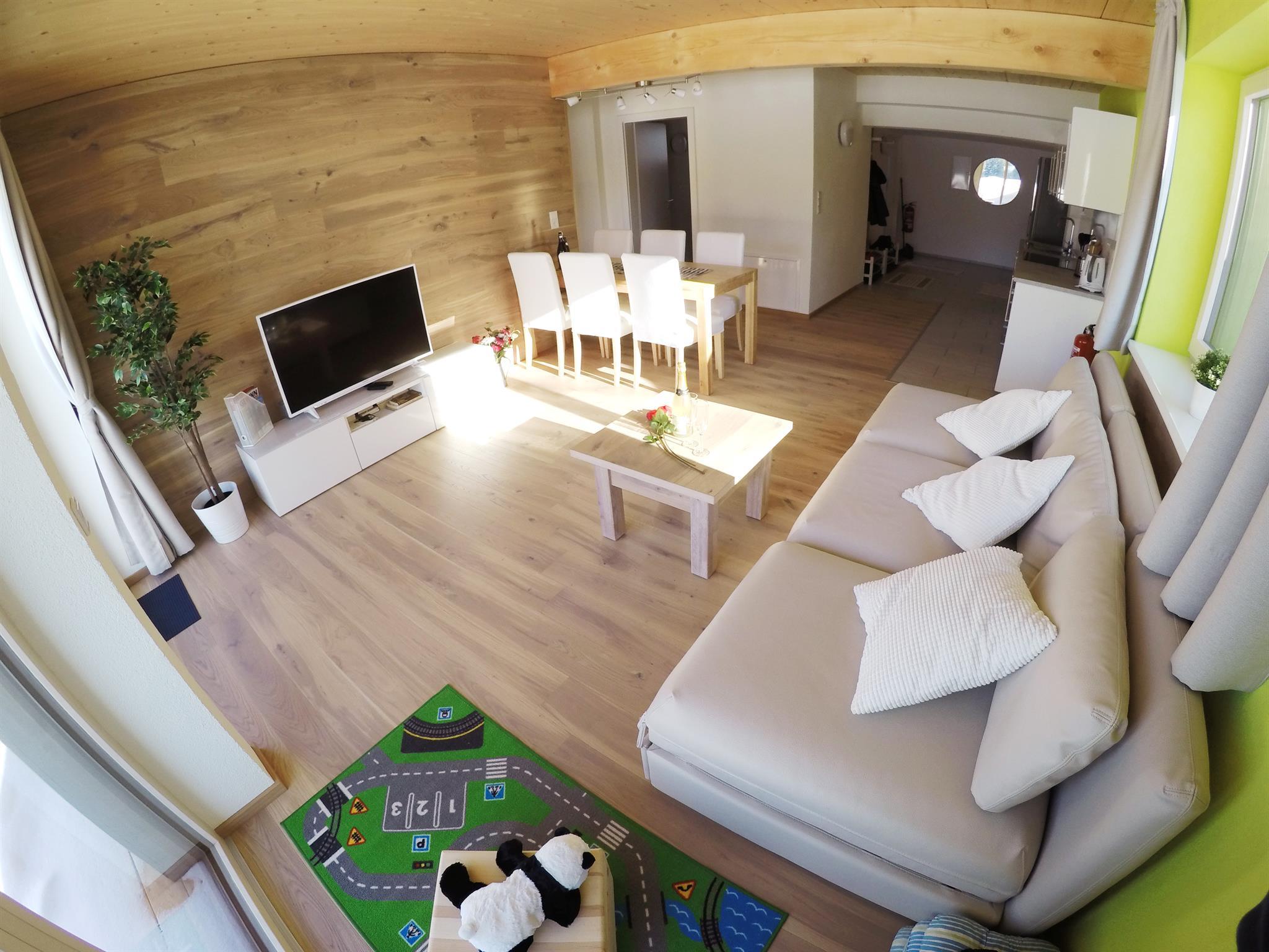 Die neu renovierte und modern eingerichtete Ferienwohnung ist voll ausgestattet und misst 84m². Ein leichter Zugang zur Erdgeschosswohnung ist durch den direkten Gartenzutritt möglich. Vom Garten oder der Terrasse aus kann man den 360° Panoramablick auf die Berge und Wälder der Region genießen.