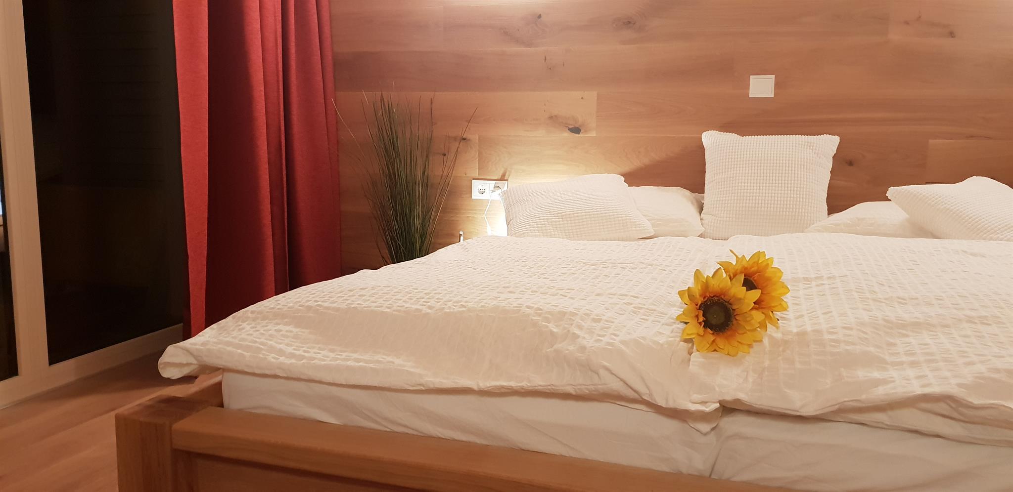 Die Normalbelegung der Ferienwohnung Mountain View liegt bei 3 - 5 Personen. Im großen Schlafzimmer kann ein Zusatzbett für eine Person hinzugefügt werden und im Wohnzimmer können zwei Personen auf der Schlafcouch sowie eine Persoon auf dem Sofabett übernachten. Das große Schlafzimmer sowie das Wohnzimmer bieten also jeweils Platz für drei Personen und das kleine Schlafzimmer für eine Person.