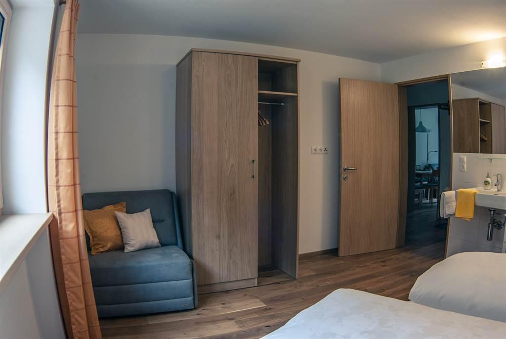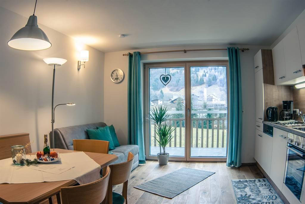 60 Quadratmeter-Ferienwohnung geeignet für 4-6 Personen mit zwei Schlafzimmern, Wohnküche, Badezimmer und separatem WC. Beide Schlafzimmer sind mit Doppelbett und Zusatzbett ausgestattet. Die Wohnküche verfügt über Geschirrspüler, Backofen, Ceranfeld-Herd, Kühlschrank sowie Ess- und Sitzbereich. Das Bad ist mit Dusche, Handtuchtrockner und Haarföhn ausgestattet. Weiters gibt es TV und Gratis-Wlan.