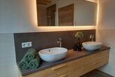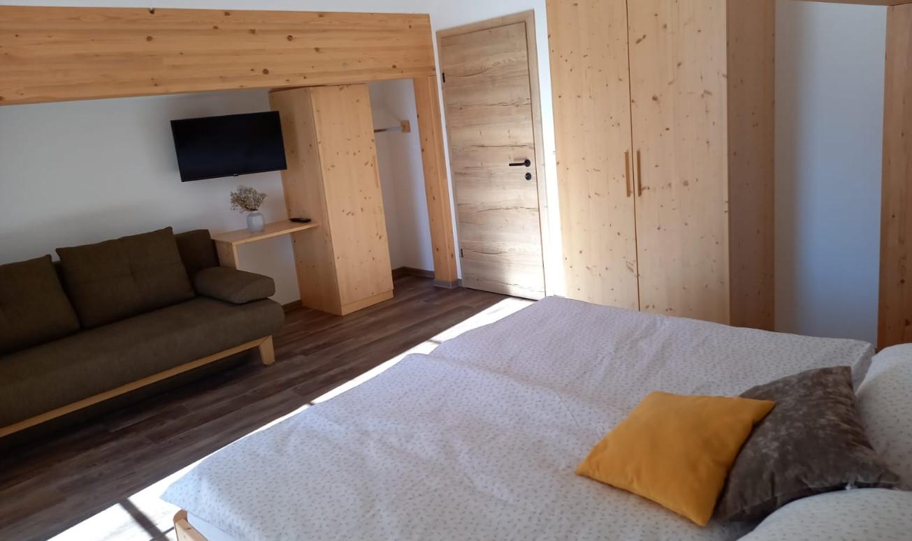 Unser Apartment verfügt über 2 Schlafzimmer.Jedes Schlafzimmer hat einen eigenen Balkon mit Bergblick und einen Flachbild-TV. Um die Ruhe am Balkon genießen zu können, ist auch ein kleiner Tisch mit Sessel vorhanden. Weiteres gibt es einen großen Wohn-Eßbereich. Im Wohnbereich befindet sich auch noch ein großer Flachbild-TV. Die Küche ist voll ausgestattet. Auch mit einem Kühlschrank mit Gefrierfach, einem Backofen und einer Mikrowelle. Natürlich gibt es auch ein Badezimmer mit Doppelwaschbecken, einer Dusche und einer Waschmaschine. Das WC ist ein eigener Bereich . Handtücher und Bettwäsche werden im Apartment gestellt.