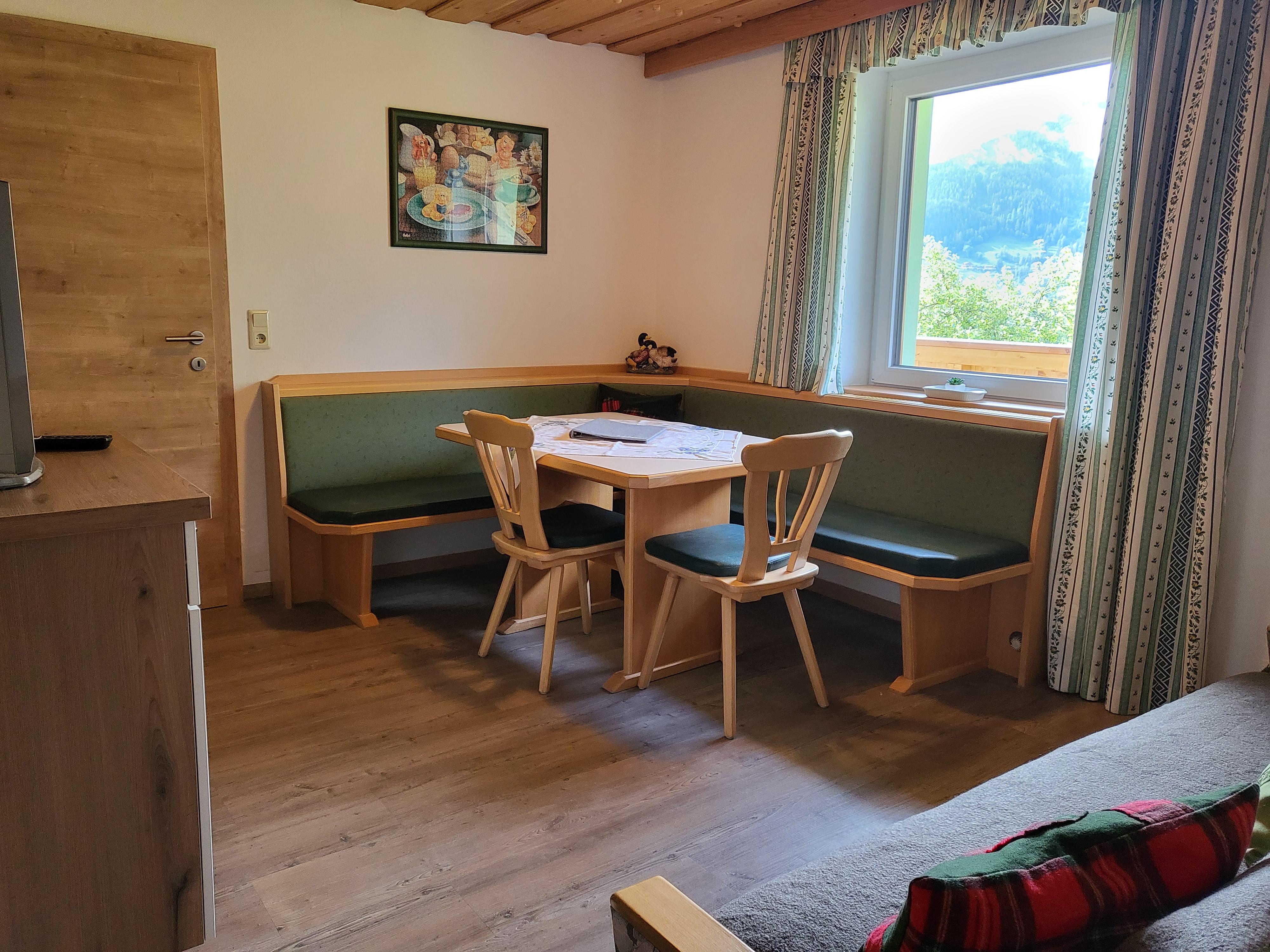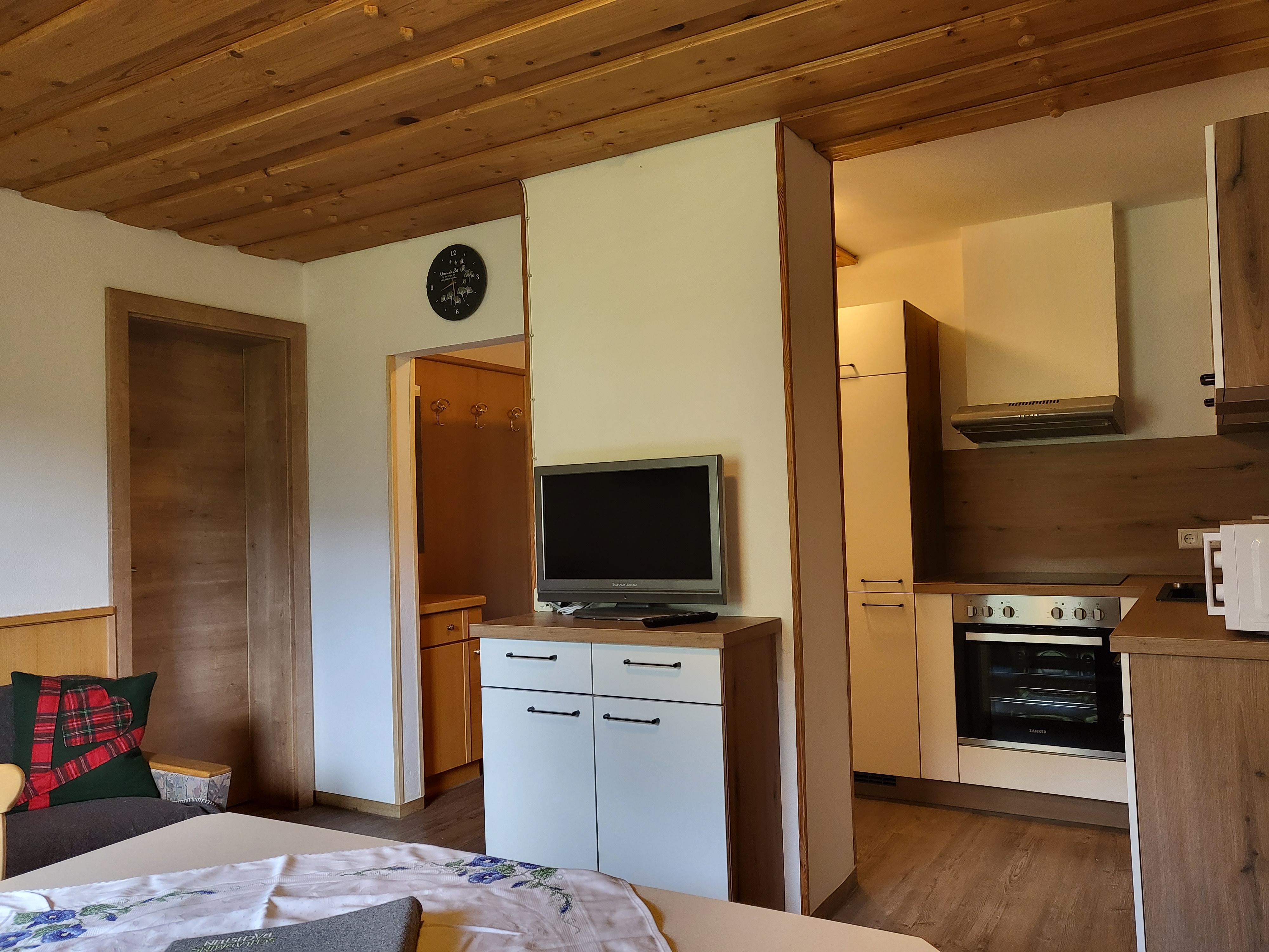 Die Wohnung ,,Edelweiß“ hat eine Wohnküche mit E-Herd, Backrohr, Mikro, Kaffeemaschine, Wasserkocher, Kühlschrank mit Gefrierfach und Geschirrspüler.