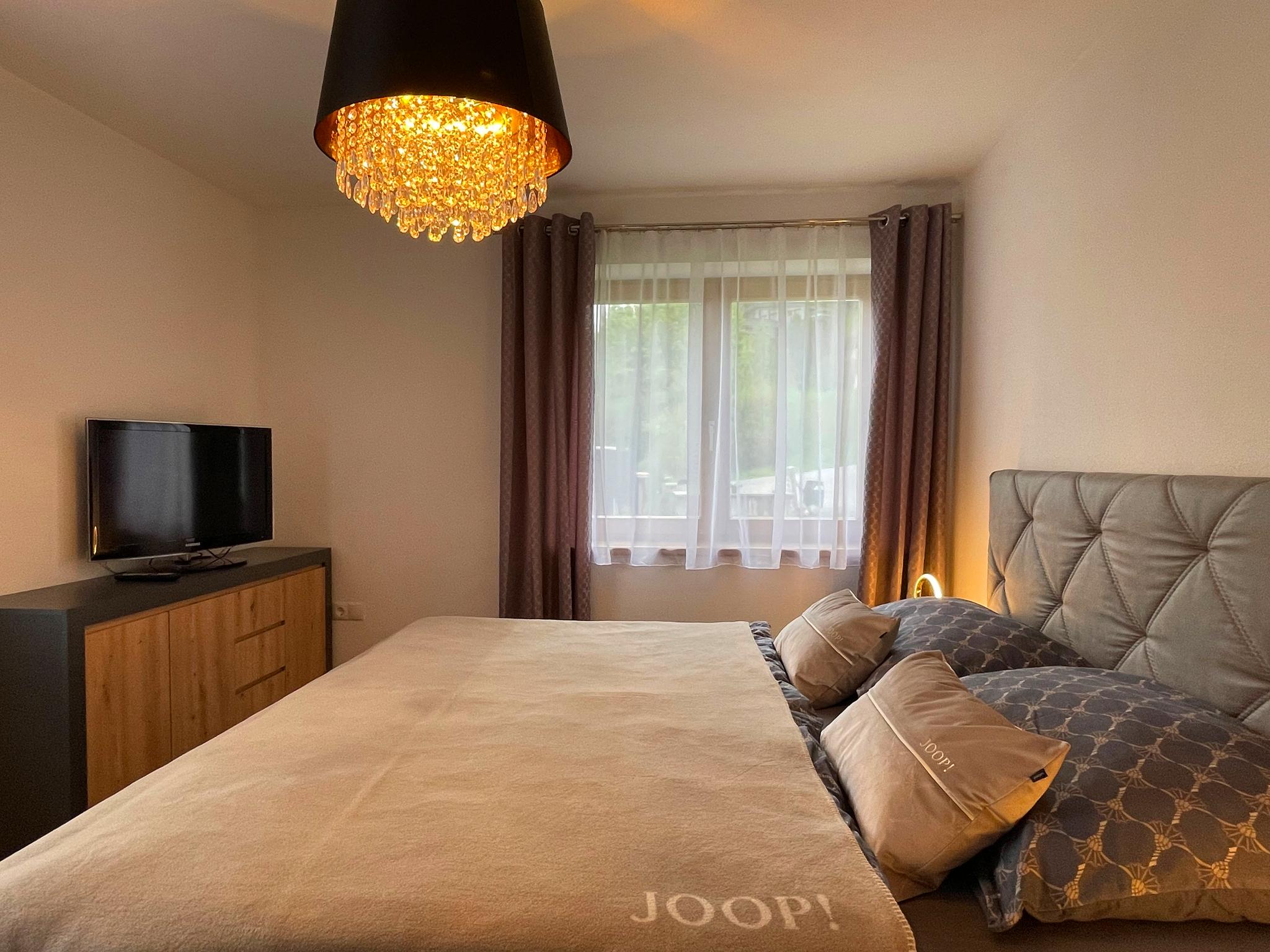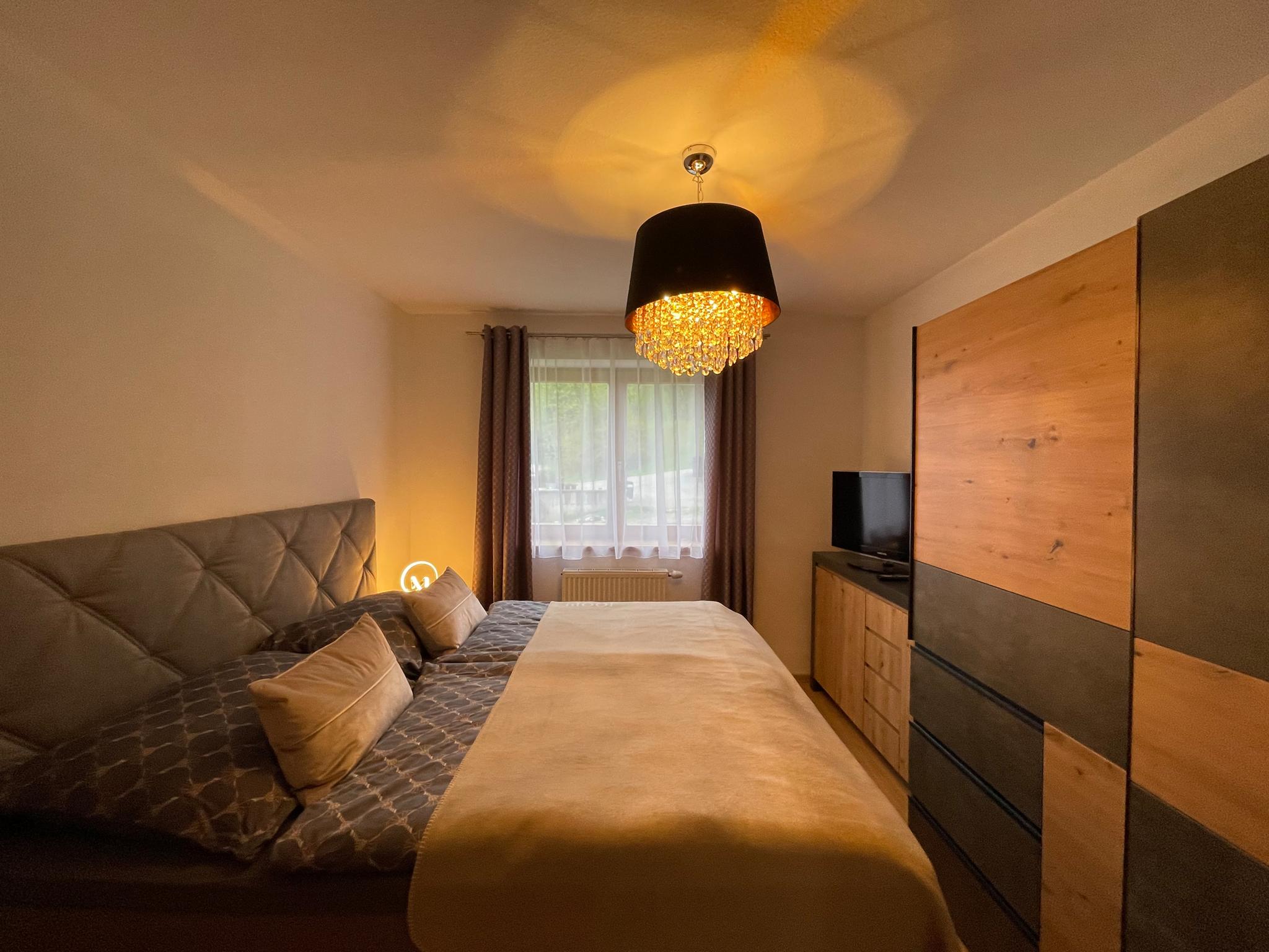 Das Apartment verfügt über 2 Schlafzimmer mit je einem großen Boxspringbett sowie Schwebetürenschränke, Boards und TV Geräten.