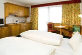 Neues, modern ausgestattetes Einraum-Appartement mit Balkon, gemütlicher Sitz- und Essecke, Dusche/WC und Kabel-TV.