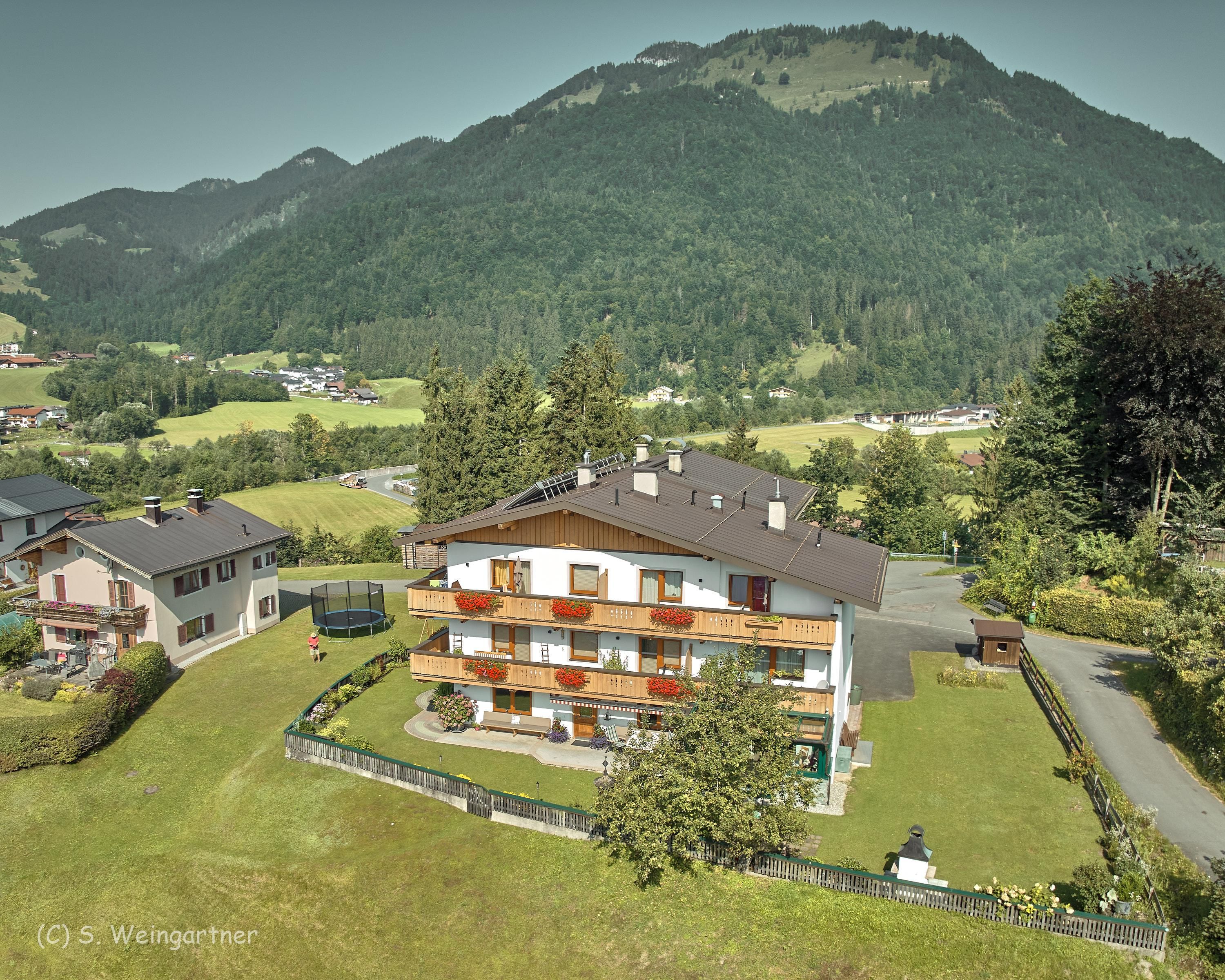 Unser Haus liegt im Zentrum, ruhig auf einer Anhöhe mit freiem Blick zum Unterberg und Kaisergebirge. Gemütlicher Frühstücks-bzw. Aufenthaltsraum (Nichtraucher) mit Kabel-TV. Gästekühlschrank. Weiters bieten wir Ihnen eine Liegewiese, Grillmöglichkeiten, Terrasse und Parkplatz. Das Erlebniswaldschwimmbad und die Loipen liegen in unmittelbarer Nähe. Geniessen Sie bei uns die gemütliche Atmosphäre und die familiäre Betreuung, wir heissen Sie herzlich willkommen!