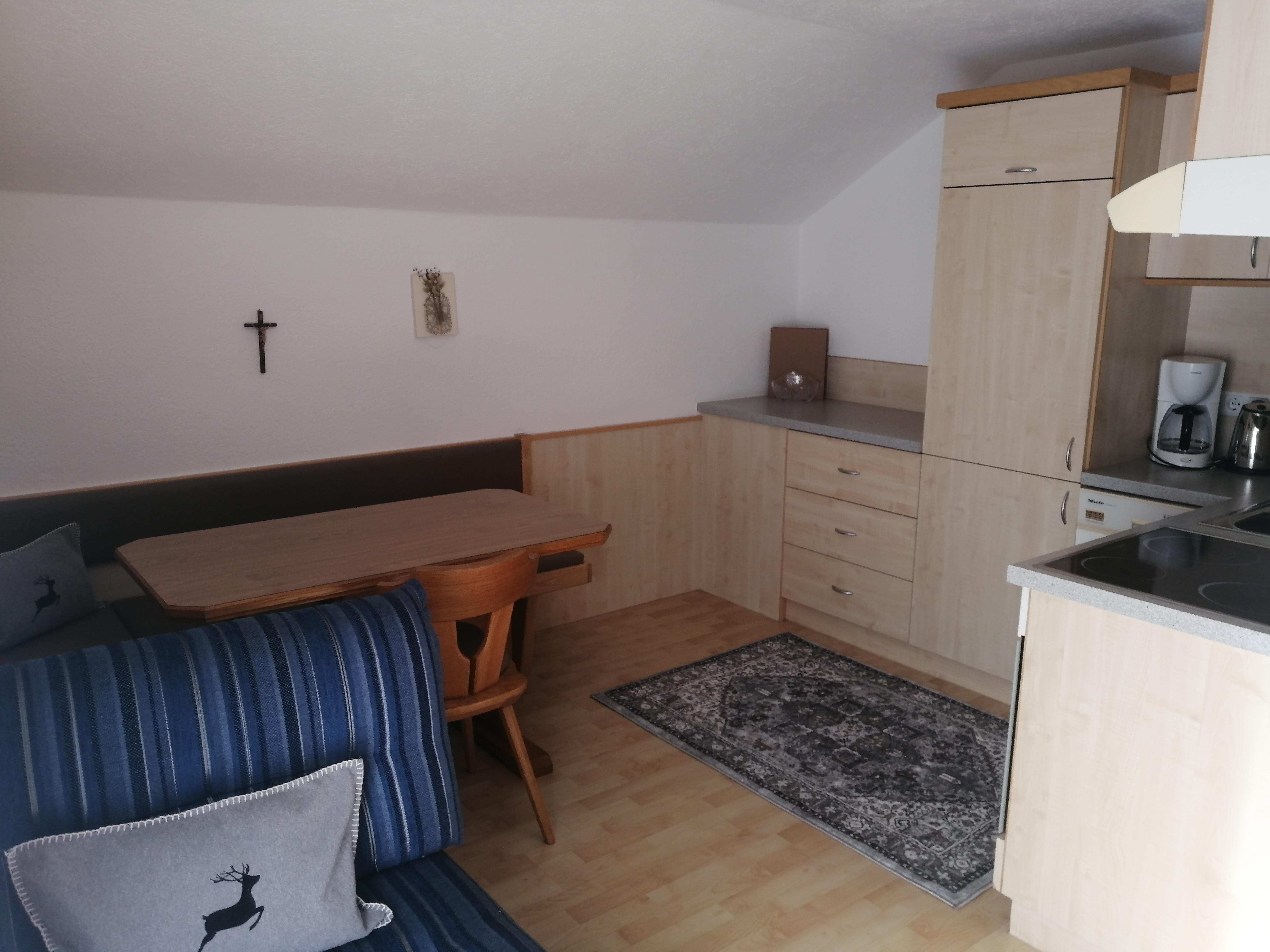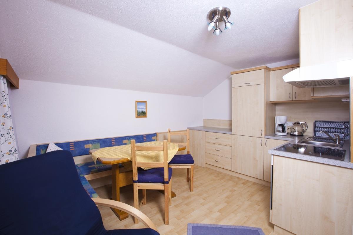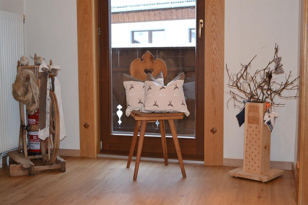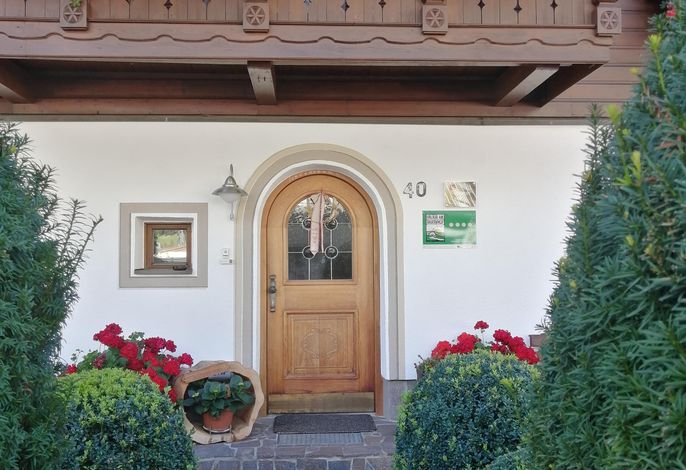Wohnung (ca. 45 m²) mit 1 Doppelzimmer, Dusche/WC, TV, Balkon mit herllicher Aussicht auf die umliegende Berglandschaft und großer, vollausgestatteten Wohnküche mit Esstisch, Elektroherd, Kühlschrank, Kaffeemaschine, Mikrowelle, Wasserkocher, TV uvm. Bei einer Buchung für 3 Personen befindet sich 1 Einzelzimmer mit Dusche/WC, TV-Sat direkt neben der Wohnung. Auf Anfrage mit zusätzlichen Zimmern erweiterbar.