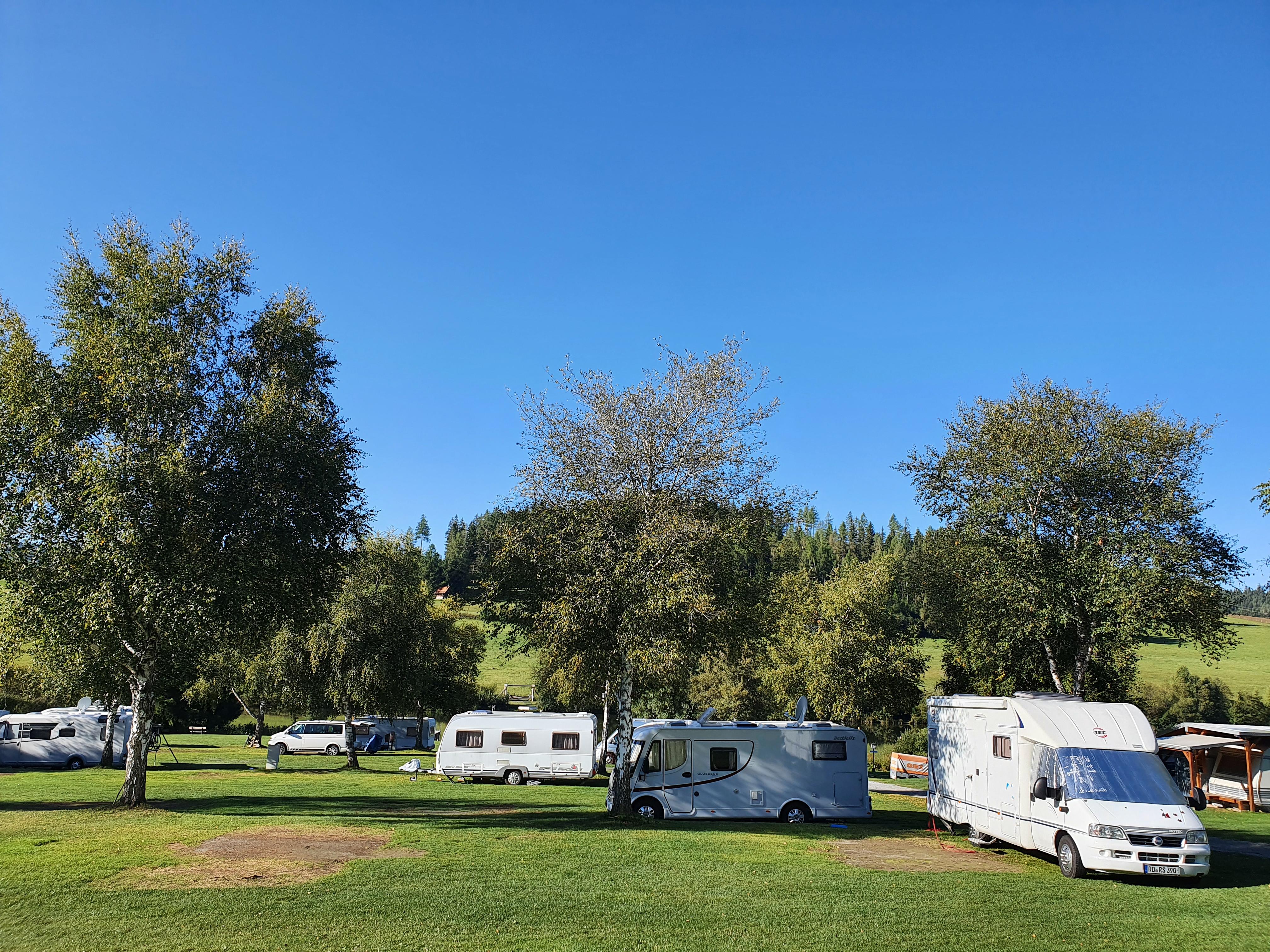 Die Stellplätze sind ca. 100m² groß, Strom ist vorhanden. Des Weiteren haben wir 2 Zeltwiesen am See.