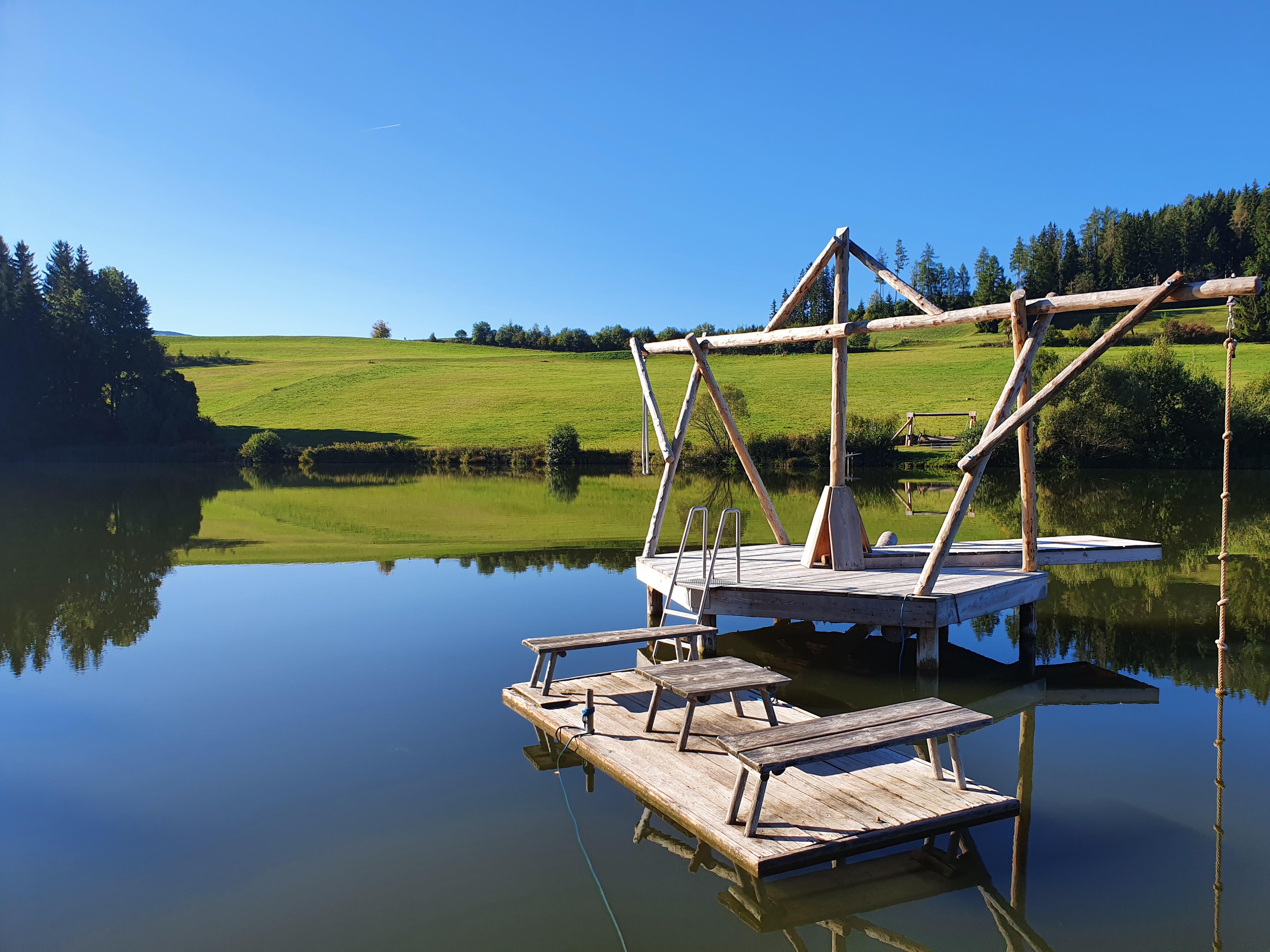 Herzlich Willkommen am 1. Naturcampingplatz direkt am See. Gelegen an der Sonnenseite der Seetaler Alpen bietet er für GROß und klein einen erholsamen und spannenden Urlaub. Um einen positiven Beitrag für Mutter Erde zu leisten, führen wir unseren Campingplatz mit dem österreichischen Umweltgütesiegel und Ecolabel. Der kleine Campingplatz für den großen Urlaub! Am Fuße des Zirbitzkogels (2.396m) in der Obersteiermark lässt sich´s am bis zu 26 Grad warmen Badesee Mühlen idyllisch campen. Lassen Sie sich vom Vogelgezwitscher aus den Birkenbäumen wecken! Machen Sie einen Morgenspaziergang rund um den Mühlner See oder fischen Sie mit den anderen Petrijüngern den Karpfen fürs Mittagessen. Der Campingplatz ist großzügig angelegt, verfügt über TOP-Sanitäranlagen und ein kleines Gasthaus mit Sonnenterrasse. Für die feine Campingküche stehen frische Kräuter zur Verfügung. Frisches Frühstücksgebäck am Morgen sowie gemütliche Kesselgulasch- und Grillabende werden von den Gästen genossen. Optimaler Ausgangspunkt für Wanderungen, Nordic Walking und Mountainbiken. Schwimmen, Fischen, Volleyball, Tischtennis, Kinderanimation, Streicheltiere, Reiten im Dorf. Haustiere sind willkommen. Angebote für Fischer, Wanderer, Familien & Naturgenießer. Schmökern Sie rein in die Ferien- und Wanderbibliothek. 1 Ferienhaus für 7 Personen. Das Ferienhaus kann ganzjährig für Ihren Urlaub gemietet werden.