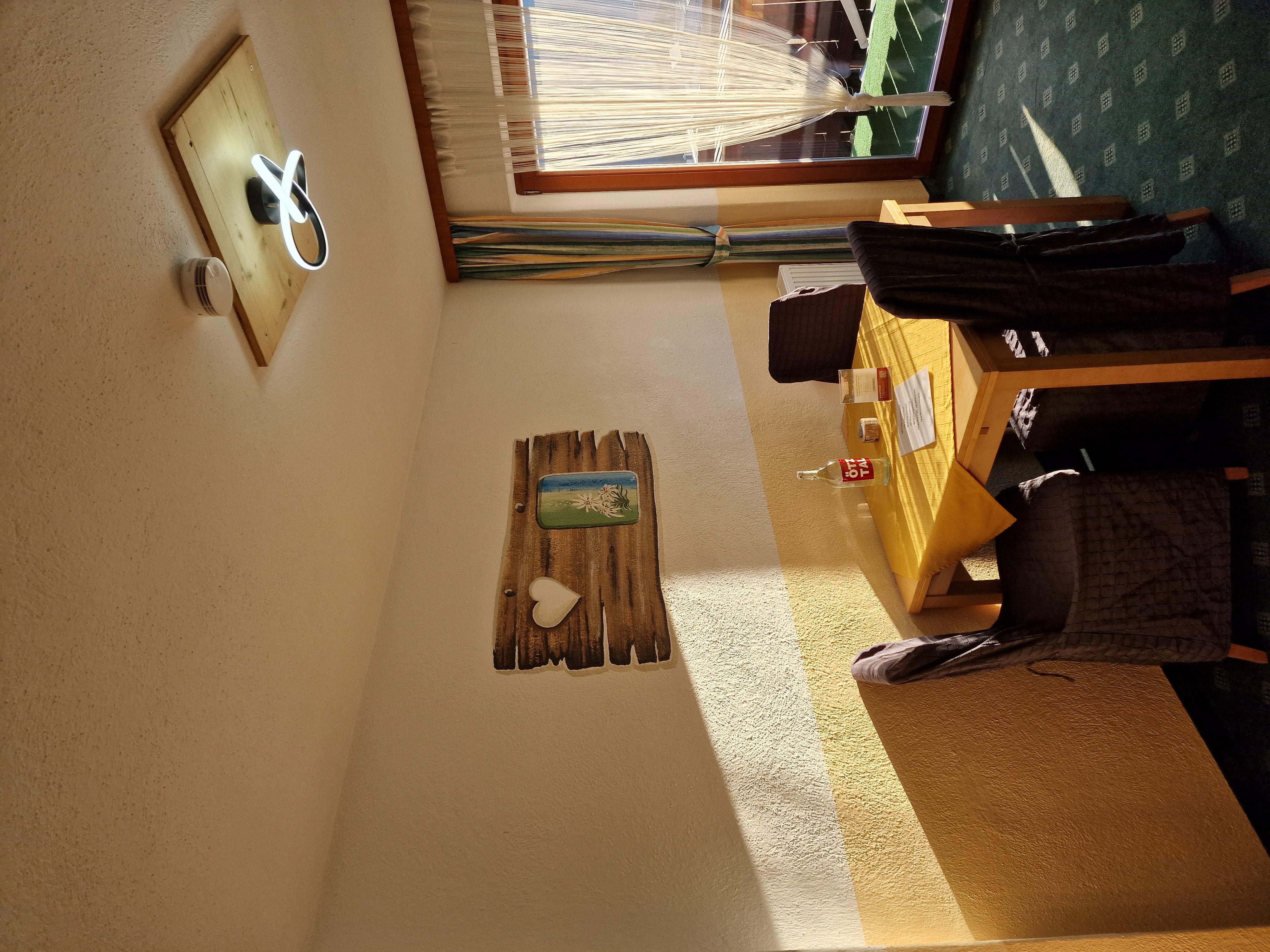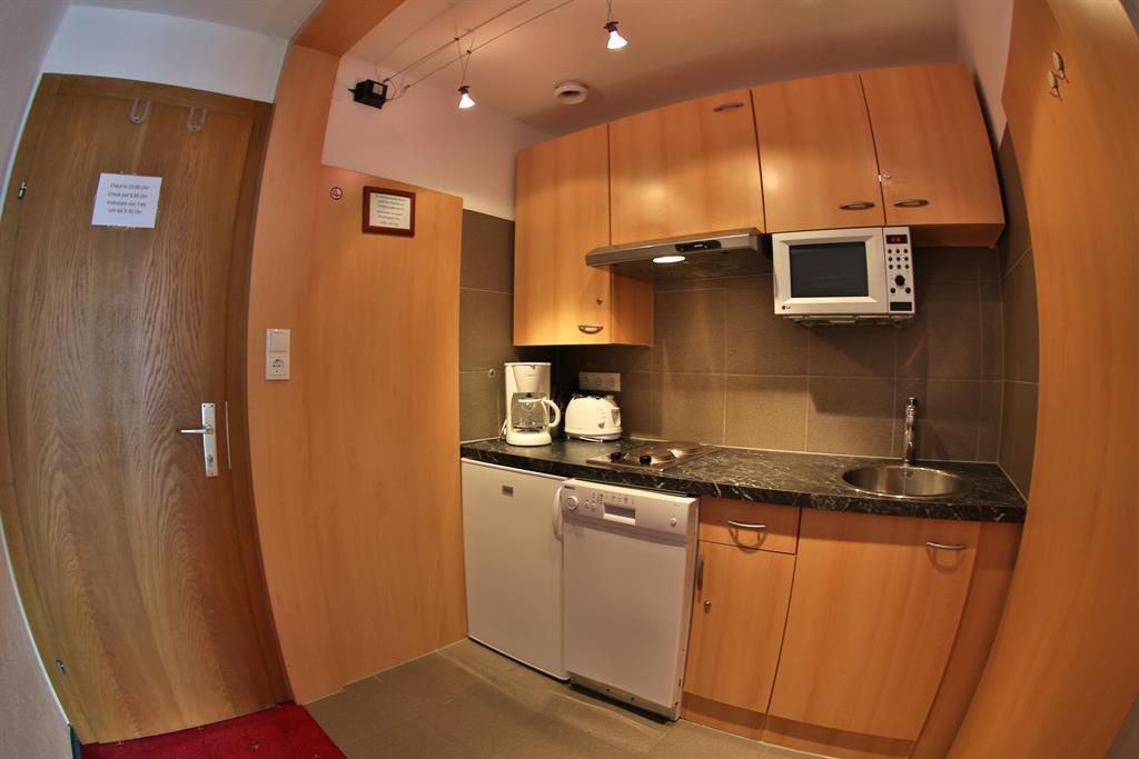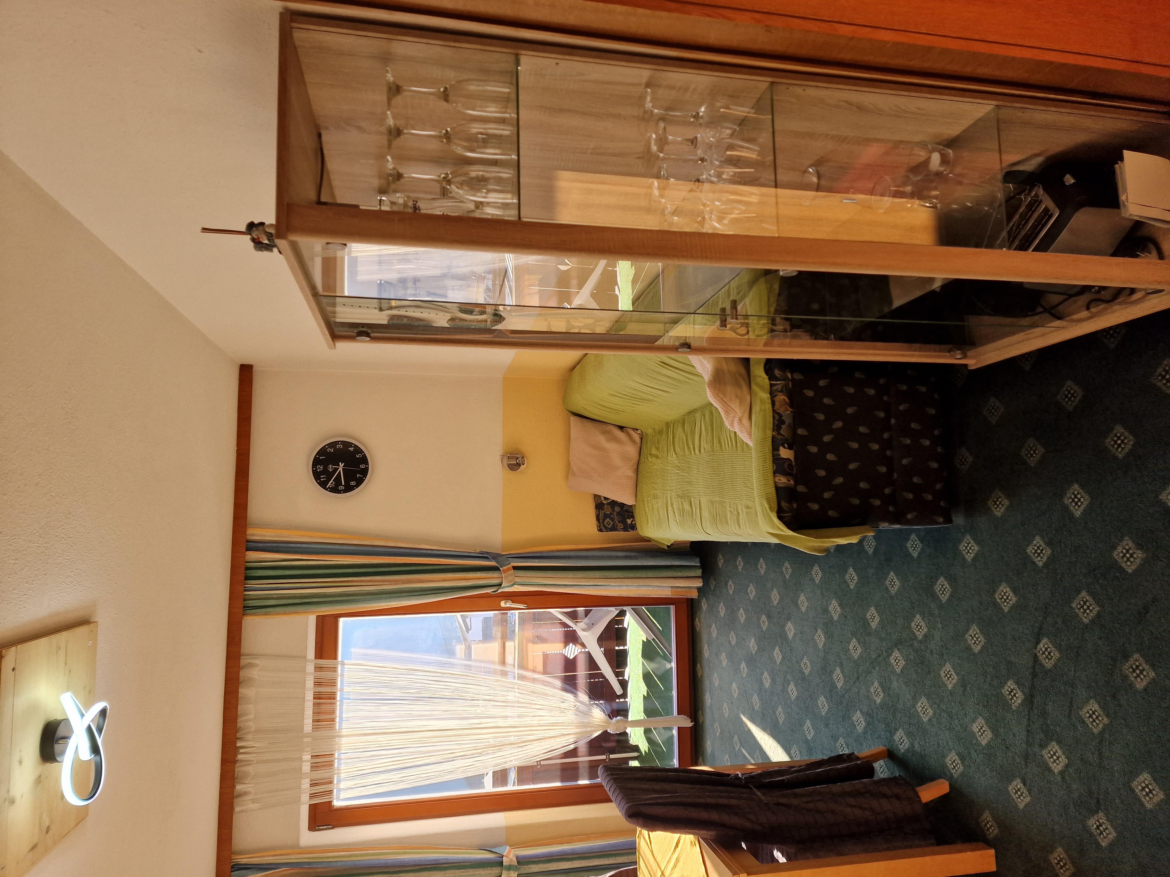 Appartement (ca. 35 m²): 1 Doppelbettzimmer mit Dusche/WC, Föhn, 2 x Sat-TV, zwei Balkone mit Panoramablick, komplett ausgestattete Wohnküche mit Essecke, Sofa, 2-Plattenherd, Spülmaschine, Kühlschrank inkl. Gefrierfach, Kaffeemaschine, Microwelle, Wasserkocher, Toaster, diverses Geschirr, Bettwäsche, Geschirrtücher, Hand/Badetuch (pro Person je 1 Stück, kein Wechsel).