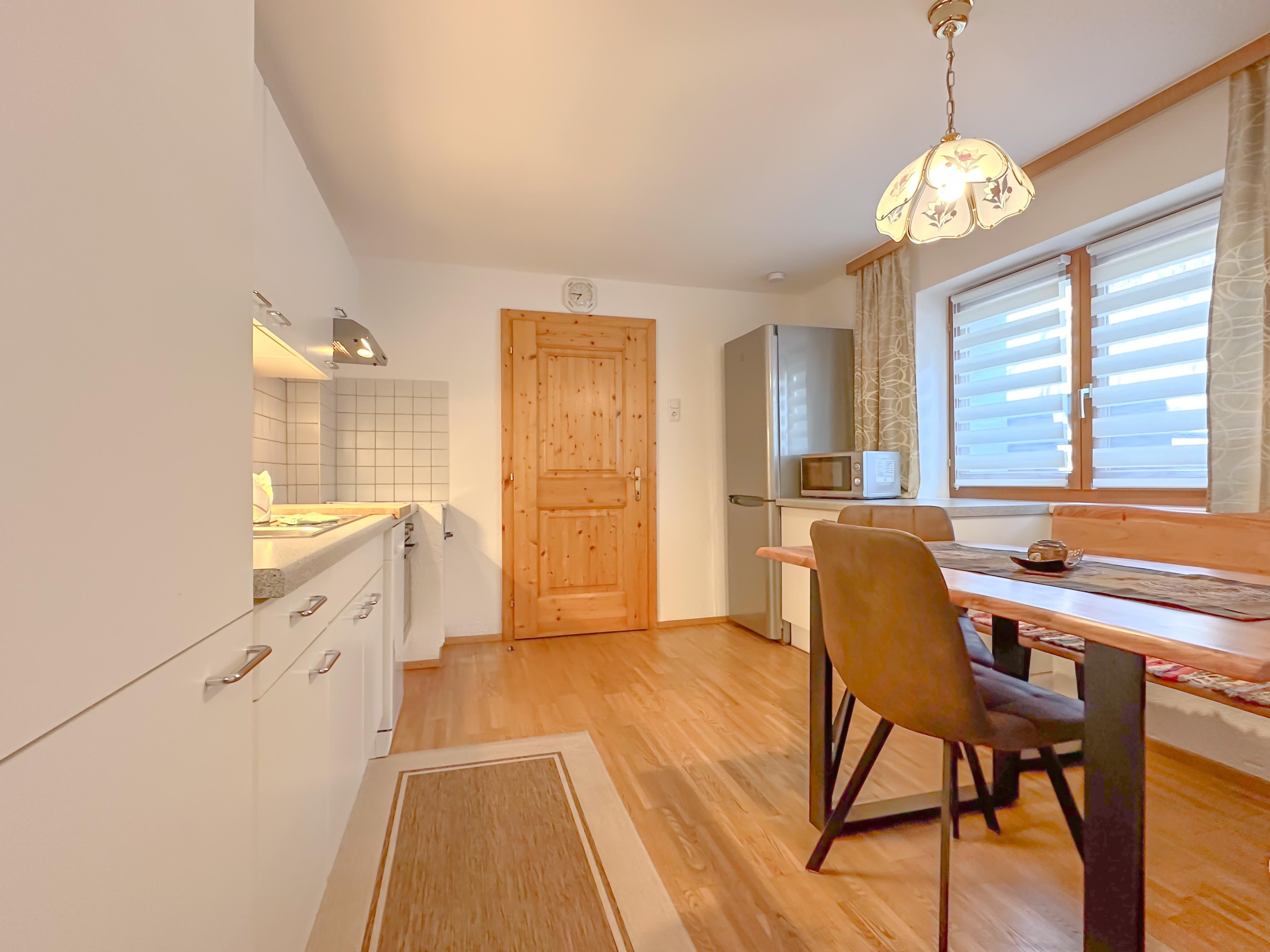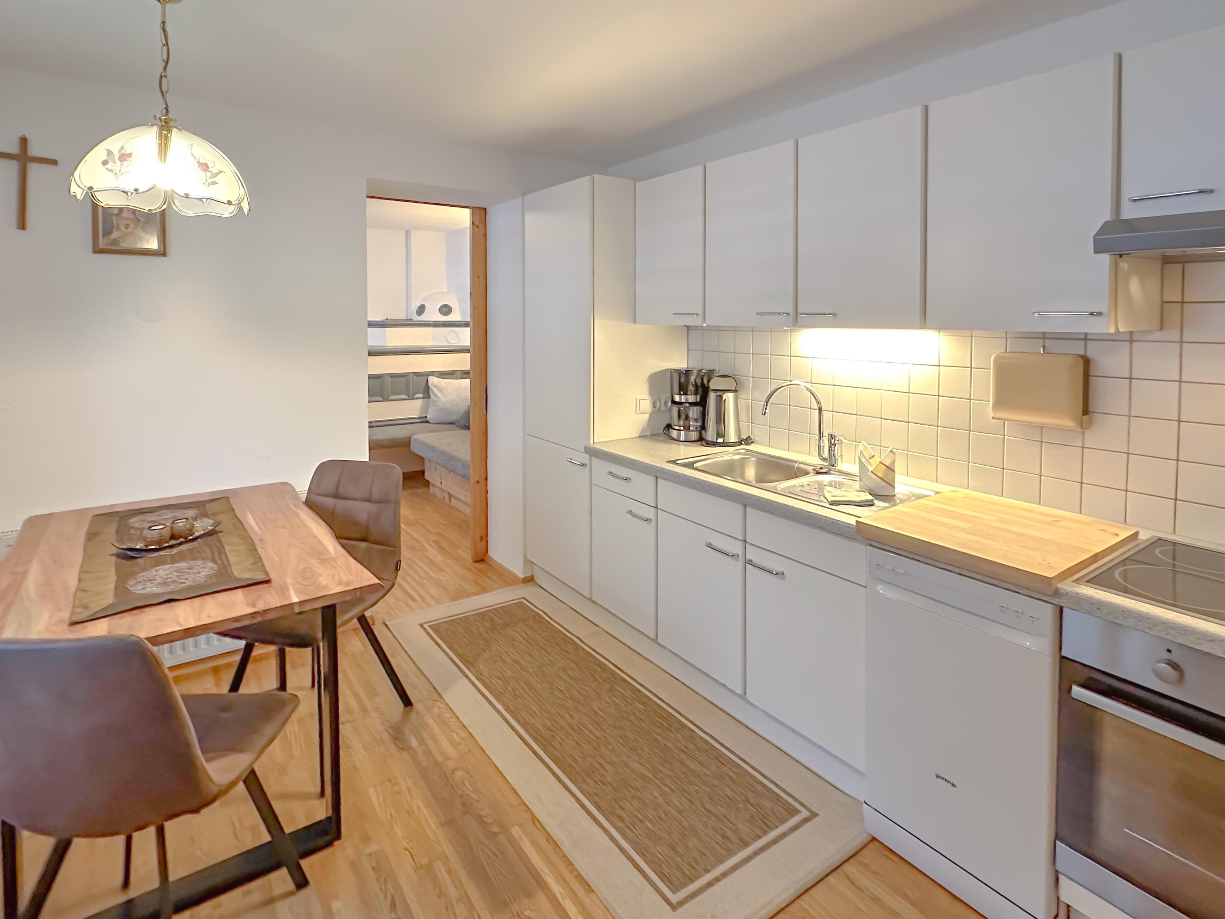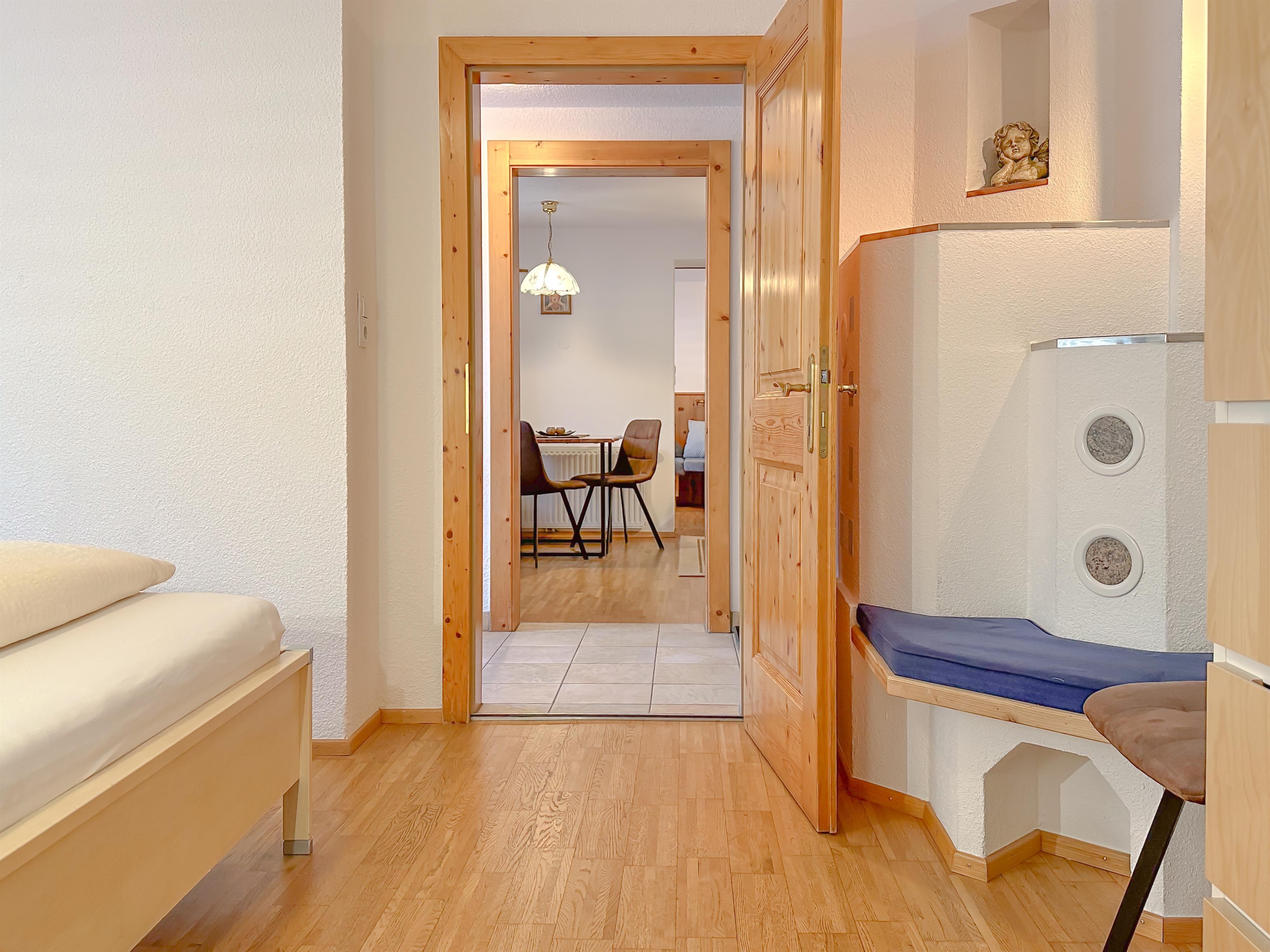 Unser 60m² großes, komfortables Appartement im Erdgeschoss mit eigenem Eingang besteht aus: 1 Doppelzimmer, 1 Badezimmer mit Dusche und WC, 1 Wohnzimmer mit Kachelofen und gemütlicher Ofenbank, SAT-TV und Schlafgelegenheit für 3.+4. Person. Die 3.+4. Person muss durch das Schlafzimmer gehen um in das Badezimmer zu gelangen. Eine separate, vollausgestattete Küche (Kühlschrank/Gefrierfach, Mikrowelle, Geschirrspüler, Backrohr, Kaffeemaschine, Wasserkocher uvm.) rundet das Angebot ab. Auf Anfrage bieten wir eine flexible Lösung an, um einen stufenlosen Zugang zu unserem barrierefreien Appartement zu gewährleisten.