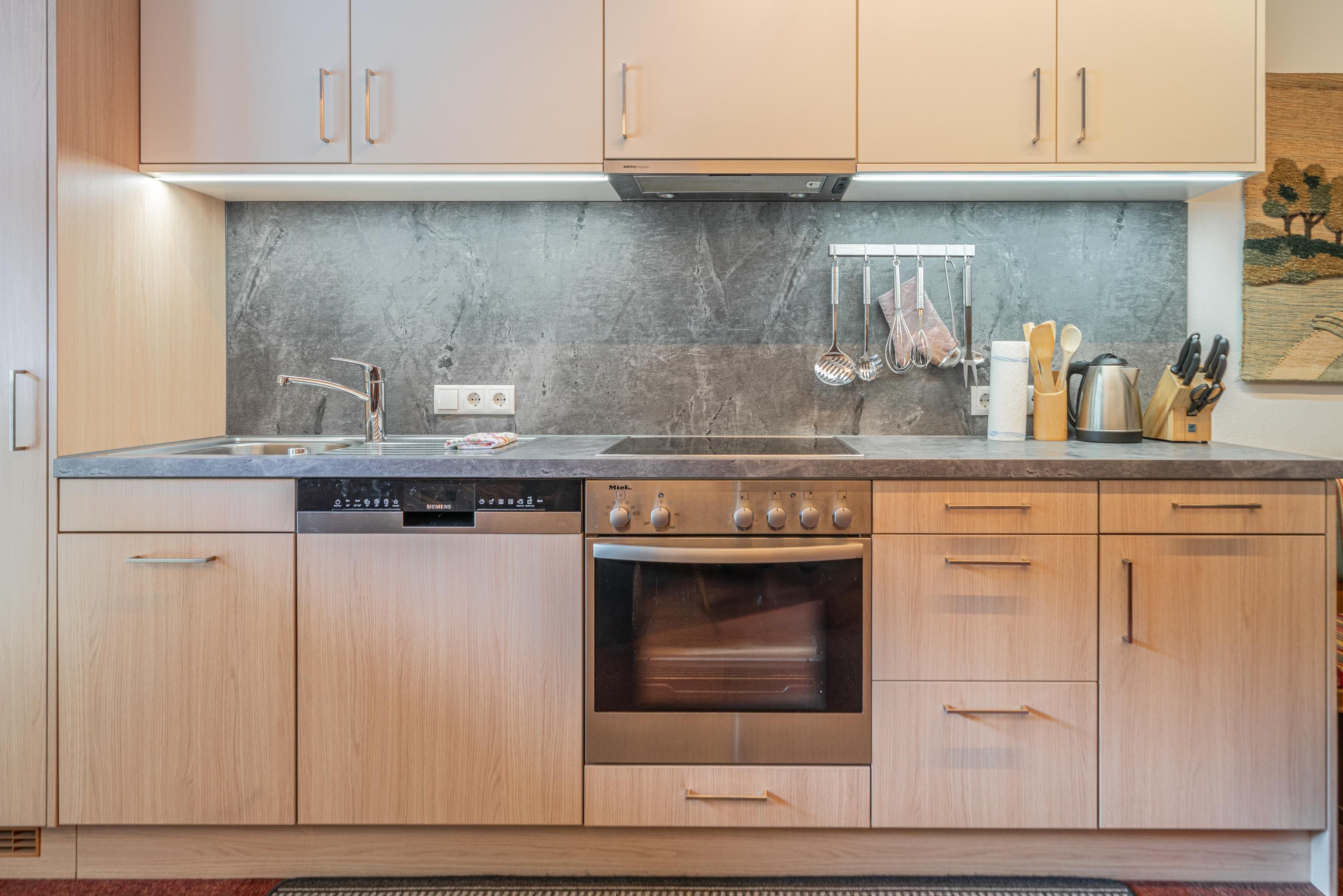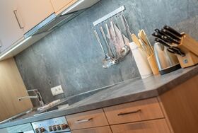 Appartement Berge mit separatem Eingang und Balkon: 1 große, gemütliche, vollausgestattete Wohnküche mit Kochzeile (Geschirrspüler, Kühlschrank, Kaffeemaschine, Mikrowelle, Backrohr, 4 Platten-E-Herd, Wasserkocher, Geschirr, uvm.), Kabel-TV, 3 Doppelzimmer, 2 Doppelzimmer mit bequemer Schlafcouch für eine 3. Person, 5 Badezimmern mit Dusche/WC, zusätzlich 1x separates WC, Stauraum. Größe ca. 160 m².