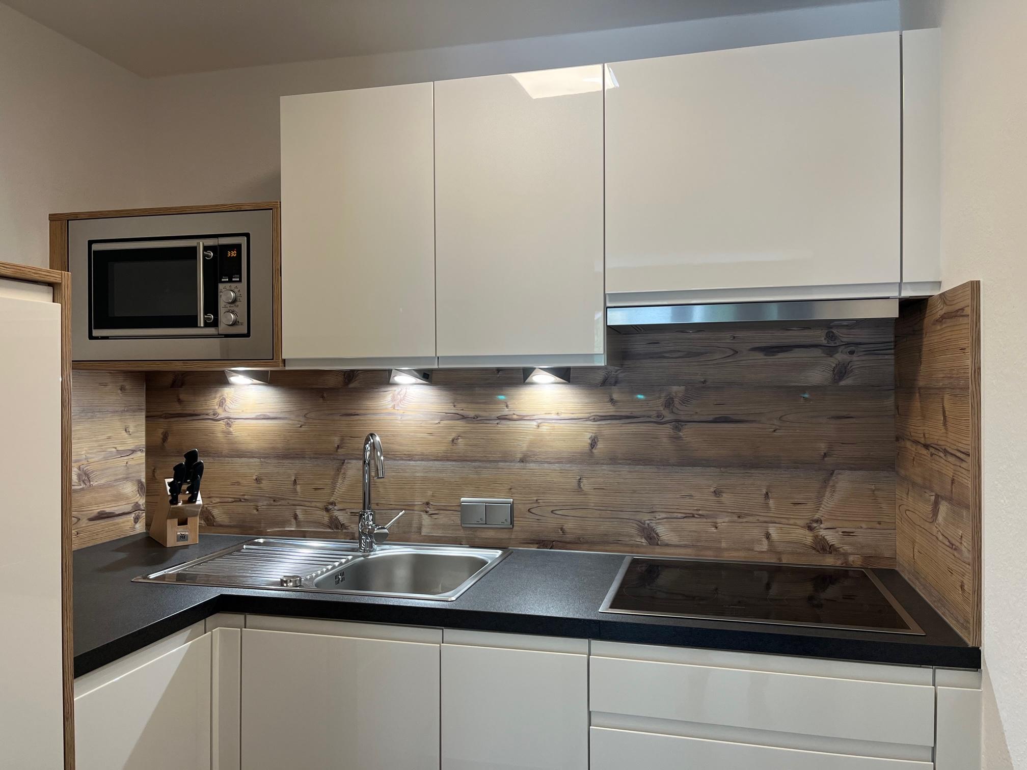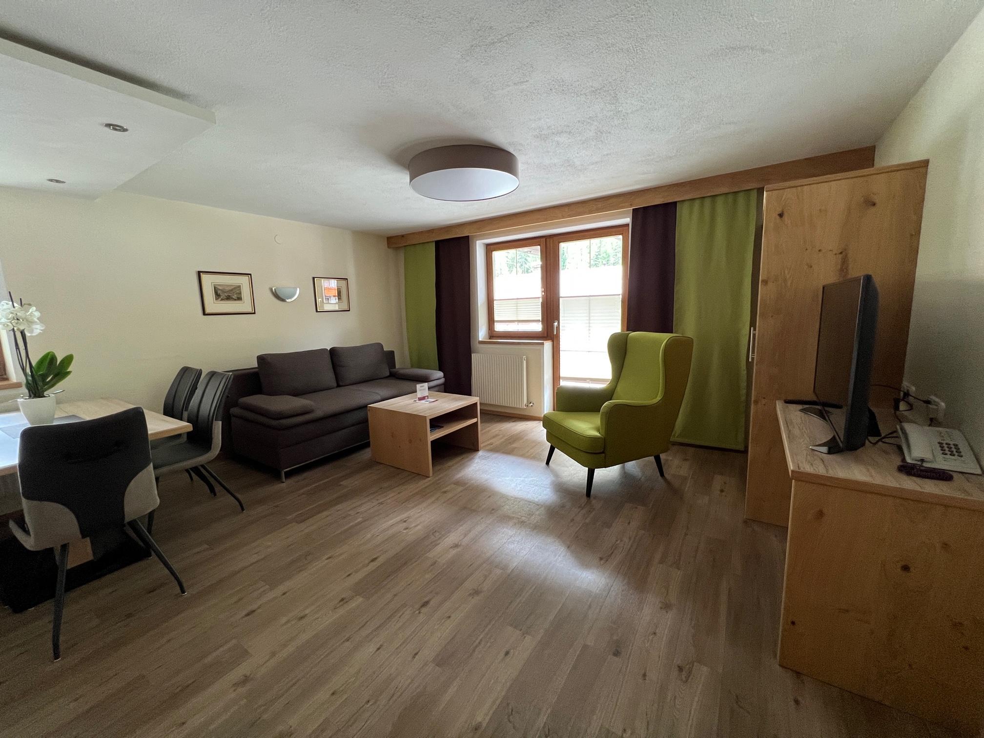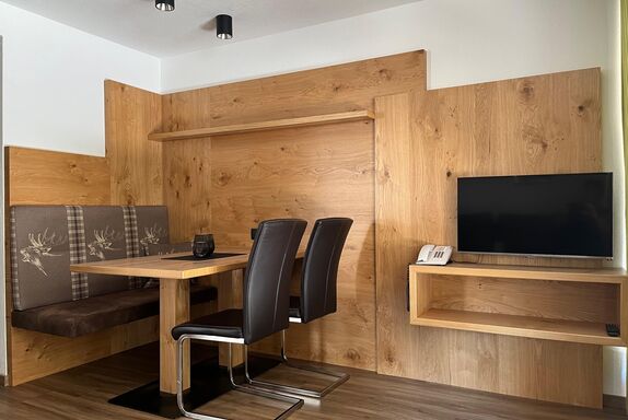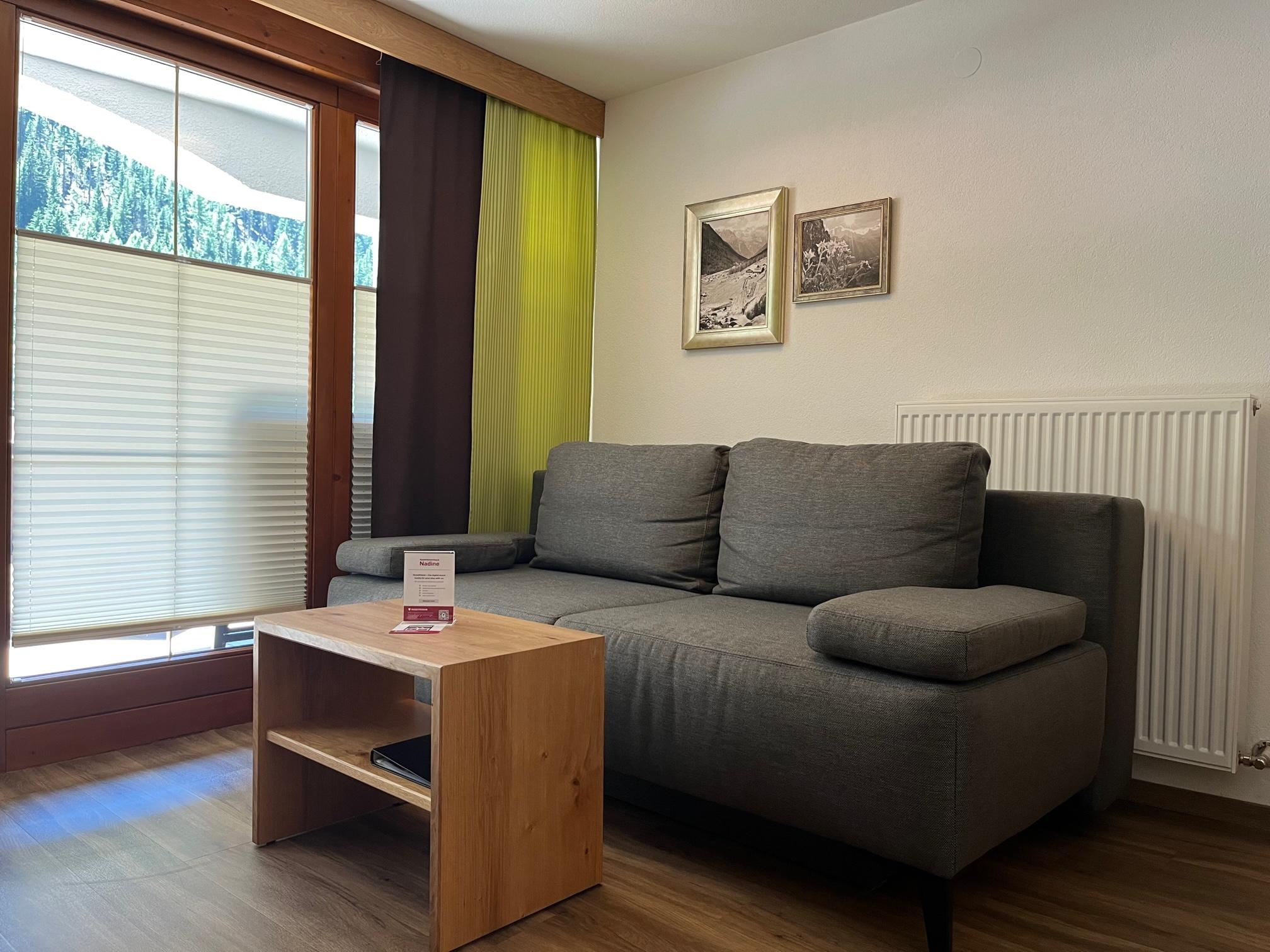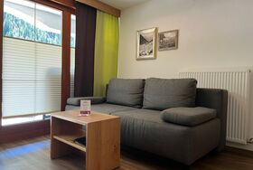 Gemütlich eingerichtetes Appartement (ca. 41 m²) mit Vorraum, Wohnküche mit Kochnische (Cerankochfeld, Kühlschrank/Gefrierfach, Kaffeemaschine, Geschirrspüler, Mikrowelle uvm.), Ess- und Wohnbereich mit Couch (Schlafgelegenheit für 2 Persoen), Doppelzimmer mit Zustellbett, Badezimmer mit Dusche/WC, Durchwahl-Telefon, Internetanschluss, Safe und möblierter Balkon.