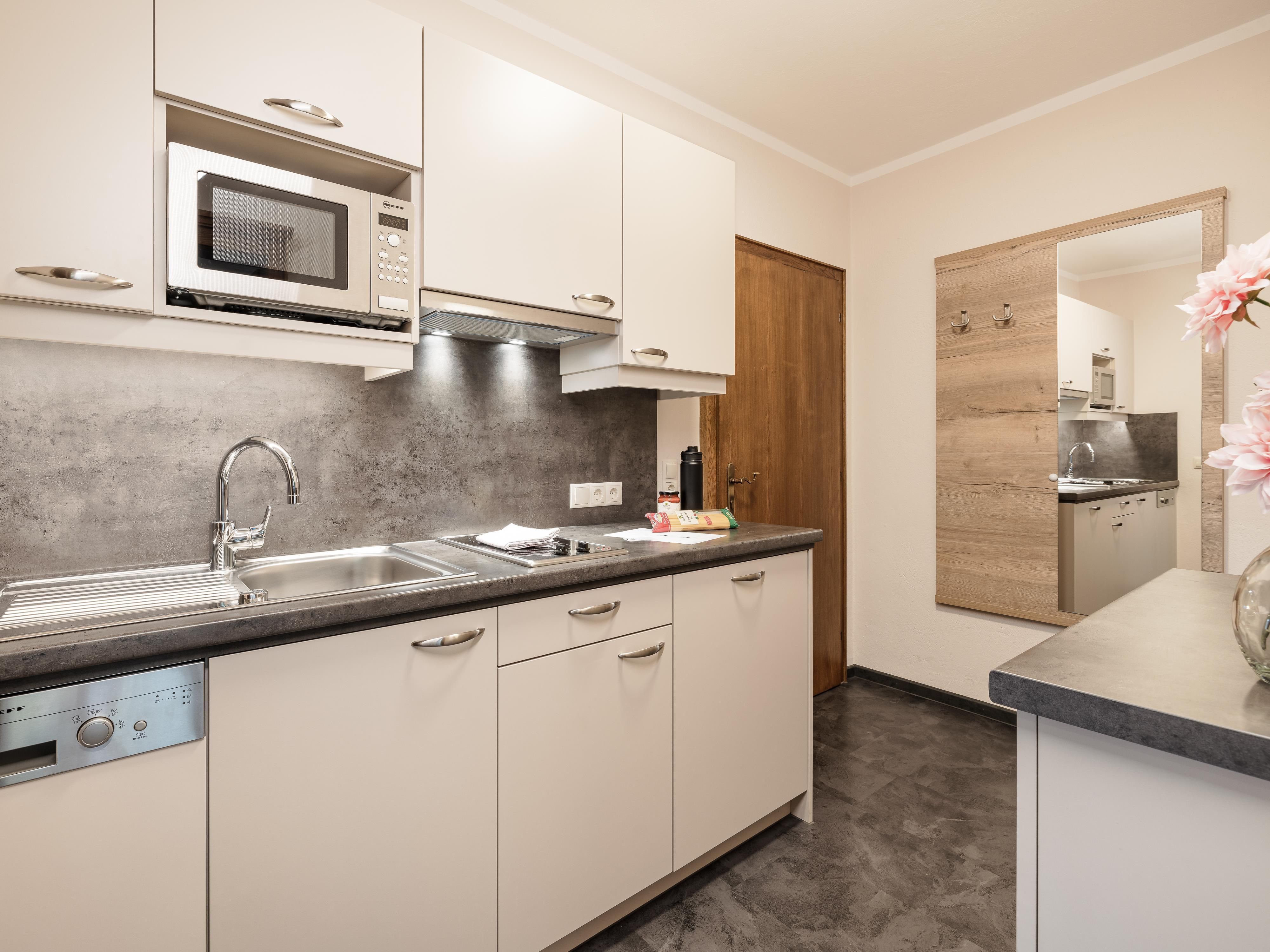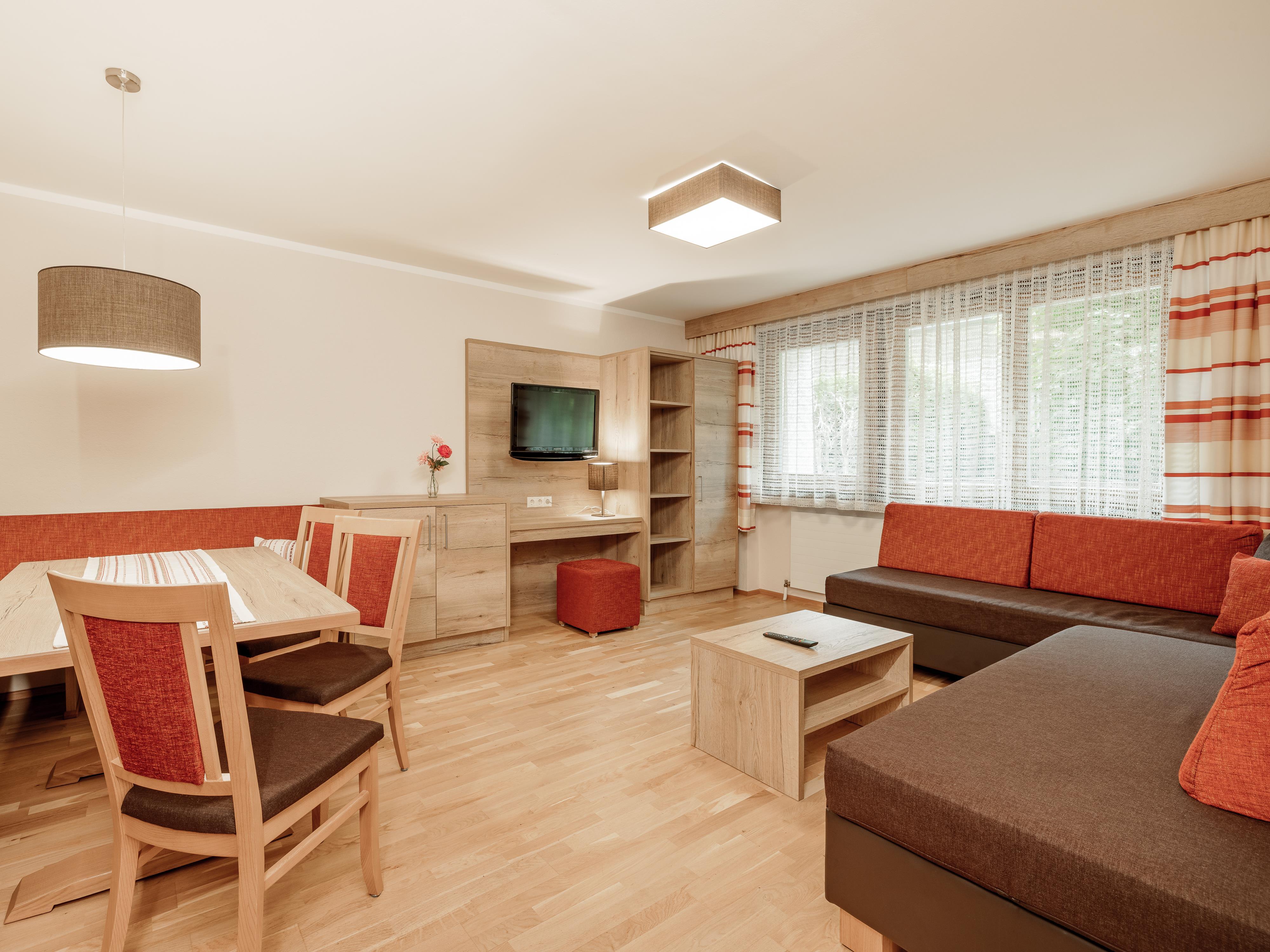 Unser Appartement 1 mit ca. 55 m² befindet sich im Parterre und besteht aus: 1 Wohnschlafzimmer mit großer Sitzecke und Sofa mit Schlafmöglichkeit für 2 Personen; 1 Doppelzimmer; 1 Schlafzimmer mit Einzelbett; 1 vollausgestatteten Küche mit Backofen, Geschirrspülmaschine uvm.; 1 Badezimmer mit Dusche/WC; Westbalkon