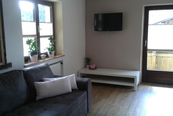 Die neu umgebaute Appartements am 1. und 2. Stock haben ca. 58 m² (Waldhyazinthe & Heidekraut) besteht aus einem Doppelzimmer und einem Dreibettzimmer mit je einem Badezimmer mit Dusche/WC, einem Wohnzimmer mit Küche sowie einem Eßzimmer und verfügt über Balkon