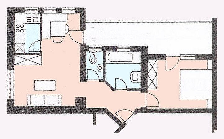 Appartement mit ca. 46 m² bestehend aus: 1 Doppelzimmer mit Flat-TV , Wohn-Schlaf-Raum mit ausziehbarer Doppelcouch und Essecke, 1 Badezimmer mit Badewanne, 1 separates WC, vollausgestattete Küche mit Cerankochfeld, Mikrowelle, Spülmaschine uvm. Flat-TV, W-Lan, Telefon und Balkon.