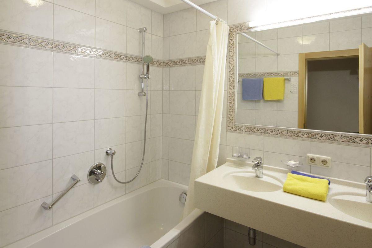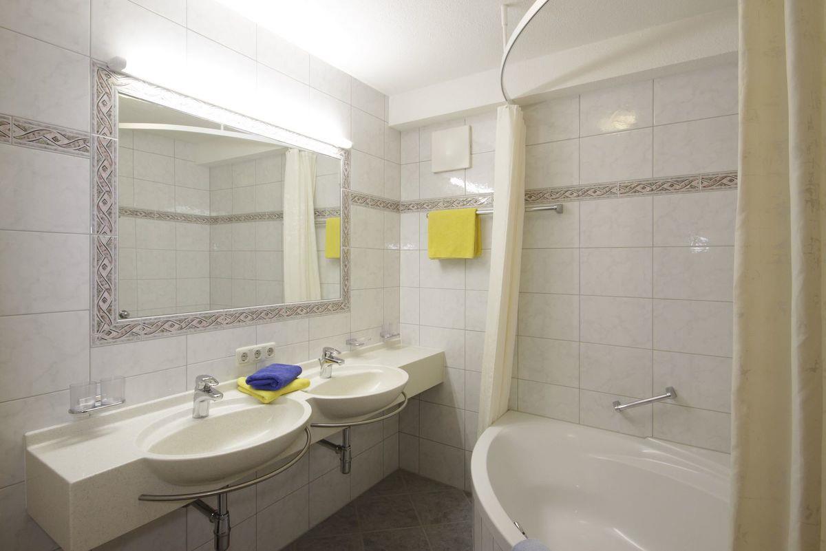 Appartement mit ca. 95 m² bestehend aus: 1 Doppelzimmer mit Flat-TV und Badezimmer mit Dusche und separatem WC, 1 weiteres Doppelzimmer mit Flat-TV , 1 Badezimmer mit Badewanne, 1 zusätzliches separate WC; 1 Wohn-Schlaf-Raum mit ausziehbarer Doppel-Couch für 2 Personen und Essecke, vollausgestattete Küche mit Cerankochfeld, Mikrowelle, Spülmaschine uvm. Flat- TV, Telefon, W-Lan, Balkon, Terrasse.