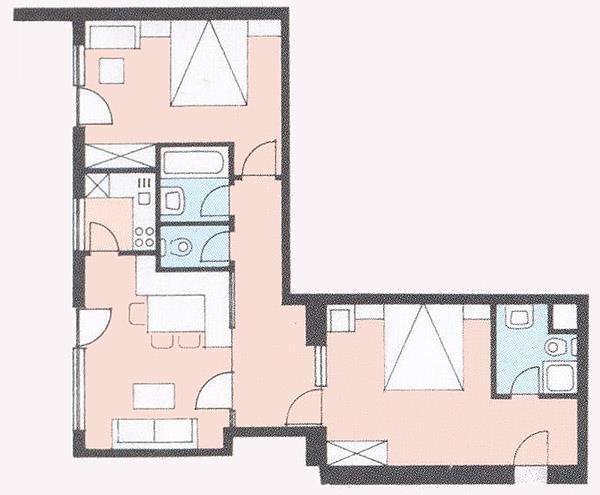 Appartement mit ca. 75 m² bestehend aus: 1 Doppelzimmer mit Flat-TV und Badezimmer mit Dusche/WC, 1 Doppelzimmer mit Flat-TV, 1 weiteres Badezimmer mit Badewanne, 1 zusätzliches separates WC, Wohn-Schlafzimmer mit ausziehbarer Doppelcouch und Essecke, voll ausgestattete Küche mit Cerankochfeld, Mikrowelle, Spülmaschine uvm. Flat-TV, W-Lan, Telefon und Balkon.