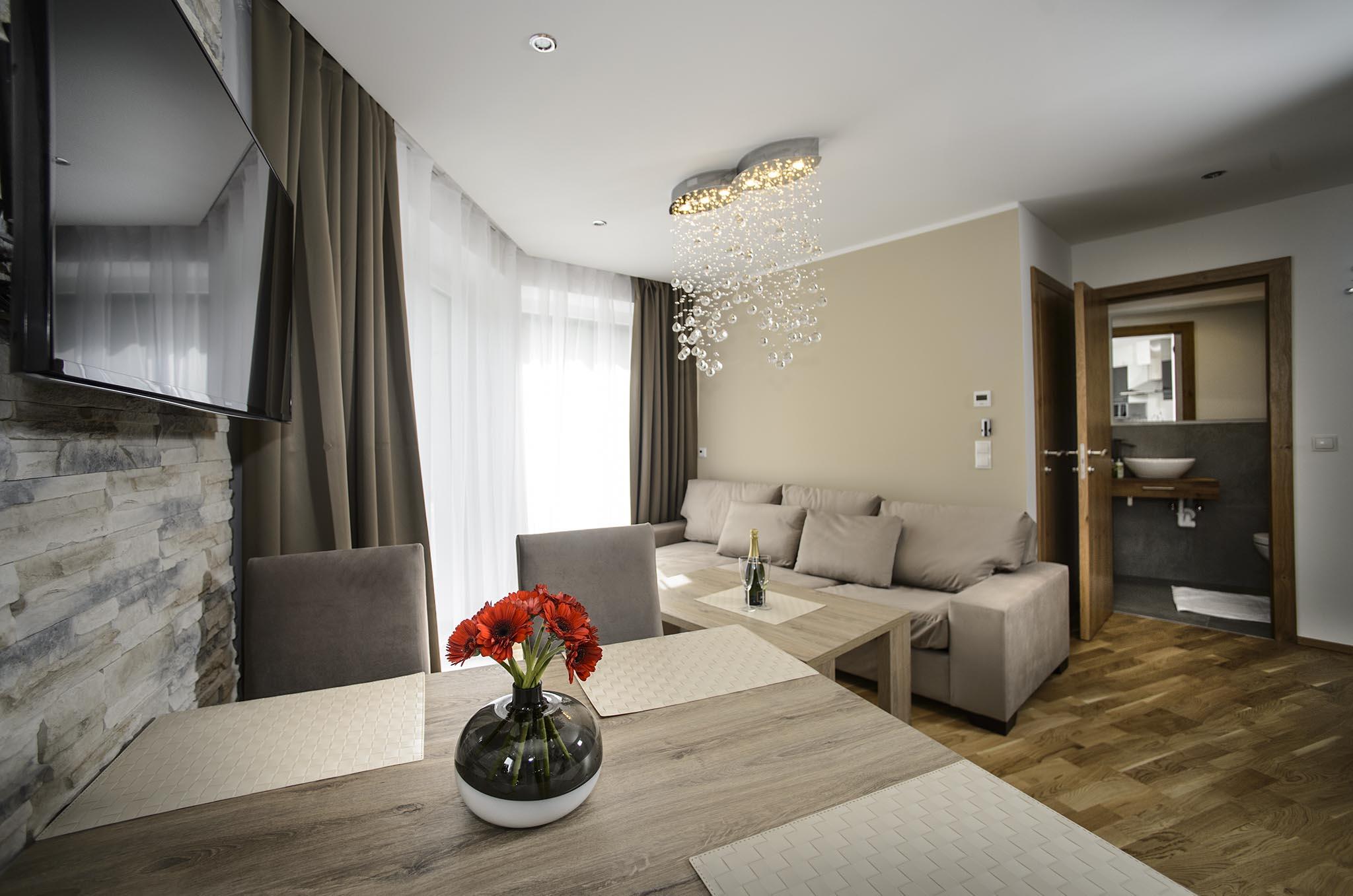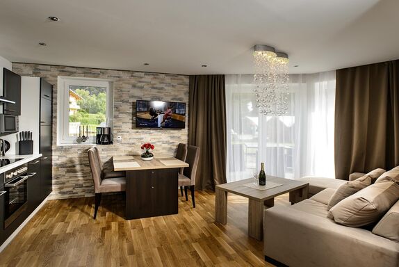 Ihr Luxusappartement wurde mit viel Liebe zum Detail eingerichtet und besteht aus 2 Schlafzimmern, 1 Wohnzimmer mit vollausgestatter Küche(Mikrowelle, Cerankochfeld, Backrohr, Kühlschrank, Gefrierfach, Toaster, Wasserkocher, Kaffeemaschine) und gemütlichem Essbereich, 1 Badezimmer und seperatem WC. Im gemütlichen Garten mit Terrasse und Sitzmöbel finden Sie Ruhe und Erholung.
