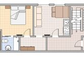 Modernes, helles Appartement für 2-4 Personen (ca. 35 m²) im Obergeschoss. Dreibettzimmer mit Dusche/WC, Haarföhn und Flat-TV; Vorraum, Wohnraum mit ausziehbarem Schlafsofa für die 4. Person und vollausgestatteter Küche (4-Platten Herd, Backofen, Kühlschrank, Spülmaschine, Kaffeemaschine und Mikrowelle...) und kleinem Wintergarten. Zusätzliches, seperates WC am Hausflur.